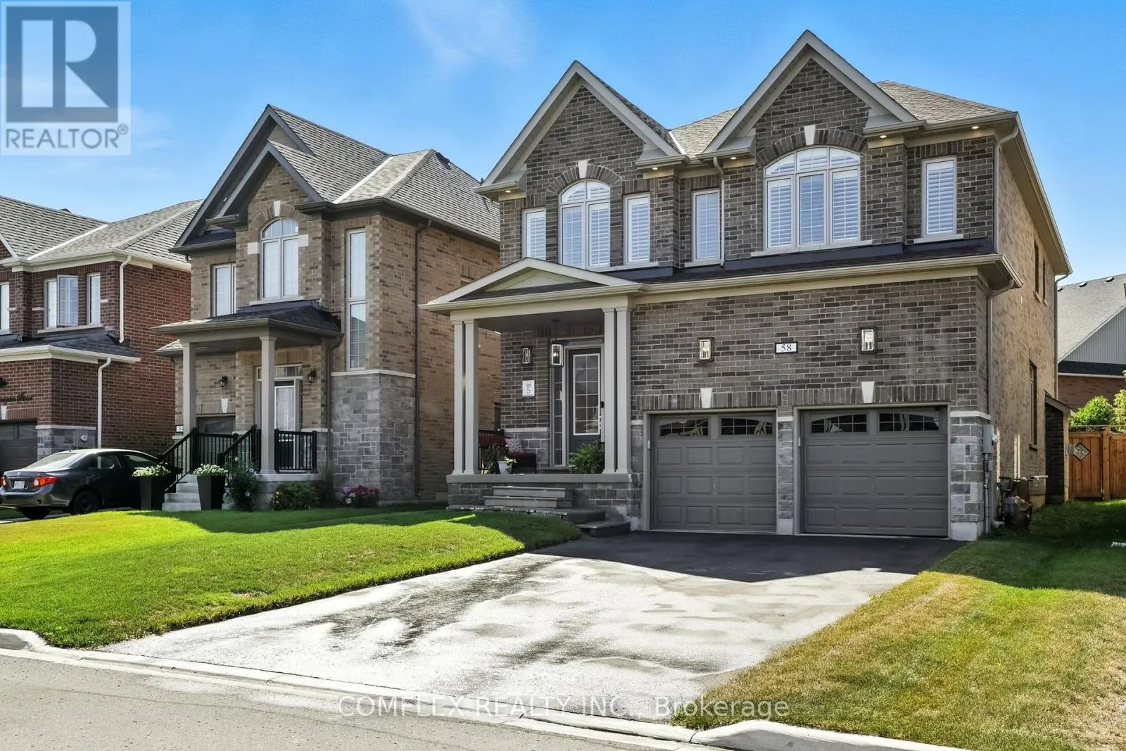 Cross Streets: Southampton St and Old Simcoe Rd. ** Directions: Reach St to Old Simcoe Rd to Southampton St. Welcome to 58 Southampton Street - a stylish 2,564 sq. ft. fully upgraded home in one of Port Perry's most sought-after neighbourhoods! Situated on a premium pool size lot, this all-brick and stone 4-bedroom residence showcases over $115,000 in builder upgrades and delivers the perfect balance of elegance, comfort, and function. Enjoy parking for four vehicles with no sidewalk in front, adding both convenience and curb appeal. Inside, the main floor impresses with 10-ft ceilings, pot lighting, rich hardwood flooring, and California shutters. The gourmet kitchen features quartz countertops, stainless steel appliances, and overlooks a spacious living area with a cozy gas fireplace - perfect for family gatherings and entertaining. Upstairs, the oak staircase leads to a luxurious primary suite complete with a coffered ceiling, walk-in closet, and a spa-inspired ensuite boasting a glass shower and free-standing soaker tub. Outside, exterior soffit lighting highlights the home's timeless design and curb appeal year-round. Located just minutes from schools, parks, downtown shops, and scenic Lake Scugog, this is the home you've been waiting for. Book your private showing today. (id:27476)