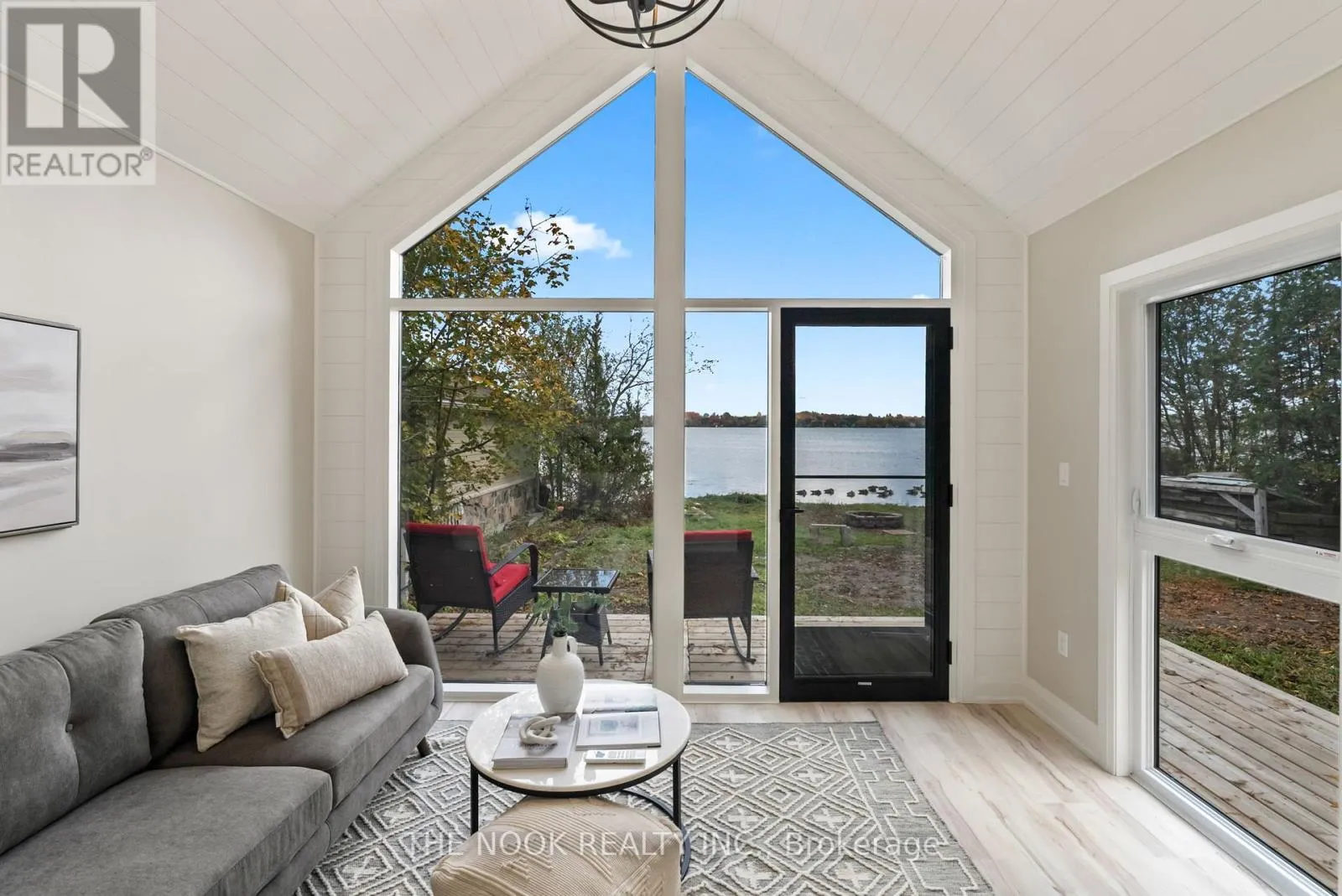 Whitfield & Simcoe Lakefront Luxury on Lake Scugog. Welcome to your dream lakeside retreat! This fully renovated 3-bedroom, 2-bath waterfront home on the shores of Lake Scugog blends modern sophistication with relaxed, resort-style living. From the moment you walk in, you'll be drawn to the soaring ceilings, open-concept layout, and expansive windows that capture stunning water views and fill the home with natural light. Eastern exposure makes every sunrise unforgettable as it sparkles across the lake. Step outside to a spacious lakeside deck complete with sleek glass railings that provide uninterrupted views - perfect for morning coffee, evening gatherings, or simply soaking in the peaceful surroundings. A charming lakeside bunkie adds even more versatility with its vaulted windows, cozy bedroom, and inviting living area - ideal for guests, extended family, or a private escape by the water. Everything has been updated from top to bottom, including all appliances, mechanical systems, and interior/exterior finishes. Stylish modern fixtures and thoughtful design choices ensure the home is as efficient as it is beautiful. Located in a welcoming waterfront community just minutes from town, the Trading Post, shops, and restaurants, this home offers the perfect balance of serenity and convenience. Move in, unwind, and start living your best lake life - where every day feels like a getaway.Be sure to click the virtual tour and view the full list of updates and floor plans in the attachments. (id:27476)