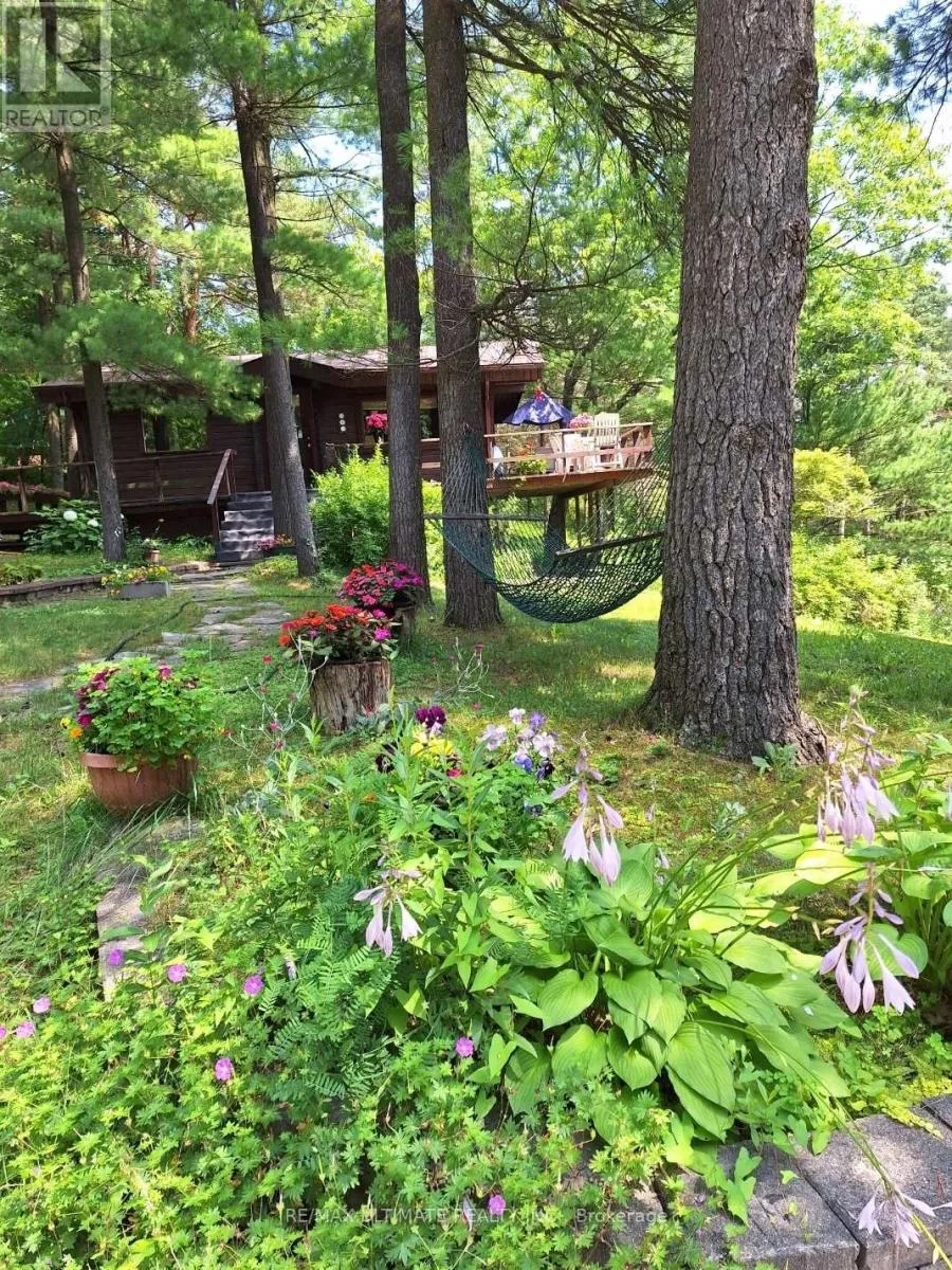 Cross Streets: Lakeridge Road and Chalk Lake Road. ** Directions: East of Lakeridge Road & North of Chalk Lake Road. Escape the hustle & discover your perfect getaway at 65 Sumac Lane, a truly unique 2+1 bedroom, 2 full-bathroom residence nestled on nearly 1 acre of peaceful seclusion, yet just 40 minutes from midtown Toronto. This charming 1976 Pan Abode cedar log bungalow offers 1,558 sqft of distinctive finished living space, blending rustic charm with modern convenience. The main floor welcomes you with a bright, open-concept layout featuring stunning vaulted ceilings throughout the living room, dining room, & updated kitchen. The living area is centred around a cozy, standalone propane fireplace & boasts hardwood floors & 2 convenient walkouts leading to a south-facing deck. The updated kitchen features an attractive picture window & the 2 main-floor bedrooms offer dedicated closets & vaulted ceilings. An updated 4-piece bathroom with a soaker tub & vaulted ceiling complete the main level.A beautiful wooden staircase descends to the walk-out basement, where the spacious rec room (which could serve as a primary bedroom) awaits, featuring laminate flooring, 8-ft ceilings, & triple doors opening to a stone patio. This lower level includes a large, updated 3-pc bathroom & a laundry room, along with a functional workshop storage area.One of the most valuable features is deeded access to a stunning, private, sandy beach on Chalk Lake, a 350m walk away. This exclusive, clear-water kettle lake is perfect for swimming, kayaking, & paddleboarding. You'll enjoy the best of both worlds with a private lakeside lifestyle & the convenience of being 5 minutes from HWY 407. With a quick 3-5 min drive to 2 ski resorts, endless trails for hiking & biking in Uxbridge, the Trail Capital of Canada. Close to top-tier golf courses, equestrian attractions & great restaurants like Slabtown Cider & Nest, this isn't just a home; it's a new way of life. Don't miss this rare opportunity to own a captivating cedar log residence & embrace a new way of life in the woods with exclusive private lake access. (id:27476)
