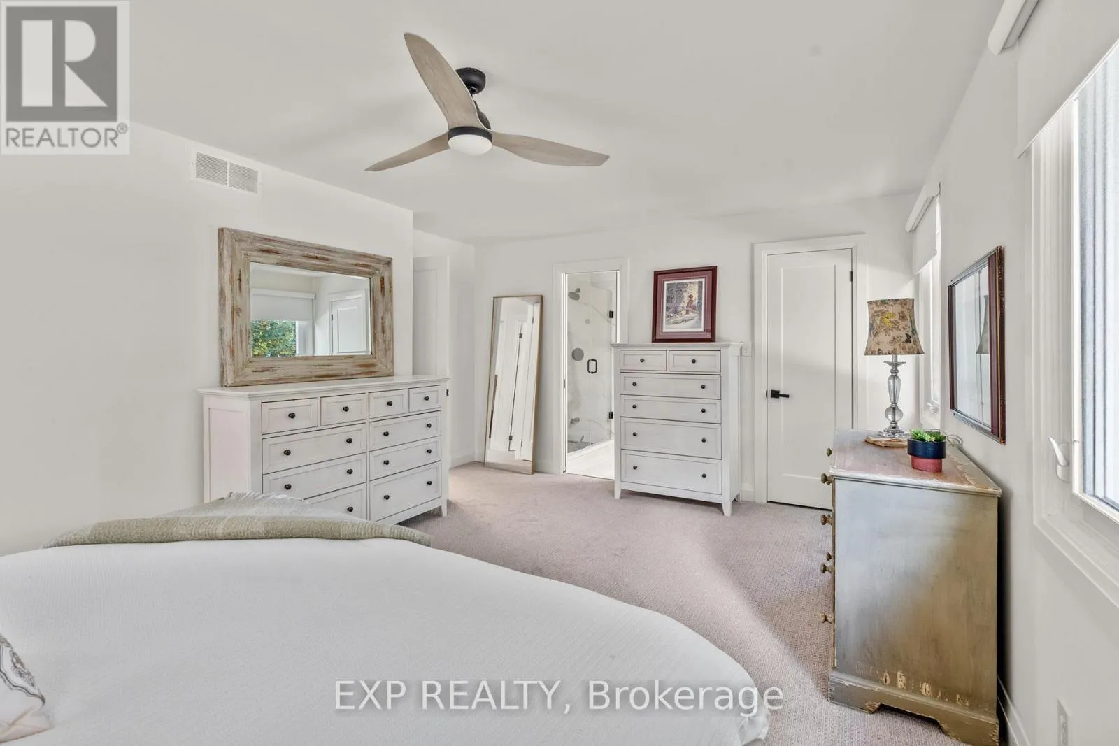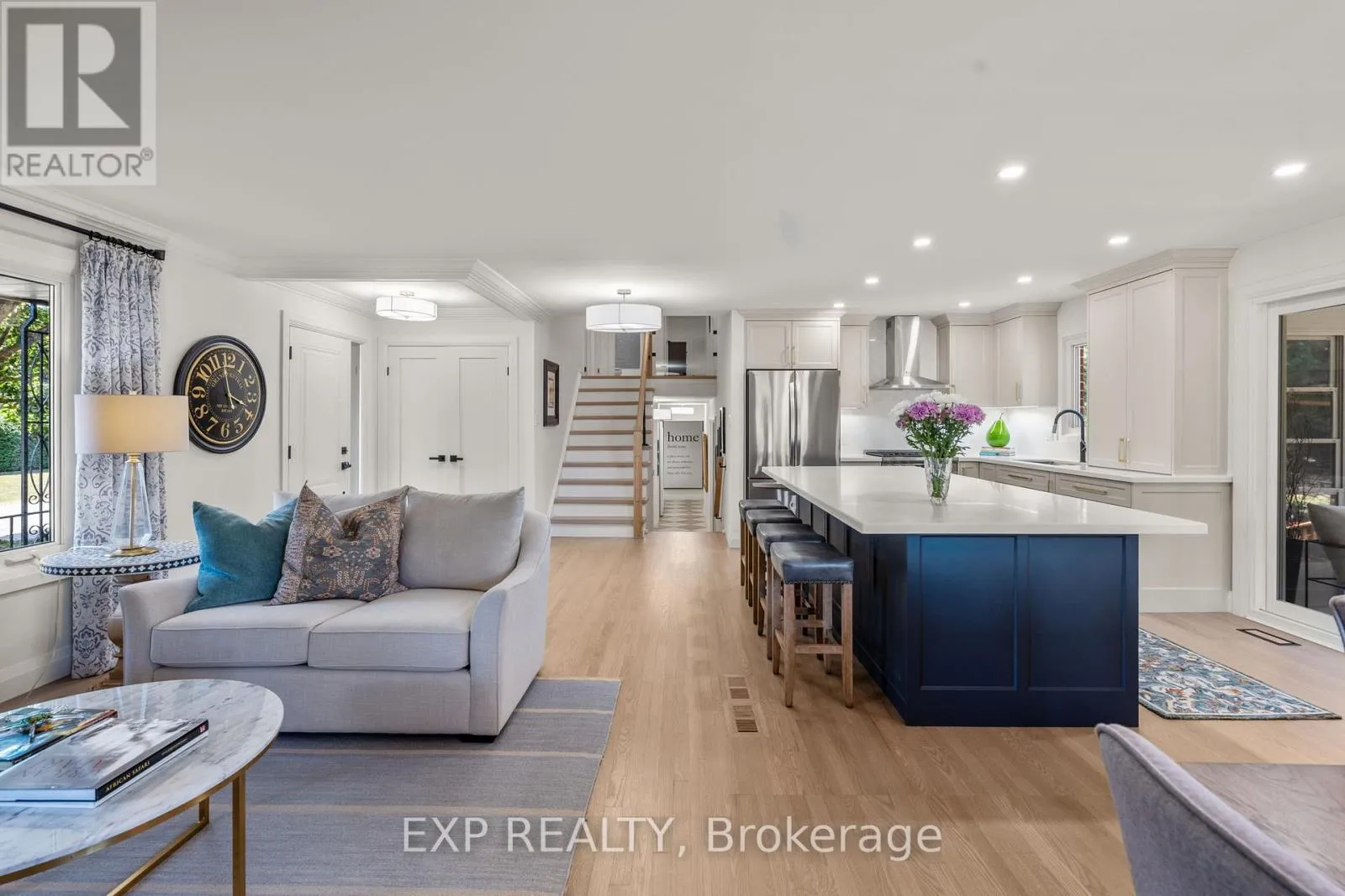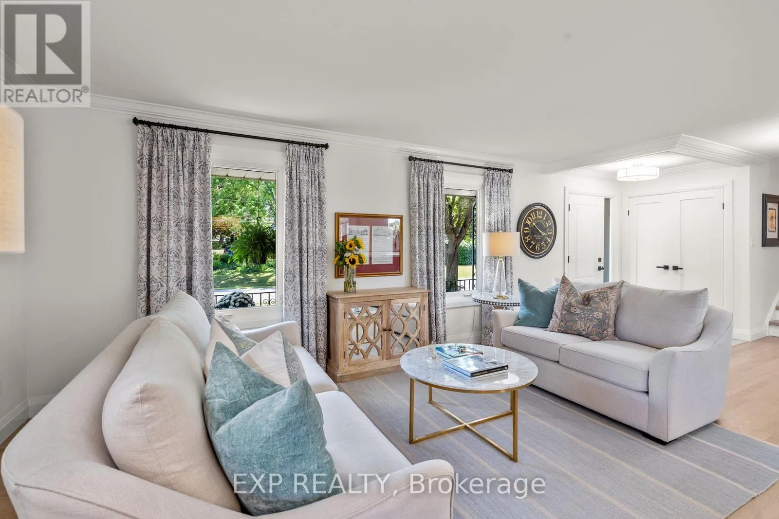 Simcoe Street & Riverview corner of Edinborough. Driveway faces Edinborough Welcome to this truly exceptional, fully renovated home thoughtfully designed for the option of multigenerational living, offering multiple living spaces with separate entrances in the prestigious community of Cawkers Creek. Situated on an oversized private lot, this home blends timeless elegance with modern luxury. Step into the custom designed kitchen featuring high-end appliances, quartz counters and backsplash, a show-stopping 9-foot island and ample space for cooking, gathering, and entertaining. The open-concept layout is flooded with natural light from expansive windows, enhancing the crown moulding, stunning flooring, new lighting and fresh paint throughout. The main floor flows seamlessly into a stunning screened-in three-season sunroom, a private retreat overlooking the beautifully landscaped backyard and brand new deck. Just off the main level is another full living space with a fireplace, stunning built-ins and large windows. Just across is the hidden laundry room and a large bedroom, ensuite and walk-in closet. This level also has two spacious separate entrances plus garage access. The upper level boasts three large bedrooms all with large closets, windows and two luxurious bathrooms. Downstairs enjoy a fully finished basement with soaring 9-foot ceilings, ideal for a rec area, home gym, or extra bedroom. The spacious double car garage and extended driveway offer abundant parking and convenience. Every inch of this home has been crafted with quality and care, offering a truly turnkey living experience in a serene and private setting. Located on a quiet street & close to all amenities! *EXTRAS* Fully renovated throughout, new lighting, doors, trim, baseboards, fresh paint, new carpet throughout, deck, luxury appliances, Shed has electrical, furnace 2020, heat pump/ac 2025, hwt 2025 owned, newer roof, newer windows. Please see feature sheet for more details. Seller is open to Vendor take back mortgage. (id:27476)