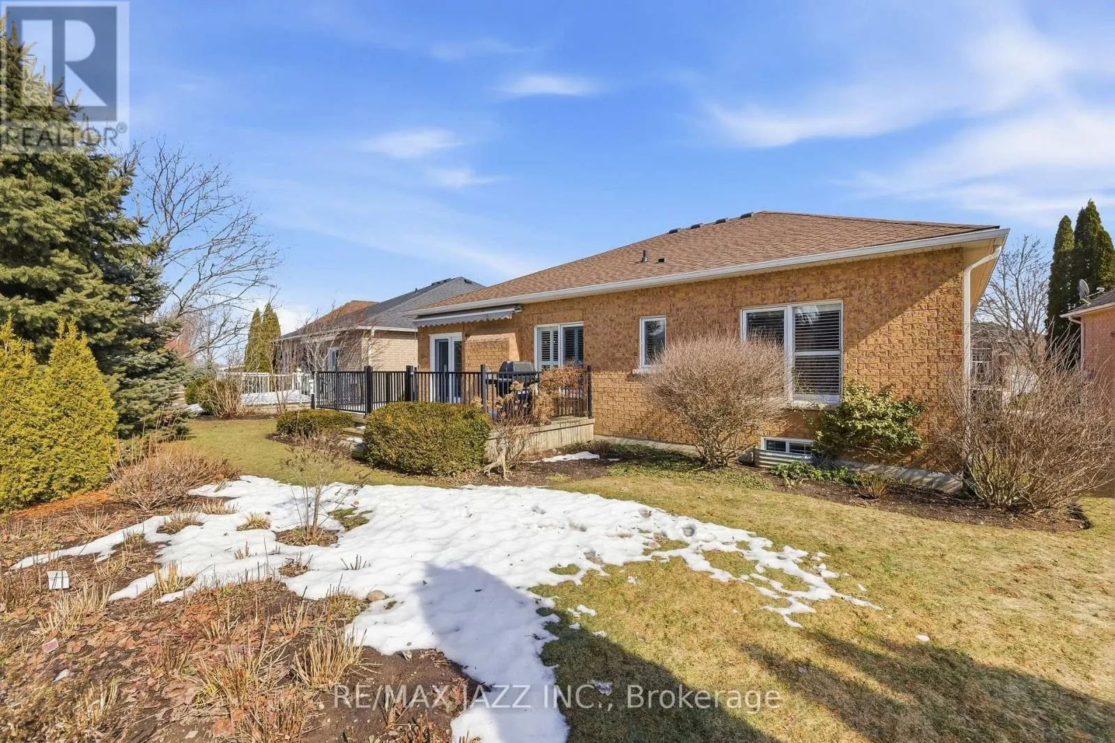 SIMCOE ST/REACH ST There's a certain peace that comes with life in Canterbury Commons - Quiet streets, friendly faces, and a sense of belonging that's hard to find elsewhere. Set along the west side of Commons Boulevard, where no sidewalk separates you from your front yard, this all-brick bungalow has been cared for with pride by only its second owner and offers a welcoming blend of comfort and timeless appeal. Step inside to find 9-foot ceilings, large windows and a bright living space anchored by a cozy gas fireplace. Part of the main floor features new hardwood flooring, adding warmth and refinement to the home's classic design. The kitchen and dining areas remain distinct - prefect for those who enjoy a more traditional layout when cooking and entertaining. With two bedrooms and their bathrooms, the home offers both practicality and privacy. A true double garage and double driveway set this property apart, providing parking for four and convenient access year-round. Outside, you're only steps from the scenic Waterfront Trail - a 2.4km stretch ideal for walking for cycling along Lake Scugog. Residents of Canterbury also enjoy access to the private community recreation hub, complete with an outdoor swimming pool, clubhouse, and organized activities designed to bring neighbours together. A partially finished room in the basement provides flexible space for hobbies, work from home or storage, with plenty of potential for the future. Just five minutes from historic downtown Port Perry, you'll find local shops, restaurants and lakeside cafes all close at hand. Here, you can slow down, connect and enjoy the best of small-town living in a community that truly feels like home. (id:27476)