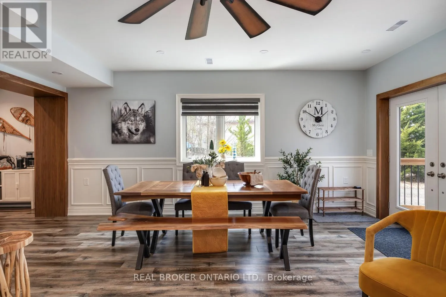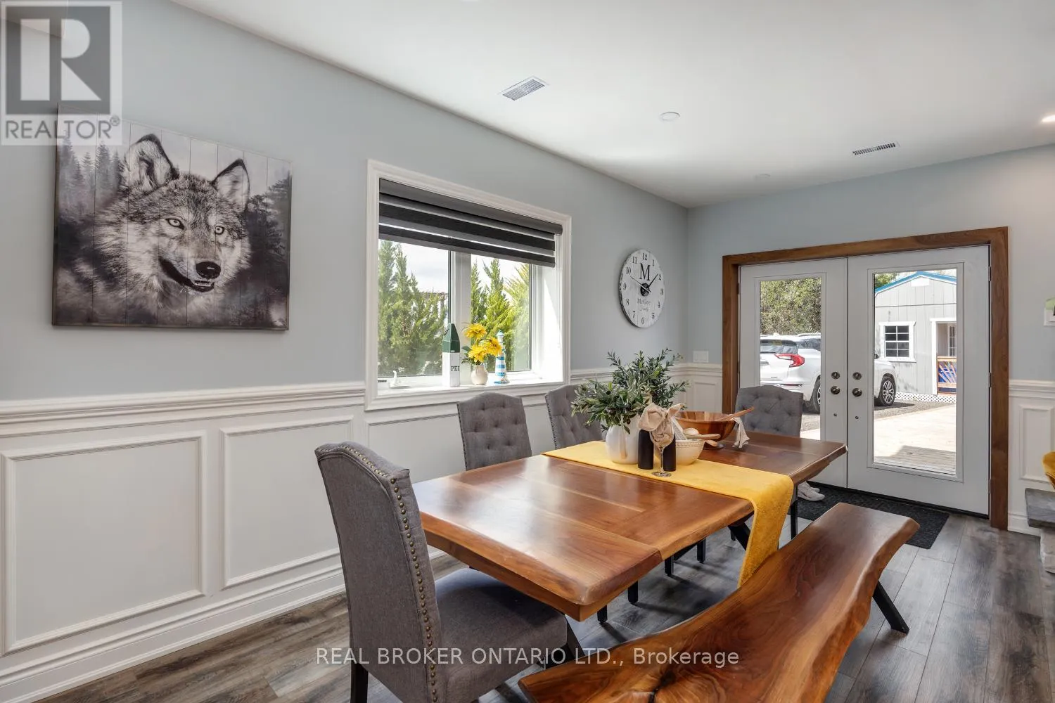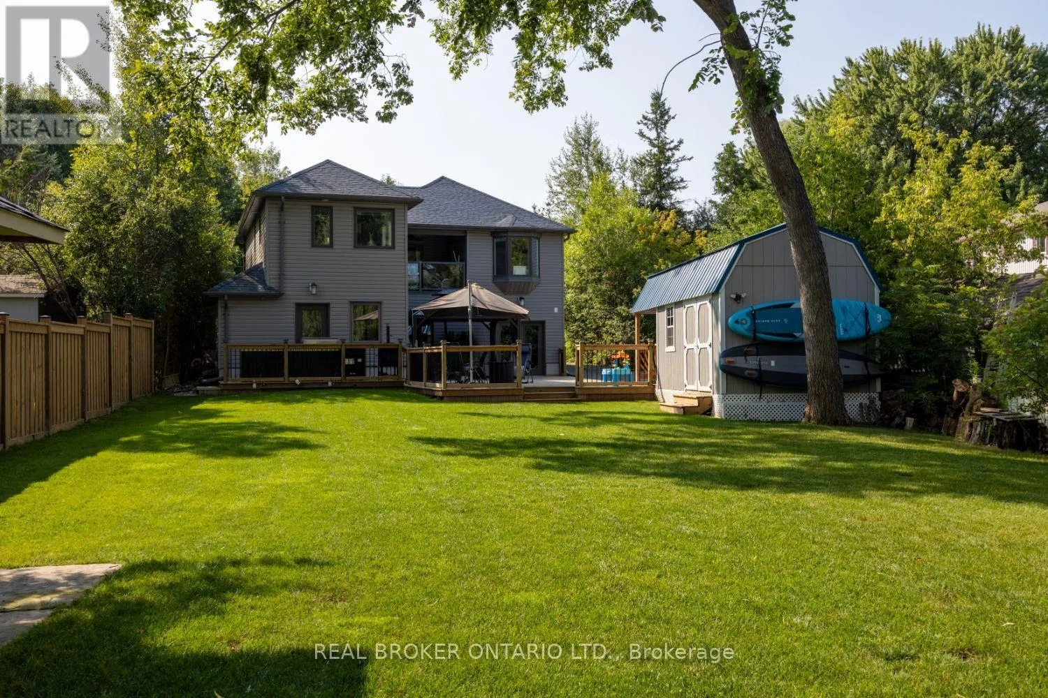 Cross Streets: Golf Course Rd/View Lake Rd. ** Directions: Hwy 35 to west on RR57 (Golf Course Rd). Turn west onto view lake Rd. House is 526. Welcome to your own lakeside escape, where comfort, relaxation, and natural beauty come together. Set on an oversized, beautifully landscaped waterfront lot, this inviting 5-bedroom home is the perfect place to gather with family and friends while enjoying peaceful views of the lake. Two driveways provide plenty of parking for guests, while the heated and insulated 2-car garage with epoxy flooring and a convenient 3-piece bath adds practicality for year-round use. Inside, the bright and spacious main floor is finished with stylish luxury vinyl plank flooring. The eat-in kitchen features quartz countertops, stainless steel appliances, pot lighting, and plenty of storage, perfect for preparing meals after a day on the water. A charming dining room with classic wainscoting offers walk-out access to the expansive deck, making summer dinners and sunset gatherings effortless. The cozy living room with gas fireplace invites you to unwind, while a den provides extra space. Upstairs, five generously sized bedrooms make hosting family and guests easy. The primary suite is a peaceful retreat with a walk-in closet and a beautiful ensuite featuring a deep soaker tub and tiled walk-in shower. A separate sitting room opens to a balcony overlooking the lake, the perfect place to enjoy morning coffee or watch the sky change over the water. Outside, your private waterfront oasis awaits. The large deck with outdoor kitchen and gazebo is ideal for entertaining, while the private dock and sandy beach area offer endless opportunities for swimming, boating, and soaking up the sun. With two garden sheds for storage and stunning surroundings, this property is ready for you to move in and start making unforgettable lakefront memories. (id:27476)