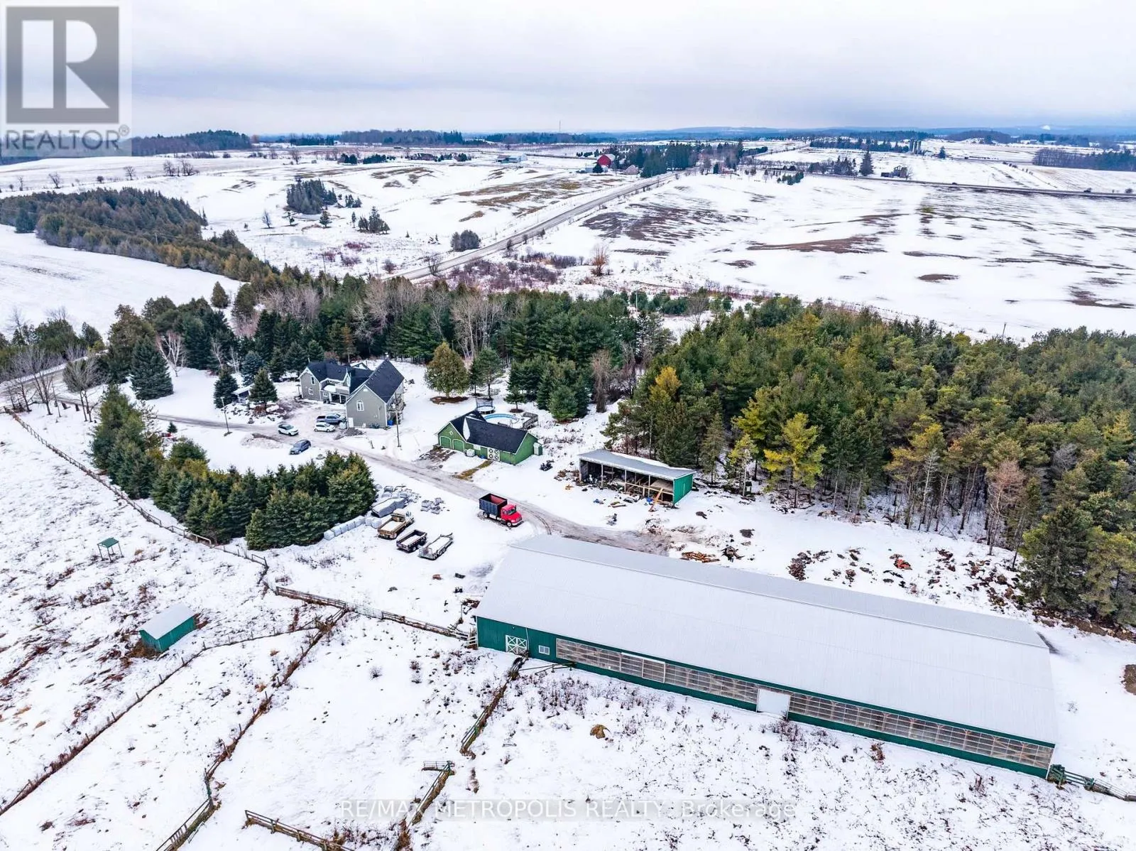 Scugog Line 2 rd / Highway 12 Set on 99 acres of rolling farmland, pasture, and mature woods, this exceptional country property offers space, flexibility, and income potential just minutes from Port Perry and major routes. The 4,000+ sq ft home features two self-contained living areas with a total of 6 bedrooms, 2 kitchens, multiple bathrooms, and main-floor laundry-ideal for multi-generational living, guests, or rental opportunities. A three-car garage with a separate upper-level suite adds even more versatility. The land includes productive hay fields, fenced paddocks, wooded trails, and natural water features, making it perfect for agricultural or recreational use. Equestrian amenities include a large insulated 9-stall barn with indoor arena, heated tack and feed rooms, hay loft, and year-round water. A rare opportunity to own a complete country package offering privacy, functionality, and room to grow. Approx 10 minute drive to Whitby, restaurants, schools, groceries and all other amenities! (id:27476)