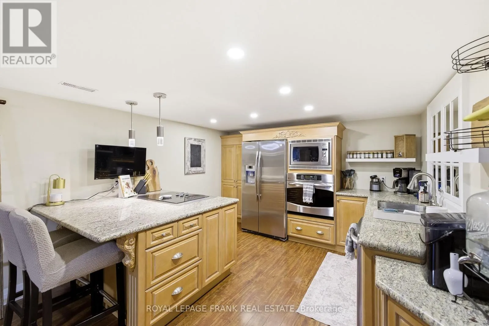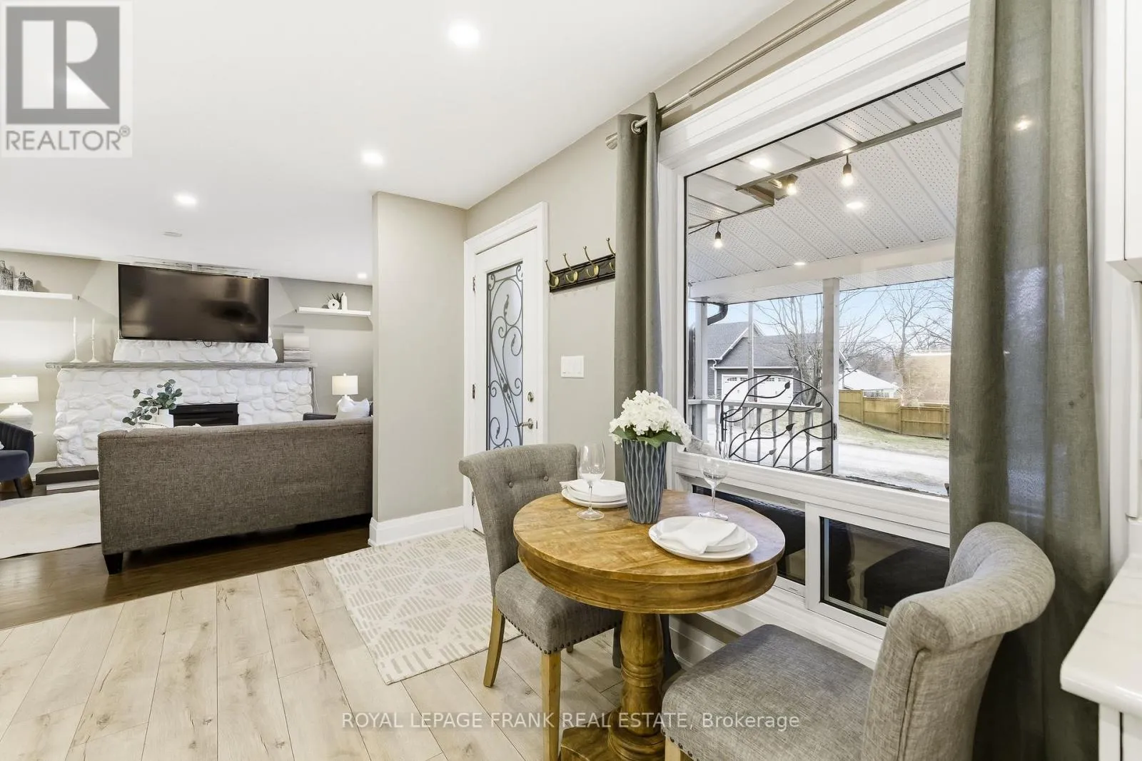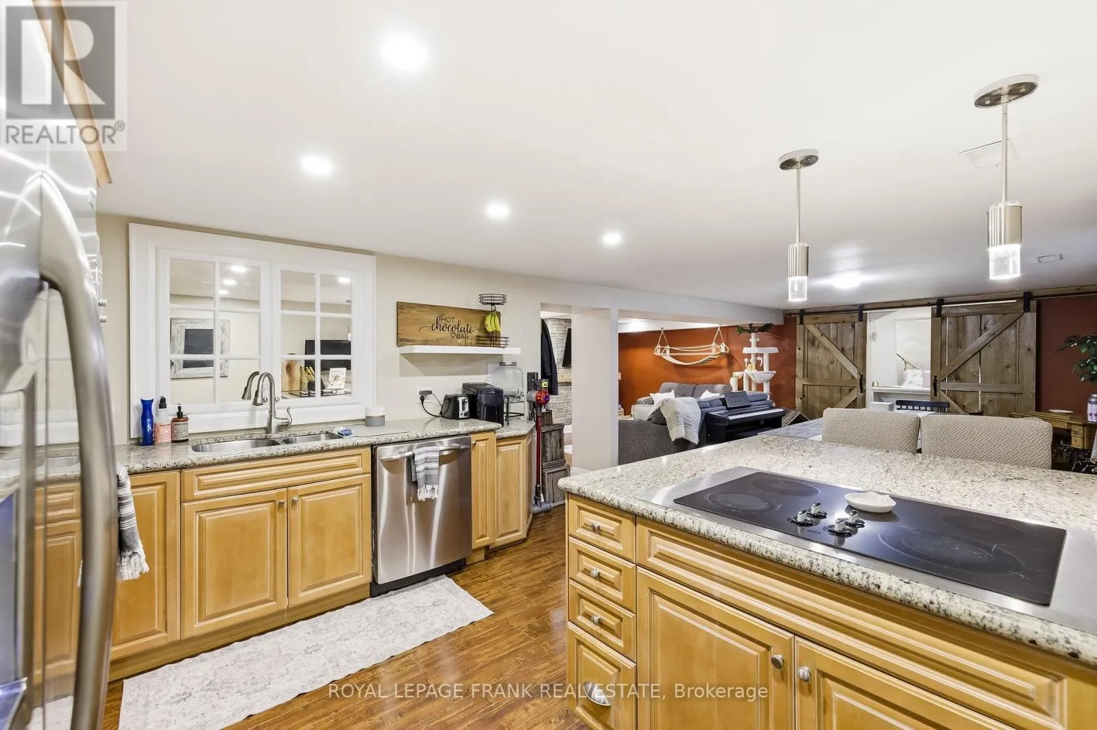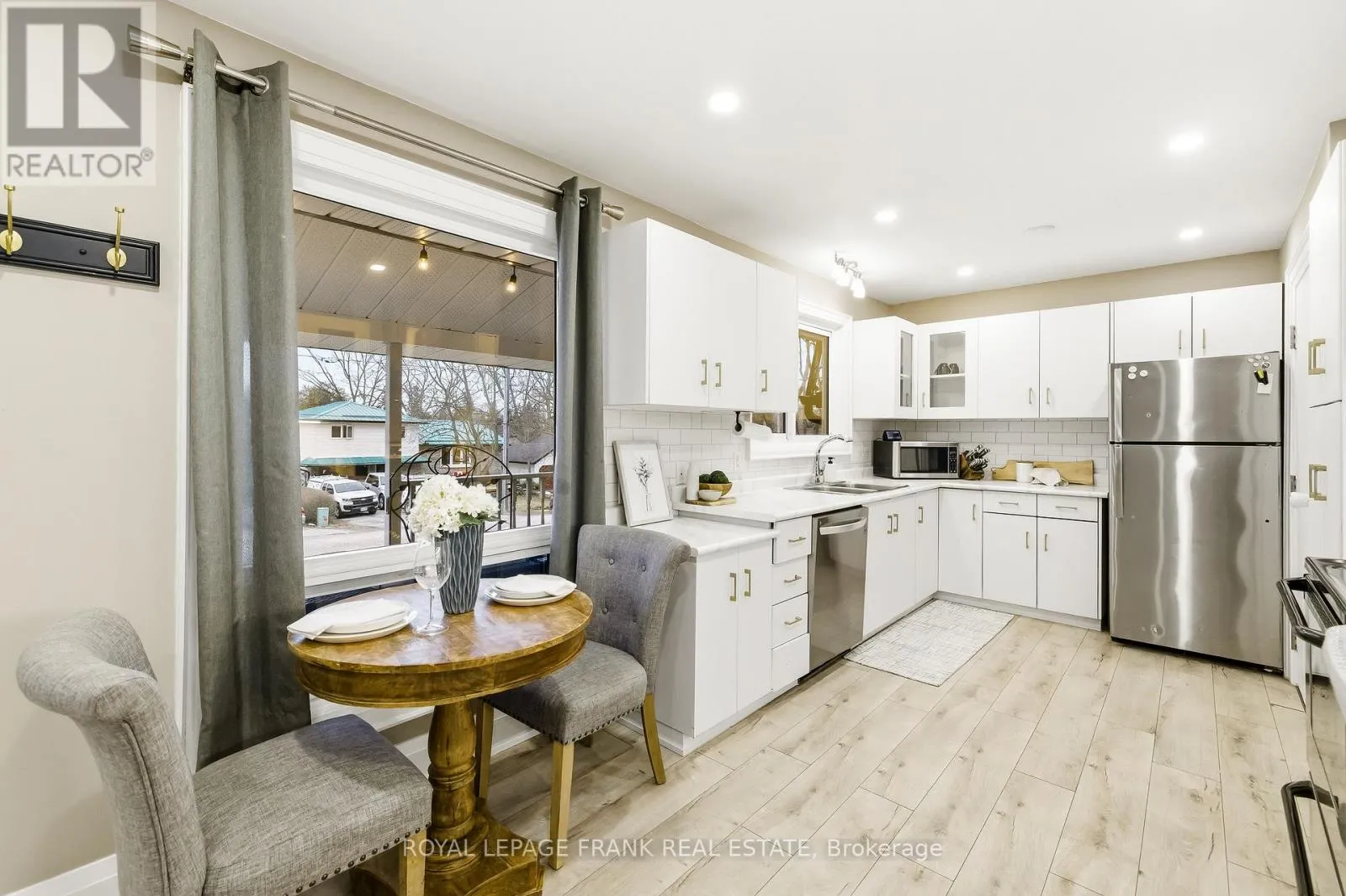 Queen St & Caleb St Discover exceptional convenience and flexibility in this well-appointed 3+2 bedroom bungalow, ideally located in a quiet family-friendly neighbourhood just a short walk to downtown Port Perry, the waterfront, schools, and everything that Port Perry offers. This versatile home provides opportunities to earn rental income, accommodate a home business, and so much more. Winding steps lead to a charming covered front porch, perfect for relaxing evenings or enjoying your morning coffee. The main floor offers 3 bedrooms, a bright living room with a gorgeous fireplace, dining room with dry bar, and a stunning kitchen with stainless steel appliances and pot lights. A versatile rear room with vaulted ceiling, chandelier, and large mirror offers endless possibilities as a spacious third bedroom, home business space, or hobby room, with separate entrances for added convenience. Main floor laundry hookups are also in place. A separate side entrance leads to a beautifully finished lower level featuring a luxurious in-law suite with custom kitchen, granite countertops, stainless steel appliances, wall oven, dishwasher, dining area, two bedrooms, full bathroom with oversized walk-in shower, and laundry. Outside, enjoy a fenced interlocked patio, long driveway with ample parking, attached carport, and an impressive detached double garage with heat, hydro, water, loft storage, and a 6-inch service pit with lighting for vehicle work. This is truly a rare opportunity to own a home that offers comfort, versatility, and outstanding functionality. (id:27476)