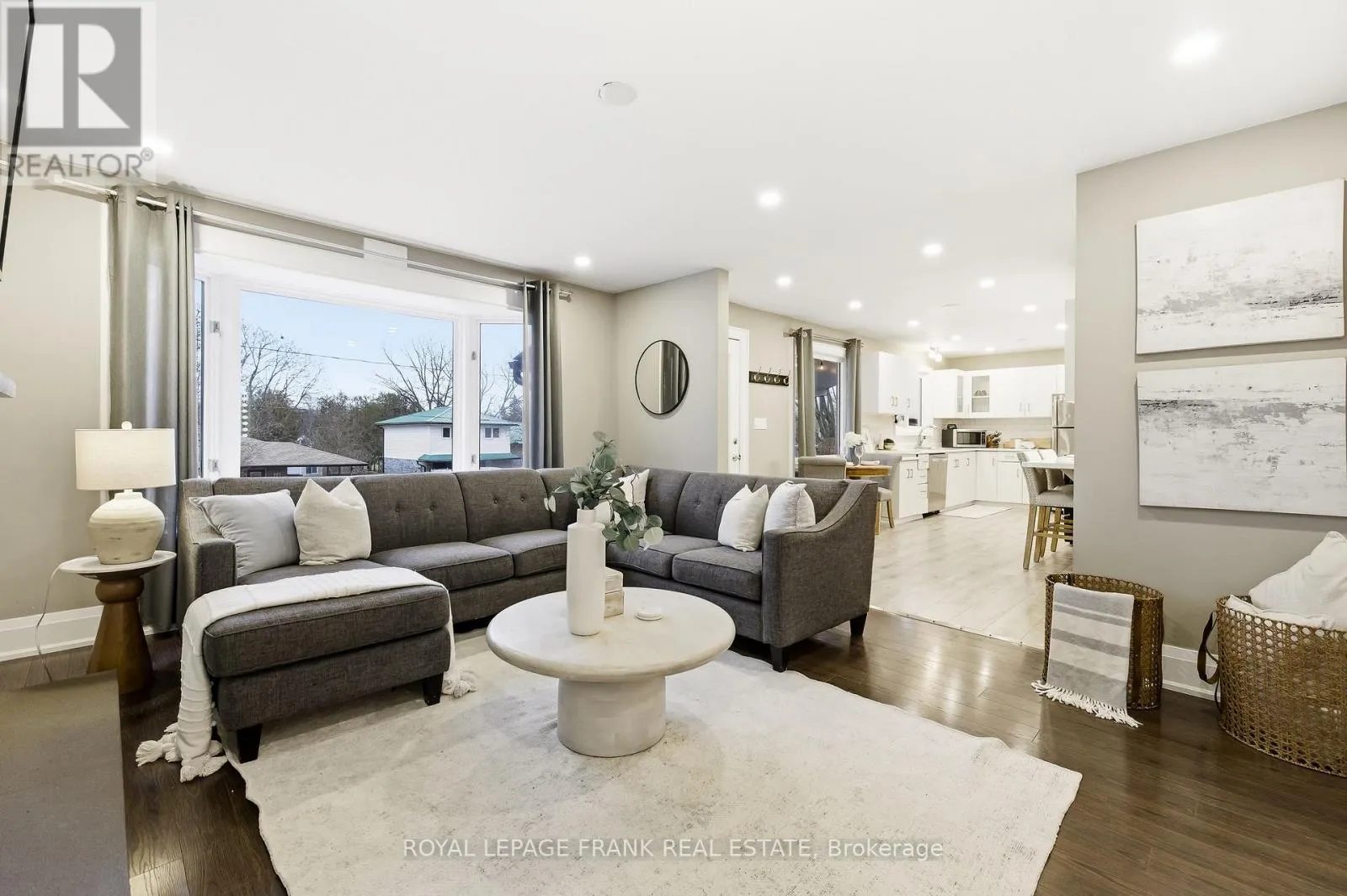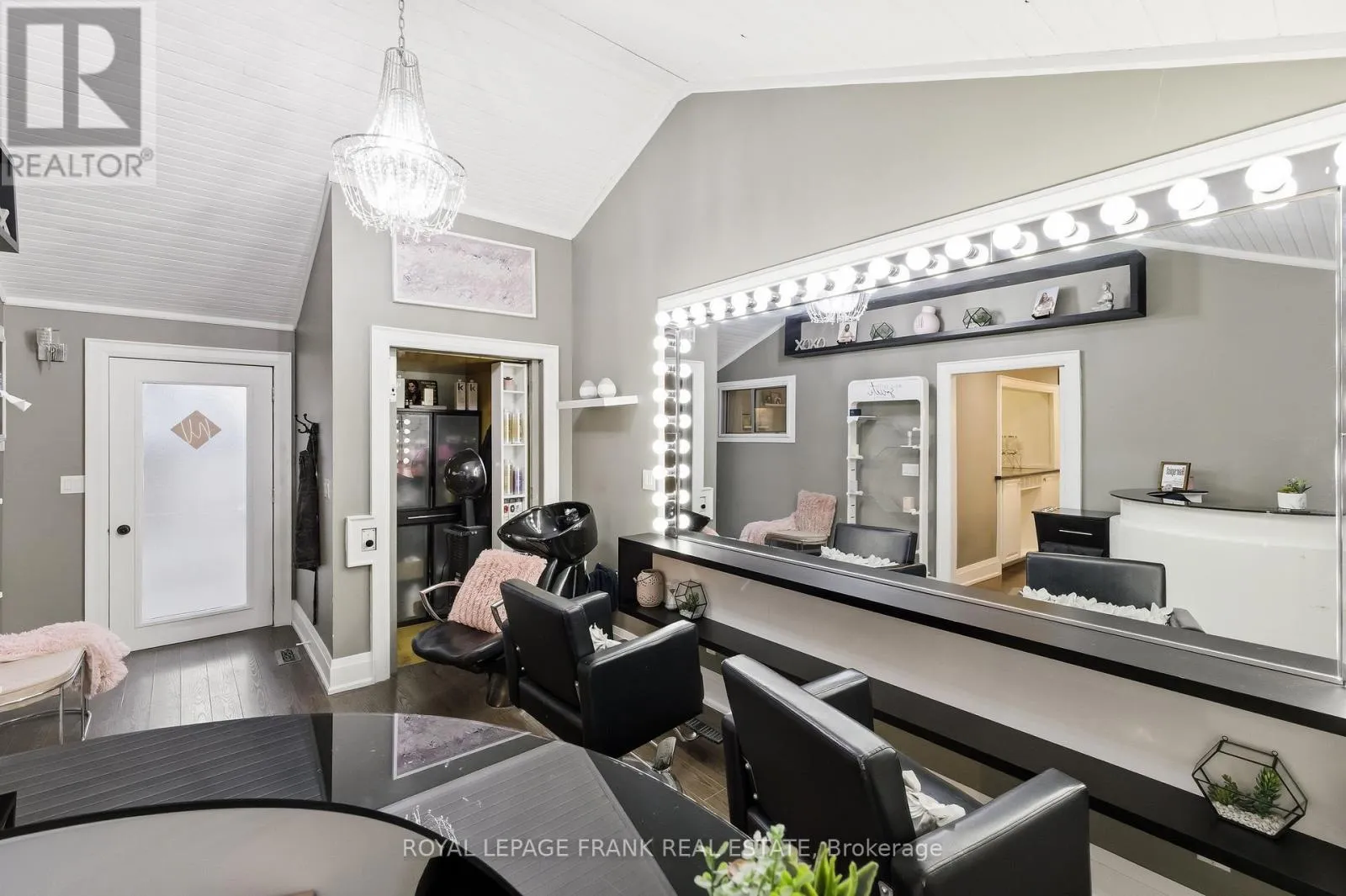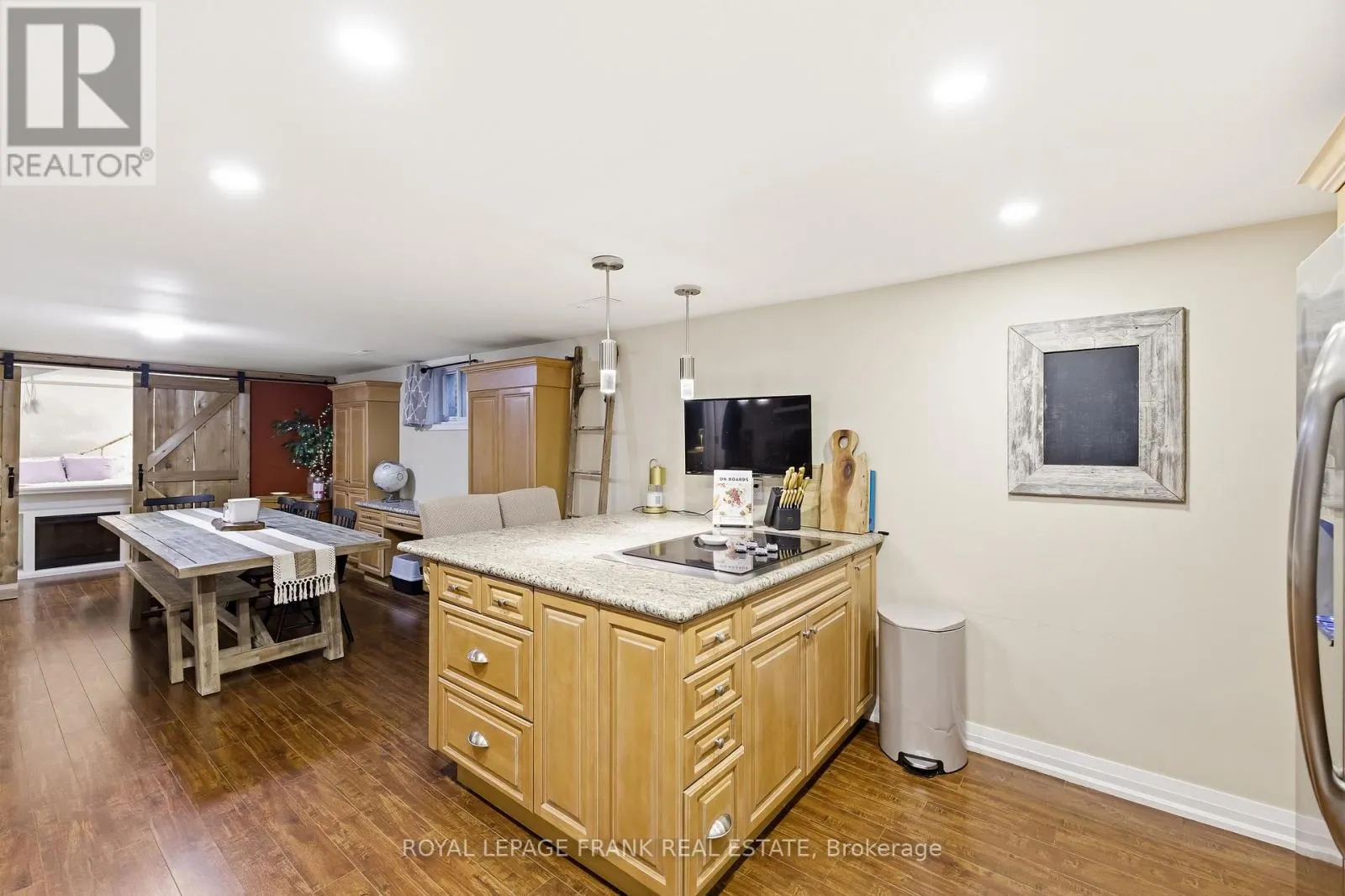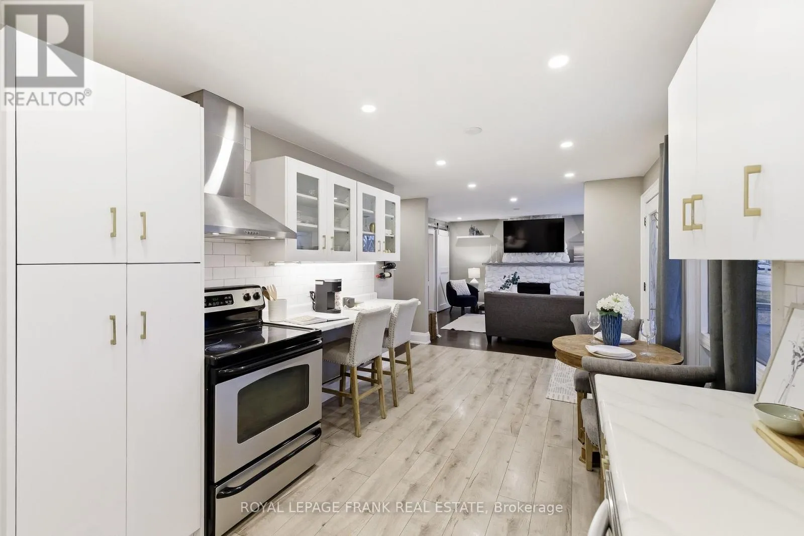 Queen St & Caleb St Discover exceptional convenience and flexibility in this well-appointed 3+2 bedroom bungalow, ideally located in a quiet family-friendly neighbourhood just a short walk to downtown Port Perry, the waterfront, schools, and everything that Port Perry offers. This versatile home provides opportunities to earn rental income, accommodate a home business, and so much more. Winding steps lead to a charming covered front porch, perfect for relaxing evenings or enjoying your morning coffee. The main floor offers 3 bedrooms, a bright living room with a gorgeous fireplace, dining room with dry bar, and a stunning kitchen with stainless steel appliances and pot lights. A versatile rear room with vaulted ceiling, chandelier, and large mirror offers endless possibilities as a spacious third bedroom, home business space, or hobby room, with separate entrances for added convenience. Main floor laundry hookups are also in place. A separate side entrance leads to a beautifully finished lower level featuring a luxurious in-law suite with custom kitchen, granite countertops, stainless steel appliances, wall oven, dishwasher, dining area, two bedrooms, full bathroom with oversized walk-in shower, and laundry. Outside, enjoy a fenced interlocked patio, long driveway with ample parking, attached carport, and an impressive detached double garage with heat, hydro, water, loft storage, and a 6-inch service pit with lighting for vehicle work. This is truly a rare opportunity to own a home that offers comfort, versatility, and outstanding functionality. (id:27476)