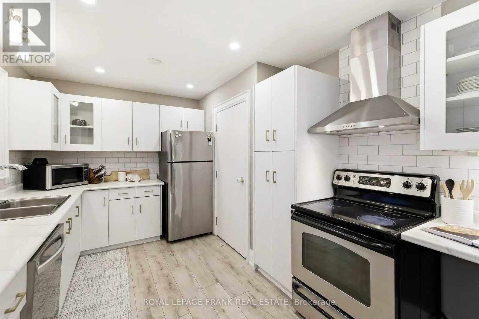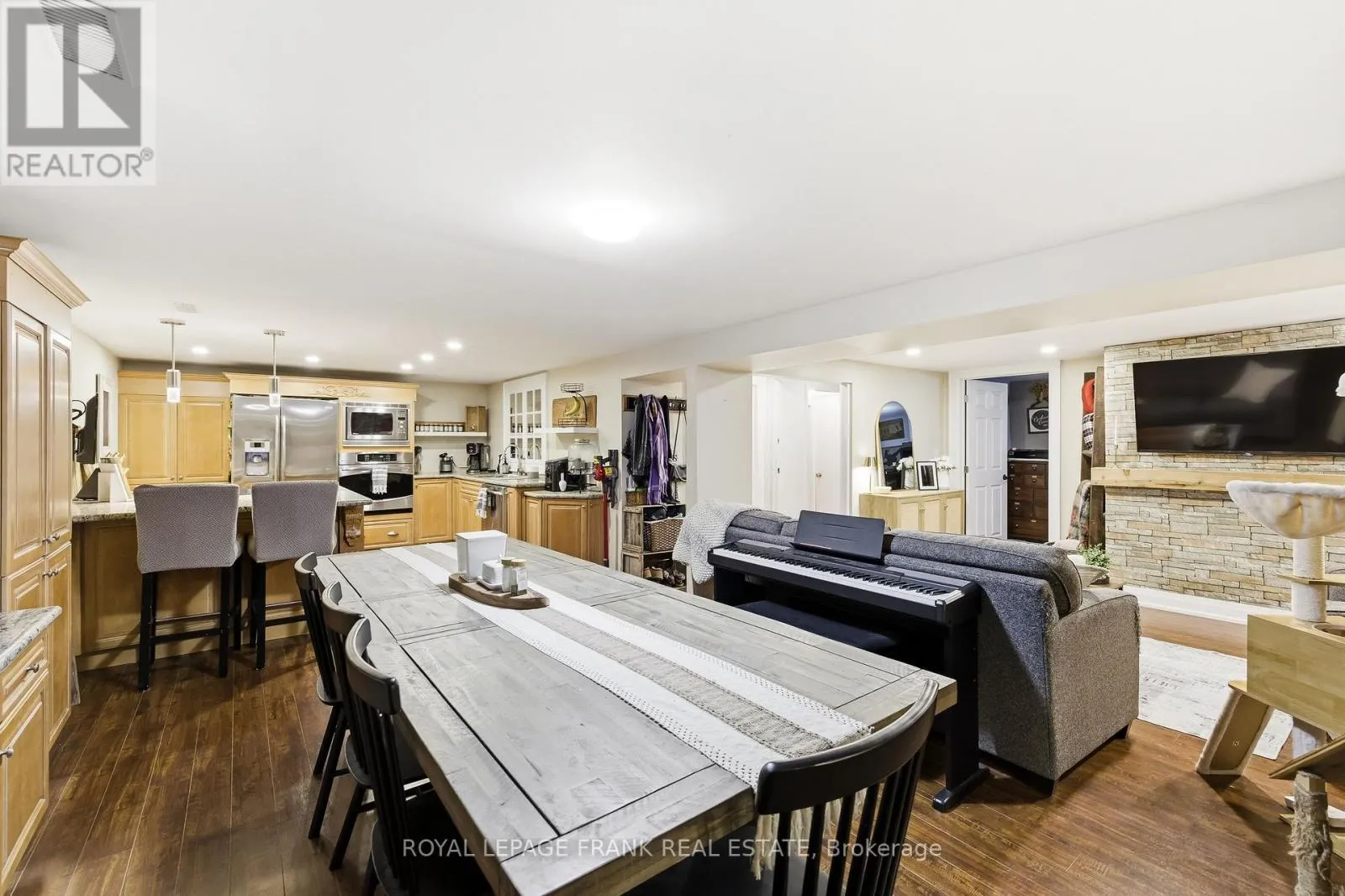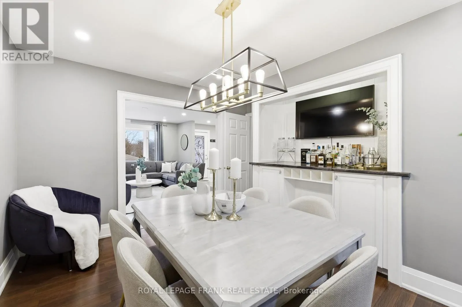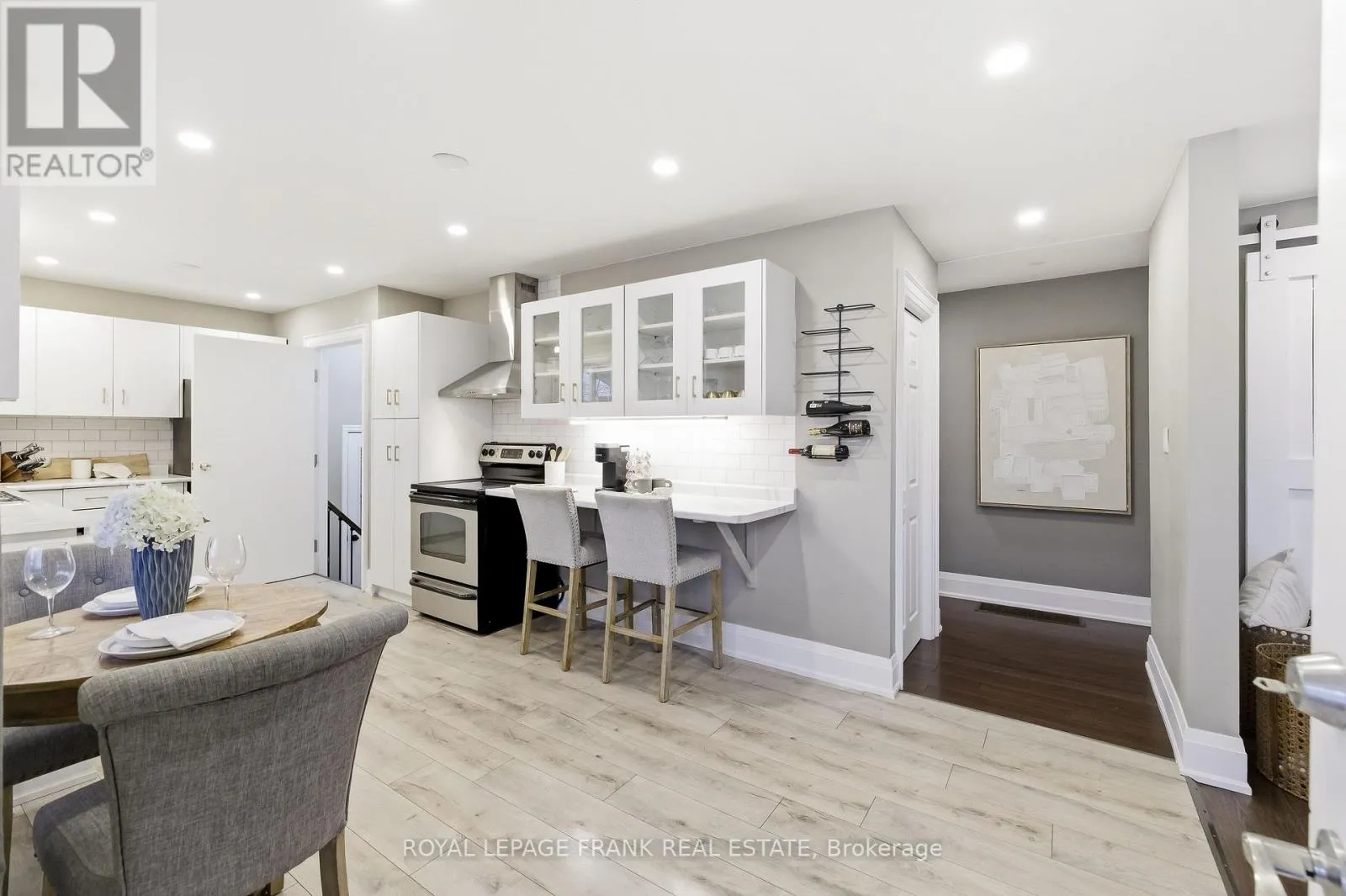 Queen St & Caleb St Discover exceptional convenience and flexibility in this well-appointed 3+2 bedroom bungalow, ideally located in a quiet family-friendly neighbourhood just a short walk to downtown Port Perry, the waterfront, schools, and everything that Port Perry offers. This versatile home provides opportunities to earn rental income, accommodate a home business, and so much more. Winding steps lead to a charming covered front porch, perfect for relaxing evenings or enjoying your morning coffee. The main floor offers 3 bedrooms, a bright living room with a gorgeous fireplace, dining room with dry bar, and a stunning kitchen with stainless steel appliances and pot lights. A versatile rear room with vaulted ceiling, chandelier, and large mirror offers endless possibilities as a spacious third bedroom, home business space, or hobby room, with separate entrances for added convenience. Main floor laundry hookups are also in place. A separate side entrance leads to a beautifully finished lower level featuring a luxurious in-law suite with custom kitchen, granite countertops, stainless steel appliances, wall oven, dishwasher, dining area, two bedrooms, full bathroom with oversized walk-in shower, and laundry. Outside, enjoy a fenced interlocked patio, long driveway with ample parking, attached carport, and an impressive detached double garage with heat, hydro, water, loft storage, and a 6-inch service pit with lighting for vehicle work. This is truly a rare opportunity to own a home that offers comfort, versatility, and outstanding functionality. (id:27476)