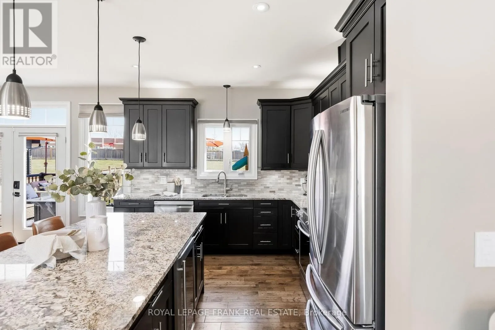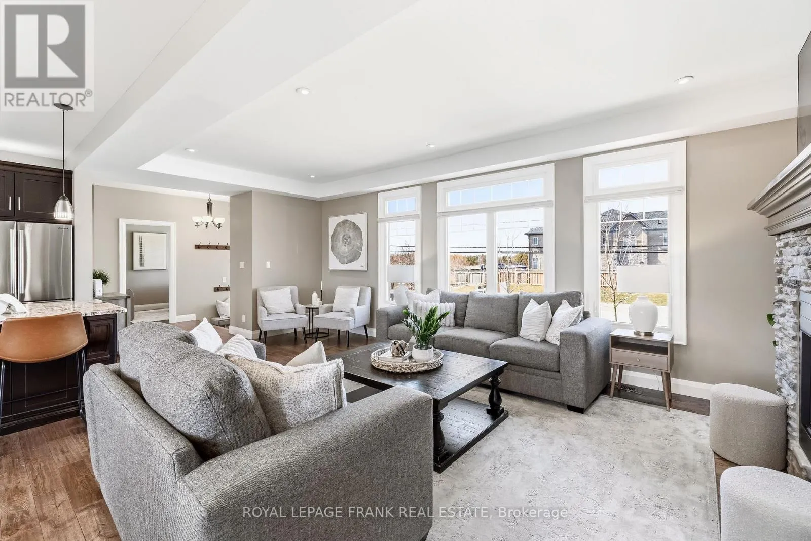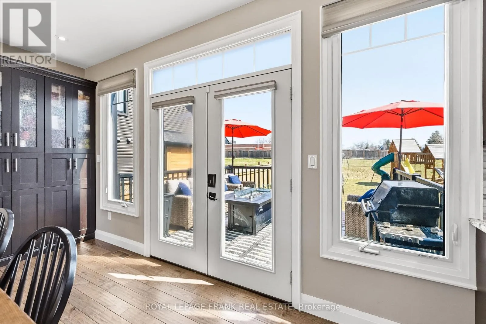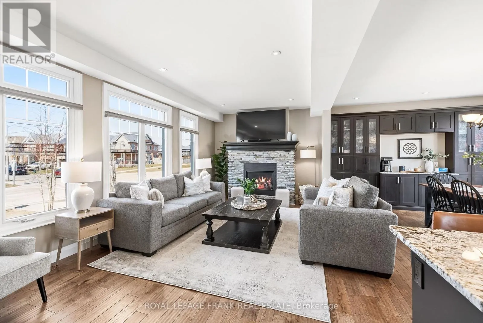 Old Simcoe Rd & Paxton St Set on a huge lot in one of Port Perry's most convenient family-friendly locations, this stunning home offers exceptional space, quality finishes, and thoughtful upgrades throughout. Featuring hardwood floors throughout, a grand front entrance with a custom floating staircase, and a bright open-concept main level with pot lights, built-in dining cabinetry, and a striking gas fireplace, every detail is designed for comfort and style. The chef-inspired kitchen features a large island with storage and beverage fridge, stainless steel appliances, and granite countertops, with matching granite in all bathrooms. Walk out from the dining area to a private back deck overlooking the large fenced backyard, professionally landscaped with 11 new trees and a shed with hydro. Upstairs offers 3 oversized bedrooms plus a huge primary suite with his-and-hers walk-in closets and a luxurious 5-piece ensuite with double vanity, tub, glass shower, and rainfall fixture. A large linen closet and abundant storage add practicality. The main floor also includes a dedicated office and laundry room with sink, window, and garage access, creating future separate basement entrance potential for rental income or multi-generational living. The garage includes a heater, side door, auto opener, and ample shelving/storage. The open-concept basement is framed, insulated, filled with large above-grade windows, and includes a rough-in for a 3-piece bath. Additional highlights include Hunter Douglas retractable shades, central vacuum, Google smart home integration (lights, doors, garage door, thermostat), full security system with 5 cameras, 200-amp service plus separate 60-amp garage service, EV charger wiring, water softener and dechlorination system, parking for 8 vehicles, and a private paved fenced side yard with double gate-ideal for kids, trailer, or boat storage. Walking distance to elementary schools, Port Perry High School, parks, hospital, downtown, restaurants, and waterfront. (id:27476)