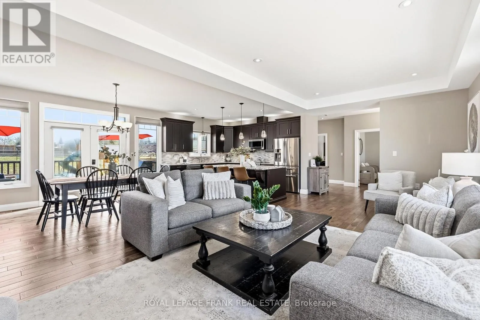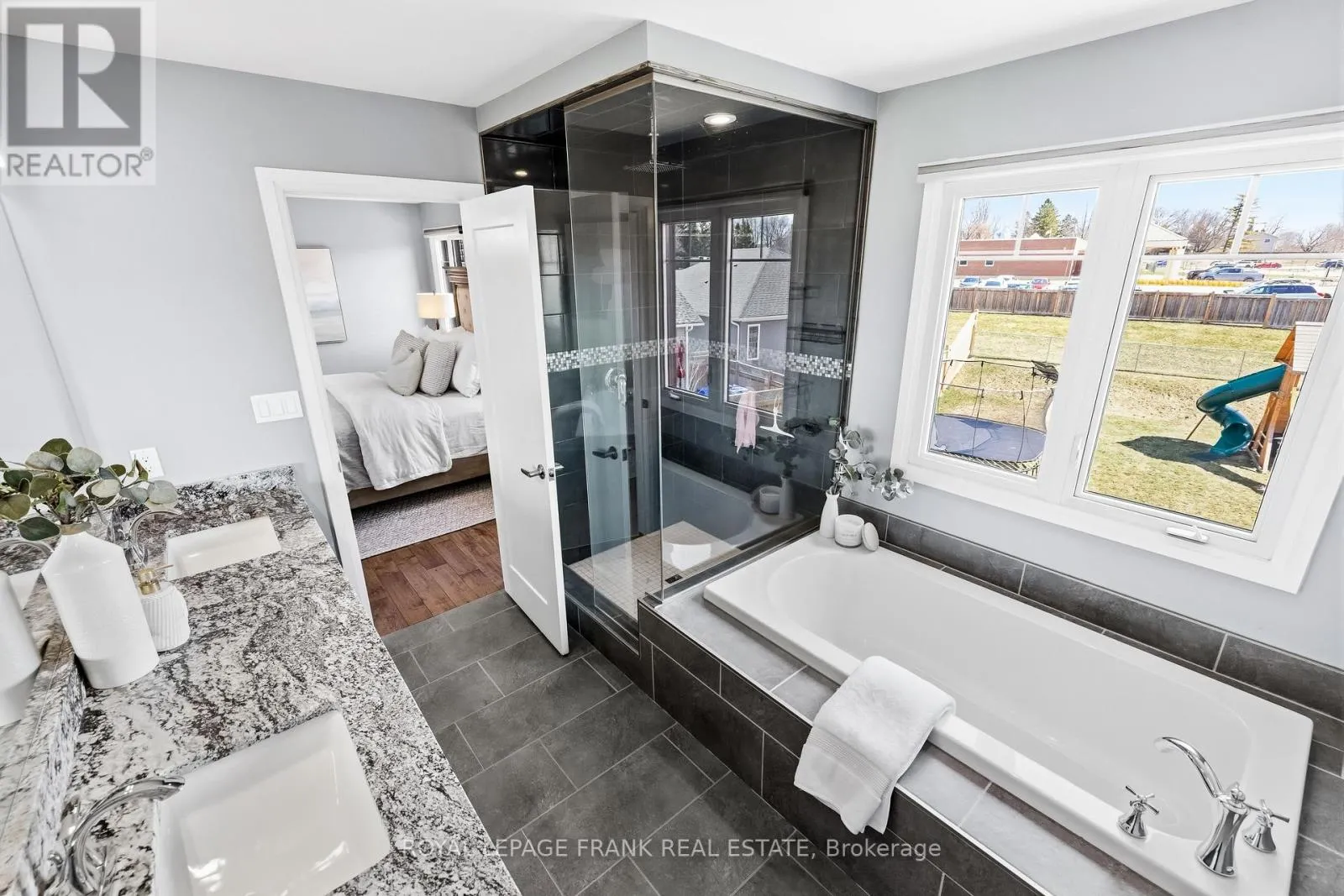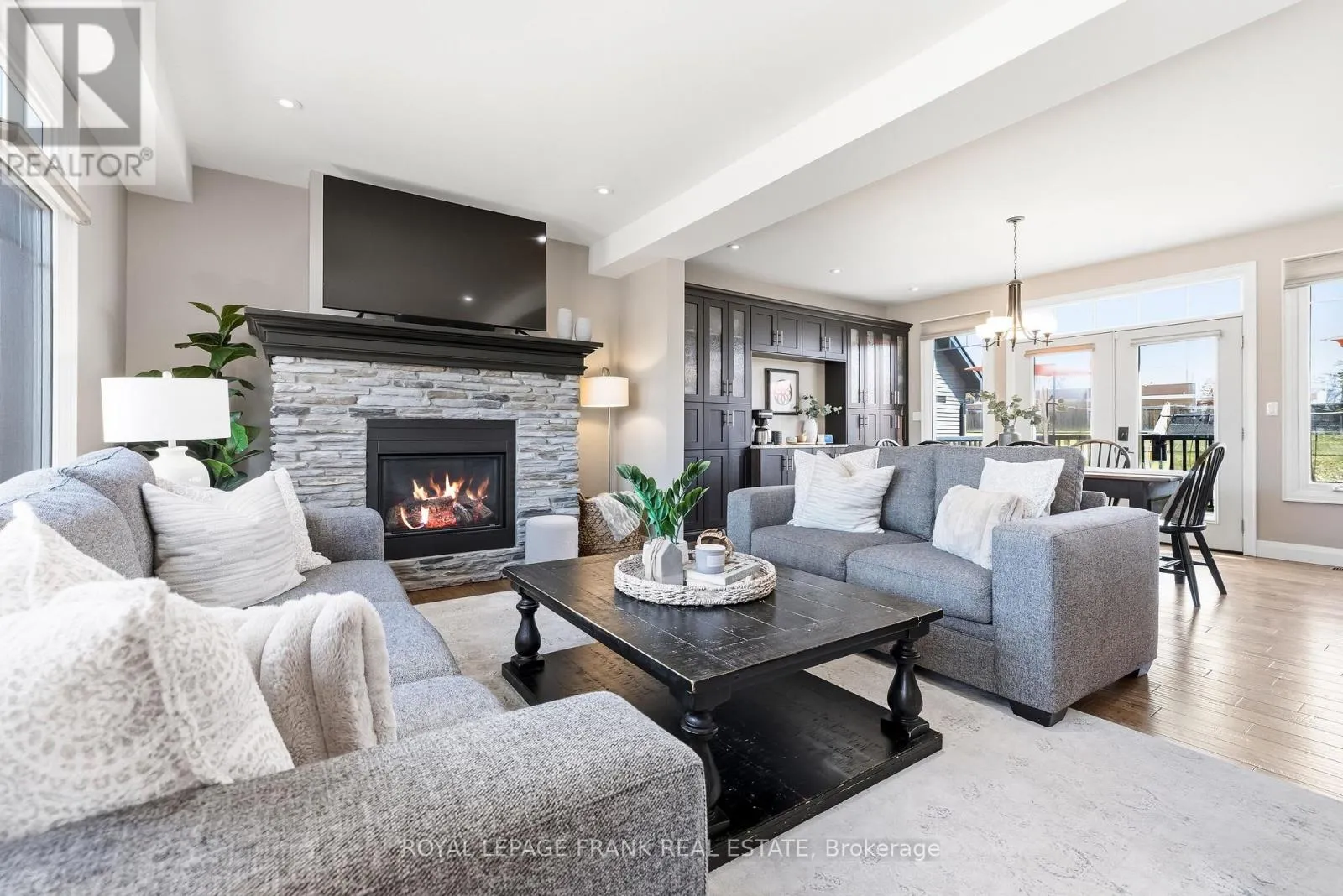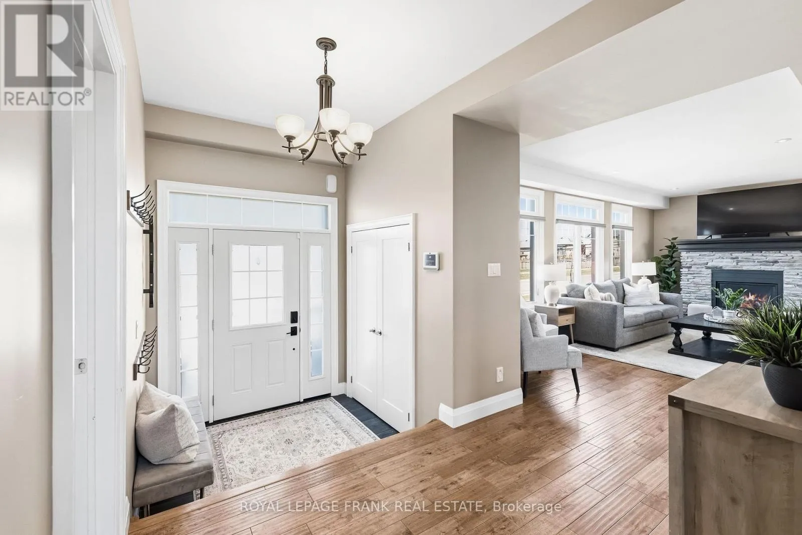 Old Simcoe Rd & Paxton St Set on a huge lot in one of Port Perry's most convenient family-friendly locations, this stunning home offers exceptional space, quality finishes, and thoughtful upgrades throughout. Featuring hardwood floors throughout, a grand front entrance with a custom floating staircase, and a bright open-concept main level with pot lights, built-in dining cabinetry, and a striking gas fireplace, every detail is designed for comfort and style. The chef-inspired kitchen features a large island with storage and beverage fridge, stainless steel appliances, and granite countertops, with matching granite in all bathrooms. Walk out from the dining area to a private back deck overlooking the large fenced backyard, professionally landscaped with 11 new trees and a shed with hydro. Upstairs offers 3 oversized bedrooms plus a huge primary suite with his-and-hers walk-in closets and a luxurious 5-piece ensuite with double vanity, tub, glass shower, and rainfall fixture. A large linen closet and abundant storage add practicality. The main floor also includes a dedicated office and laundry room with sink, window, and garage access, creating future separate basement entrance potential for rental income or multi-generational living. The garage includes a heater, side door, auto opener, and ample shelving/storage. The open-concept basement is framed, insulated, filled with large above-grade windows, and includes a rough-in for a 3-piece bath. Additional highlights include Hunter Douglas retractable shades, central vacuum, Google smart home integration (lights, doors, garage door, thermostat), full security system with 5 cameras, 200-amp service plus separate 60-amp garage service, EV charger wiring, water softener and dechlorination system, parking for 8 vehicles, and a private paved fenced side yard with double gate-ideal for kids, trailer, or boat storage. Walking distance to elementary schools, Port Perry High School, parks, hospital, downtown, restaurants, and waterfront. (id:27476)
