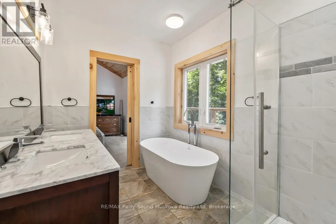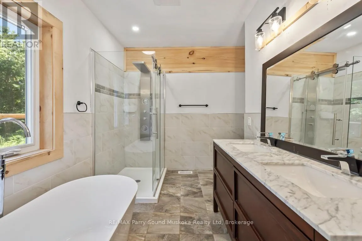 Cross Streets: 400, Oastler Park Dr, Rankin Lake Rd. ** Directions: Hwy 400 to Oastler Park Dr, left to Rankin Lake Rd to #15 on right. RURAL BUNGALOW 5 MINS to TOWN! Preferred Area just south of Parry Sound, Bright open concept plan, Captivating Vaulted pine ceilings in Great room with LED pot lighting, Stone fireplace w/airtight insert, Kitchen boasts quartz counters, Centre Island, Relax on the expansive sundeck w access to yard, Main floor Principal bedroom features 5 pc ensuite bath, Walk in closet, Walk out to private deck, Bright finished walkout lower level offers Guest rooms/Den/Office, Inviting family room with Gas Fireplace, Families will enjoy level front & rear yards, 100's of ft of property depth for privacy or future trails, ICF foundation, Forced air natural gas furnace, Gas hot water tank, Handy detached garage, Great opportunity mins to town; easy access to Hwy 400, Georgian Bay & many desirable area lakes! (id:27476)
