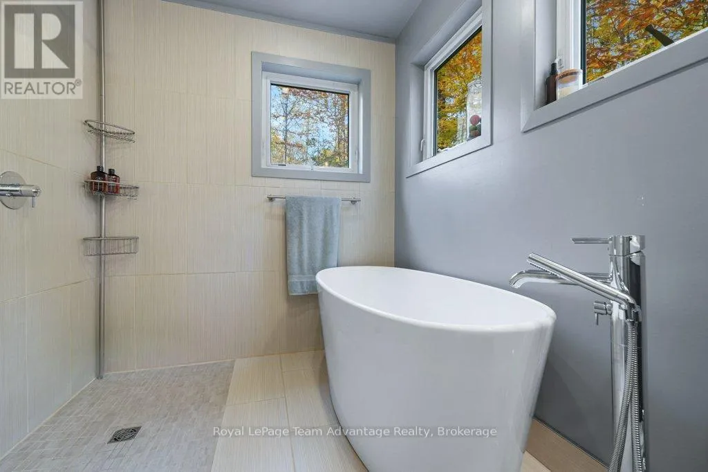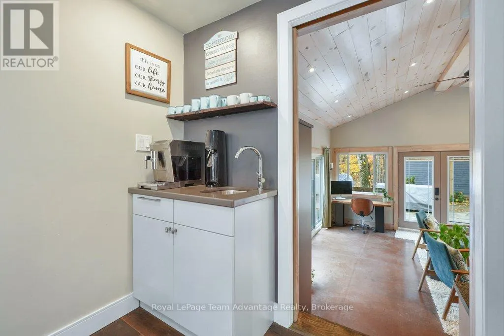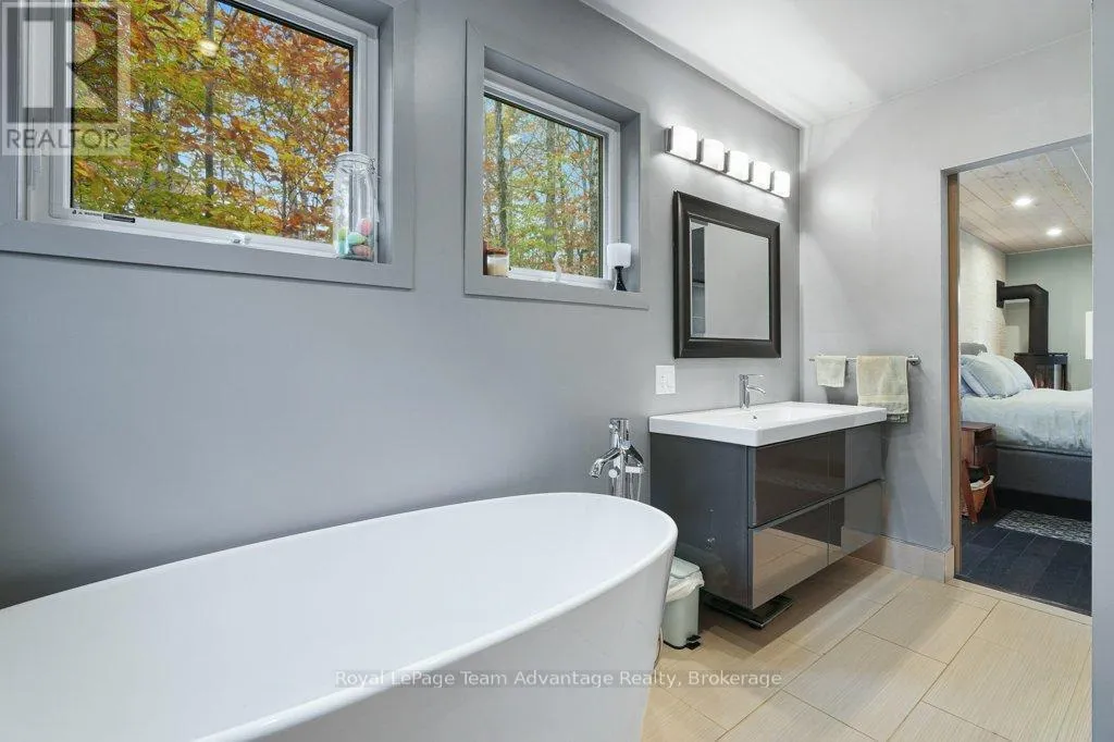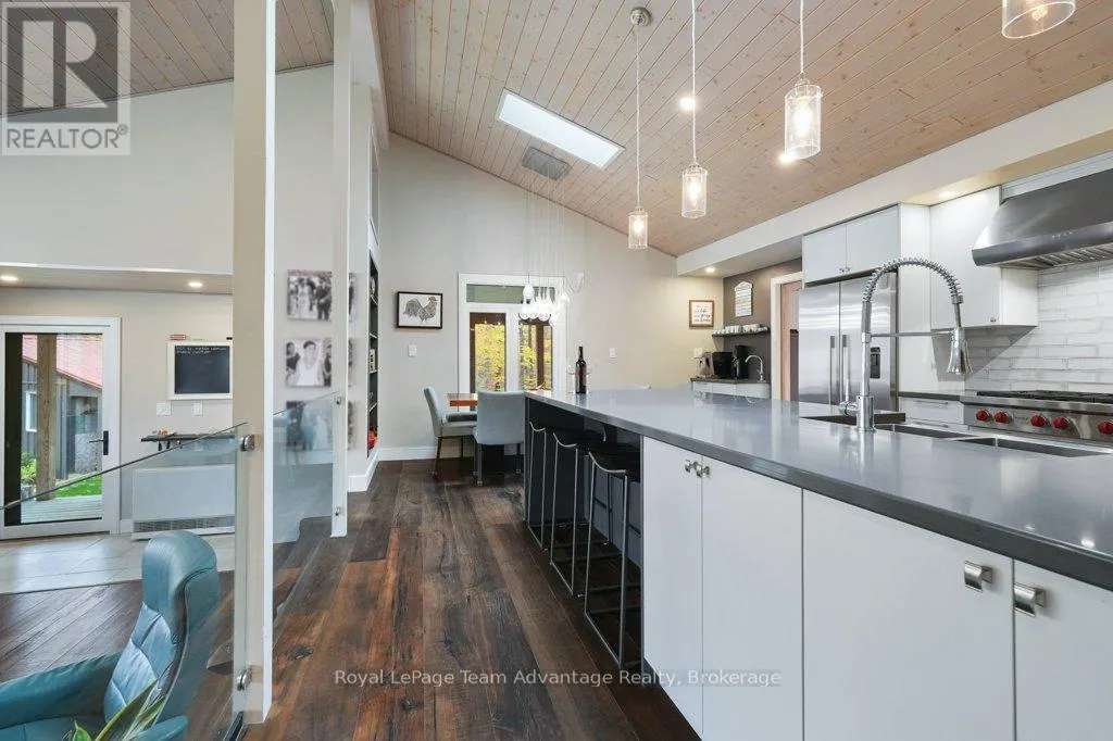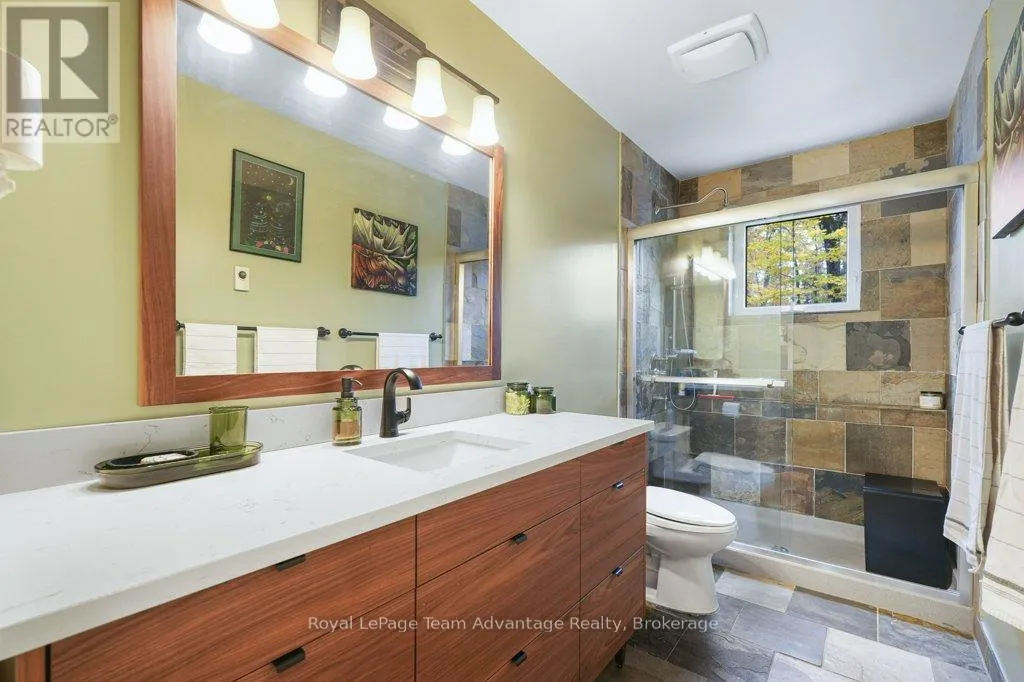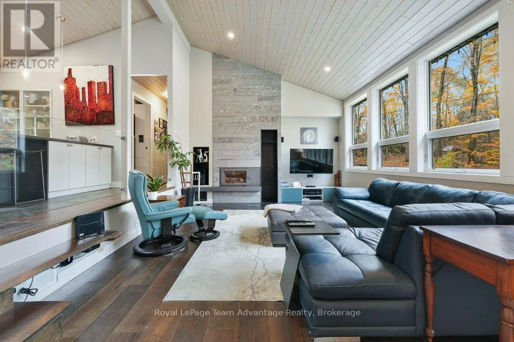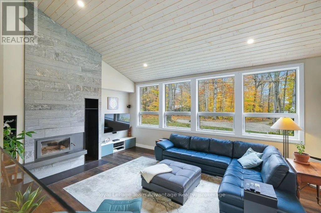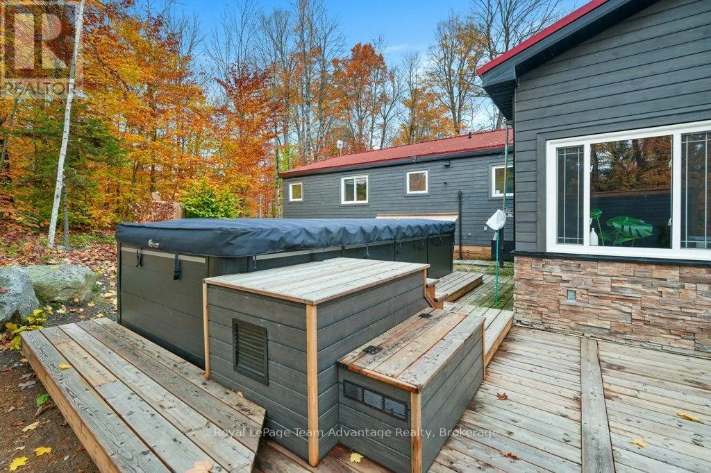 Cross Streets: Bon Echo Rd. ** Directions: Oastler Park Drive Right on James Bay Junction, right on Blue Lake Road, straight to Salmon Lake Road to Bon Echo Rd to Beechwood Lane to SOP. Welcome to your year-round home on beautiful Hooton Lake - a quiet, non-motorized lake perfect for peaceful living and time spent in nature. Set on 2.84 acres with 243 feet of shoreline this 3-bedroom, 2-bathroom property features a rare combination of privacy, comfort and lakeside charm. Built in 1990 and thoughtfully updated, the home features a chef-style kitchen with island ideal for entertaining and a sunken living room with a high efficiency wood burning fireplace. A cozy family/sunroom with propane fireplace, expansive windows and a walkout to the deck - creating an effortless indoor/outdoor area with covered area with infrared heaters, generous decking and a swim spa for year-round relaxation, exercise or just relax in the hot tub end of the spa. The landscaped grounds include your own private beach-perfect for morning swims, paddle boarding or soaking up the sun. A Generac generator adds peace of mind, while a detached garage & bunkie add plenty of space for toys, gear and guests. Ideal for family living or weekend escapes. Whether you're enjoying quiet mornings by the lake, hosting friends on the deck or unwinding in the swim spa this Hooton Lake home delivers comfort, nature and four-season enjoyment. Located in Seguin close to Parry Sound and all amenities. Home is calling, it's ready for you to settle in and start making memories. (id:27476)