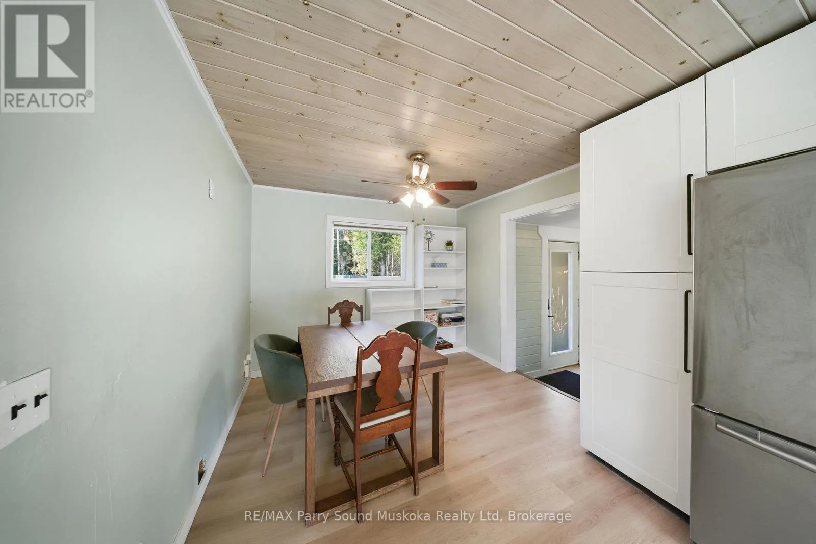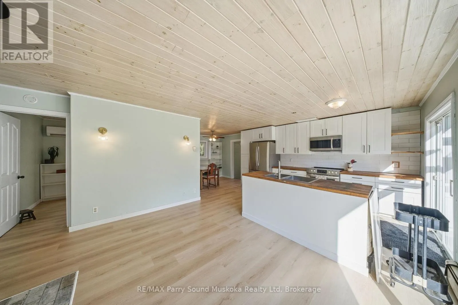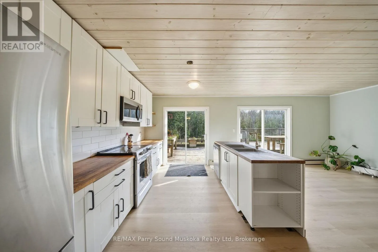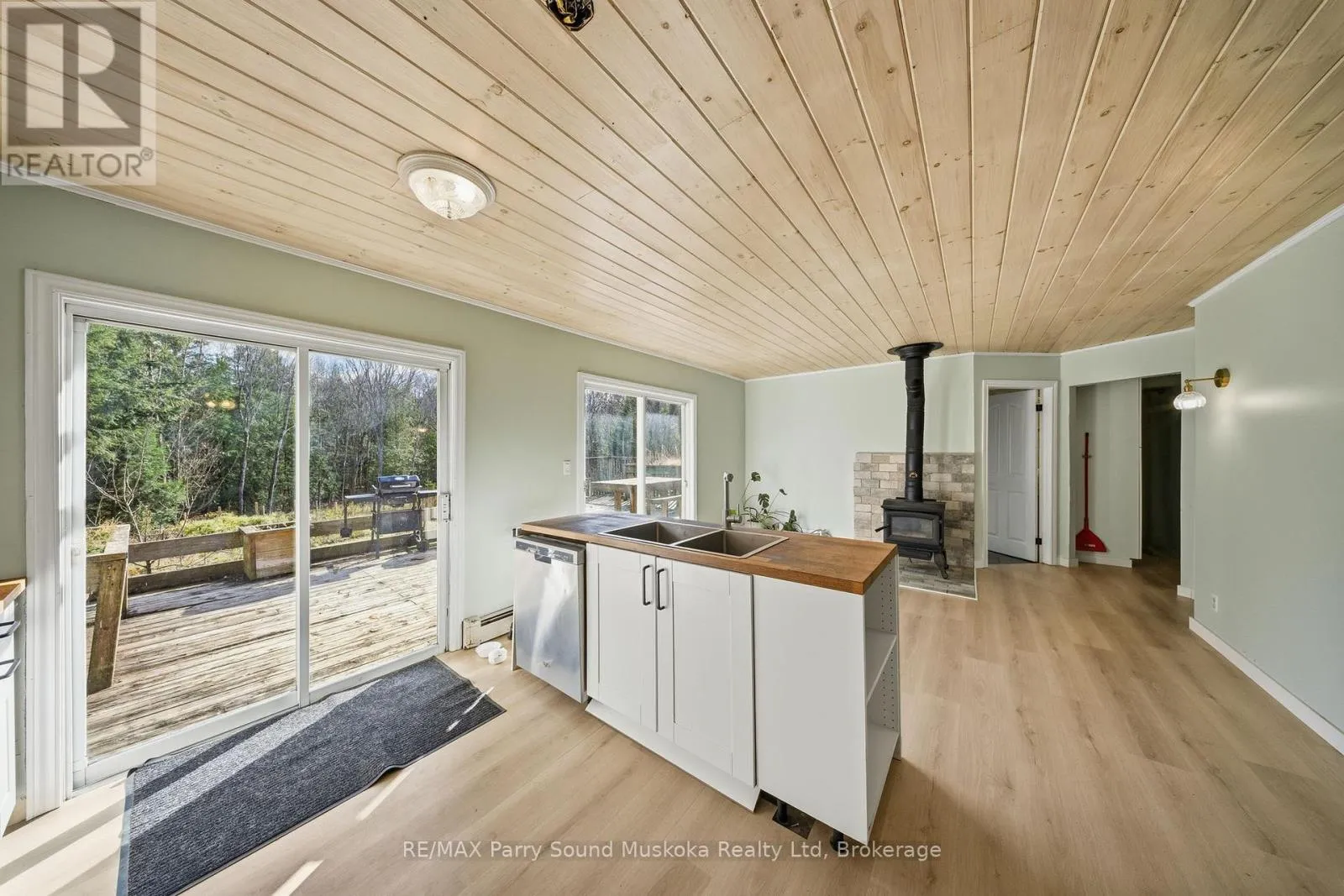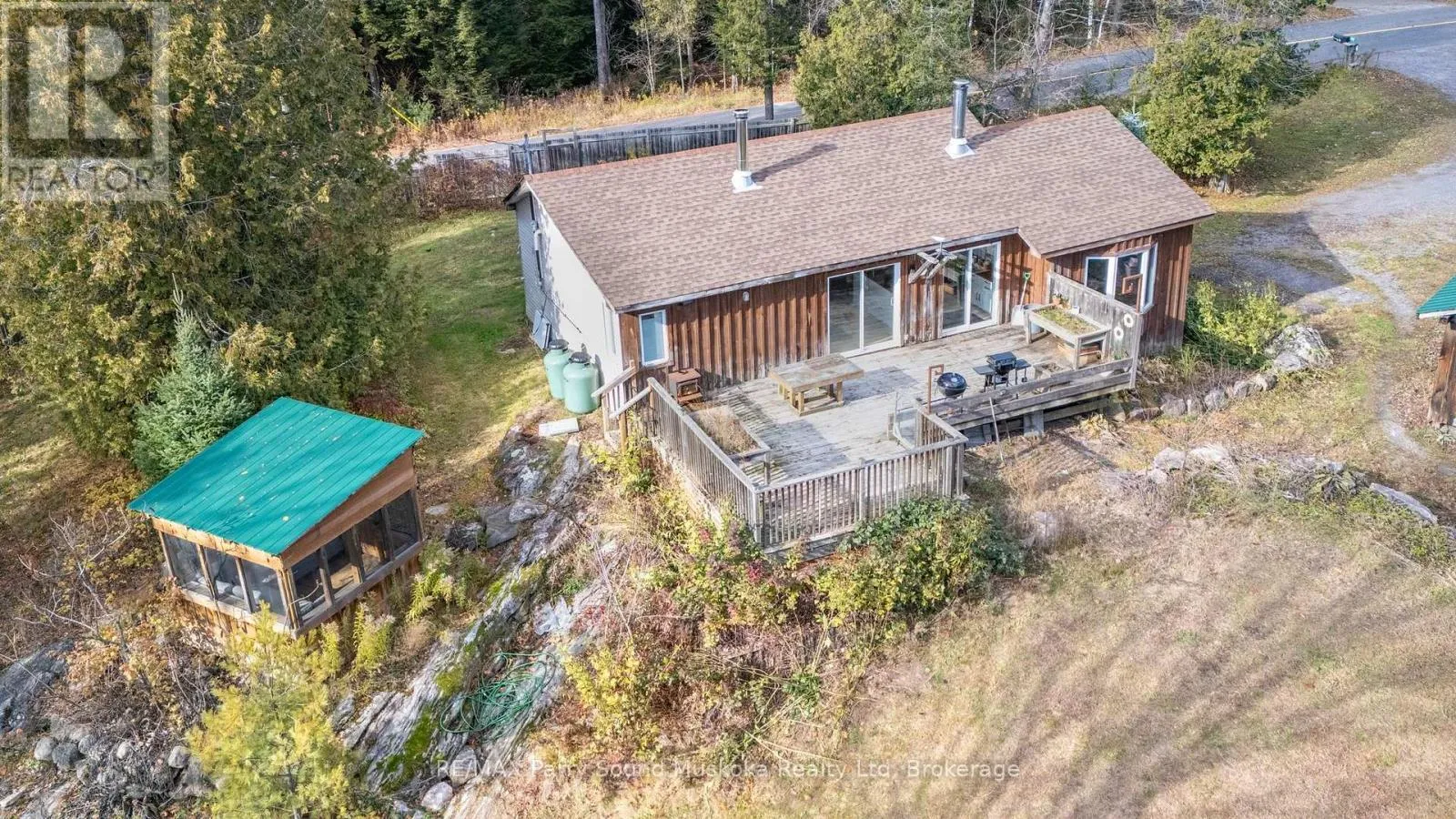 Cross Streets: Clear Lake Road. ** Directions: Highway 400 to Lake Joseph Road to Clear Lake Road to SOP. Tucked away on a quiet, municipally maintained road, this charming 2-bedroom, 1-bathroom home offers the perfect balance of comfort, efficiency, and country charm. Enjoy your own private setting on 8.74 acres of peaceful, year-round living, complete with your own private trails, workshops, garden sheds, and plenty of space to start your very own hobby farm. The home has seen several thoughtful upgrades, including a brand-new kitchen (2024), new flooring throughout (2024), a new roof (2019), and a new roof on the 32' x 15' workshop (2018). The bathroom features in-floor heating, while a wood stove provides cozy warmth through the colder months. Additional heating and cooling options include baseboard heaters and a ductless heat pump/AC unit for year-round comfort. Step outside to enjoy your expansive property-take a walk along the trails, relax on the back deck, or gather in the screened-in gazebo overlooking the beautifully maintained yard. For hobbyists or those running a small business, the large 32' x 15' workshop and 20' x 10' (approx.) garden shed offer excellent storage and workspace options. Located less than 2 minutes from the Lake Joseph Boat Launch & Rocky Crest Golf Course, this property is a true blend of privacy, practicality, and modern updates! (id:27476)