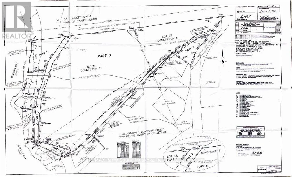 Cross Streets: ROSE POINT RD TO RONCASTER LANE. LAND IS ALL TO THE NORTH. TAKE TO END PAST #32 TO GET TO WATERFRONT. TRAIL TO THE RIGHT OF #23'S PARKING SPOTS. You can also park at the Township line on Rose Point Rd at the Plow turnaround &walk towards the Bay. ** Directions: ROSE POINT RD TO RONCASTER LANE. LAND IS ALL TO THE NORTH. TAKE TO END PAST #32 TO GET TO WATERFRONT. TRAIL TO THE RIGHT OF #23'S PARKING SPOTS. You can also park at the Township line on Rose Point Rd at the Plow turnaround &walk towards the Bay. Rare Development Opportunity in the Harbour of Parry SoundWith Georgian Bay waterfront land in the Harbour becoming increasingly scarce, this exceptional 15-acre parcel offers a prime opportunity. Located just south of Sound Boat Works marina, the property features approximately 535 ft of clean, gradual gravel shoreline-perfect for a variety of waterfront visions.Stretching from the Seguin Township/Parry Sound border along Rose Point Rd to Roncaster Lane, the land offers excellent elevation, abundant sunshine, and sweeping western views that showcase iconic Georgian Bay sunsets. Full access is available from the north side of Roncaster Lane, with additional access points along Rose Point Rd, presenting flexible options for potential road development.An untouched natural landscape, ready for future possibilities-be sure to take in the aerial perspective through the accompanying video to truly appreciate the scope and beauty of this property. (id:27476)