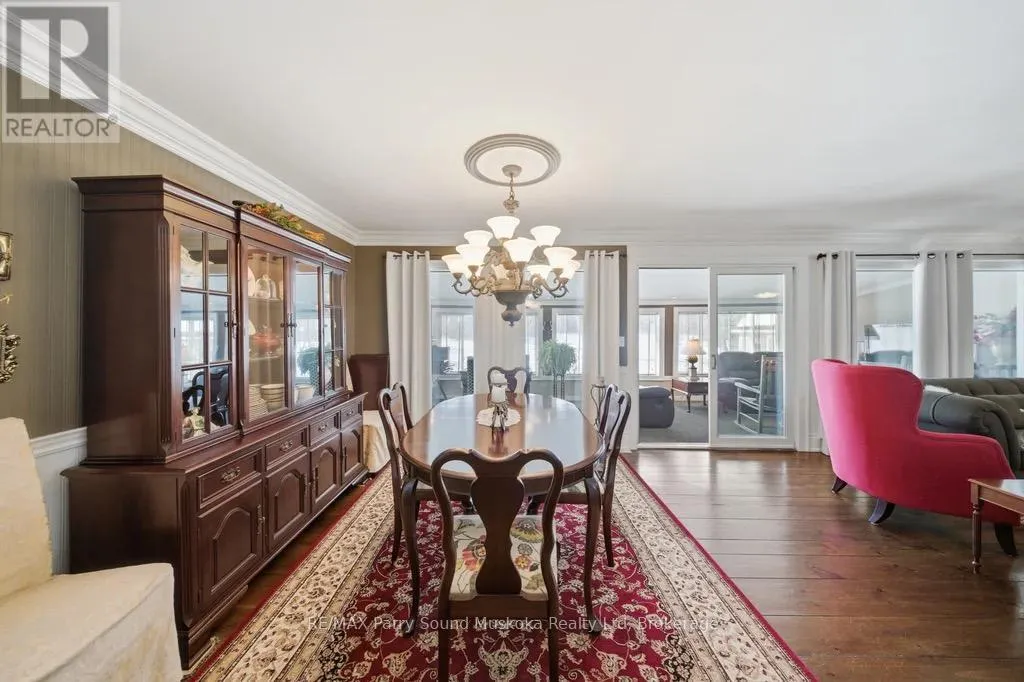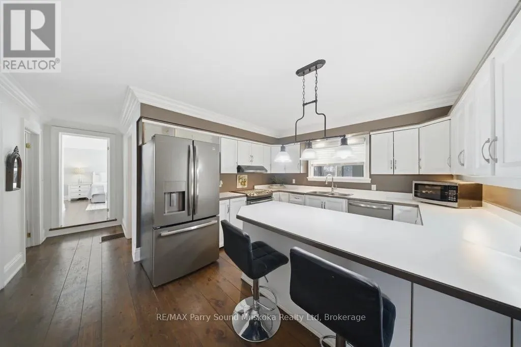 Cross Streets: Hwy 141 and Maple St. ** Directions: Follow Hwy 400 N to ON-141 E in Seguin. Take exit 207 from Hwy 400 N/Trans-Canada Hwy. Follow ON-141 E to Maple St in Rosseau. Muskoka's 3 big lakes can be yours to enjoy as your personal playground-w/out the price tag attached to big-lake waterfront. Beautifully & very well-maintained 3-bedroom, 2-bathroom bungalow sits on the tranquil Shadow River & w/ a good arm, just a baseball throw away & direct access into Lake Rosseau Lake Muskoka & Lake Joseph. Known for crystal, clear waters & most pristine. This interconnected system offers seemingly endless boating, fishing, swimming, waterfront dining & miles of open water to explore. Shadow River itself provides calm paddling, scenic shoreline & an easy route leading right into Lake Rosseau w/ your motor boat. Gentle access to the waterfront/west-facing sunset exposure, soft-bottom entry & deep water at the docking (approx12 to 14 feet). Single door garage that comfortably fits two cars plus workshop .The home is meticulously cared for w/ hardwood flooring, custom lighting & a spacious primary bedroom featuring an expansive view w/walkout, walk-in closet & ensuite bathroom & soaker tub. 2 additional bedrooms offer generous space & ample closets .Full length wall of picture windows provides unobstructed views of the peaceful waterfront setting, while a four-season sunroom adds additional bright & inviting living space. Newer windows, main-floor laundry, grand entryway w/ excellent closet storage. High-quality finishes & custom lighting. Drilled well, newer propane furnace. Plenty of parking. Wood fireplace. Beautifully landscaped grounds w/gardens & a stone pathway. Take your boat into town or enjoy an easy walk to the charming village of Rosseau offering boutique shops, a convenience store, restaurant, a public beach, & a boat launch. From your doorstep, enjoy all season activities, explore local towns, dining by boat & soaking in the natural beauty that makes the region famous. You'll feel removed from the busyness of everyday life while being perfectly situated near everything that matters .Click on the media arrow for video & 3-D imaging. (id:27476)