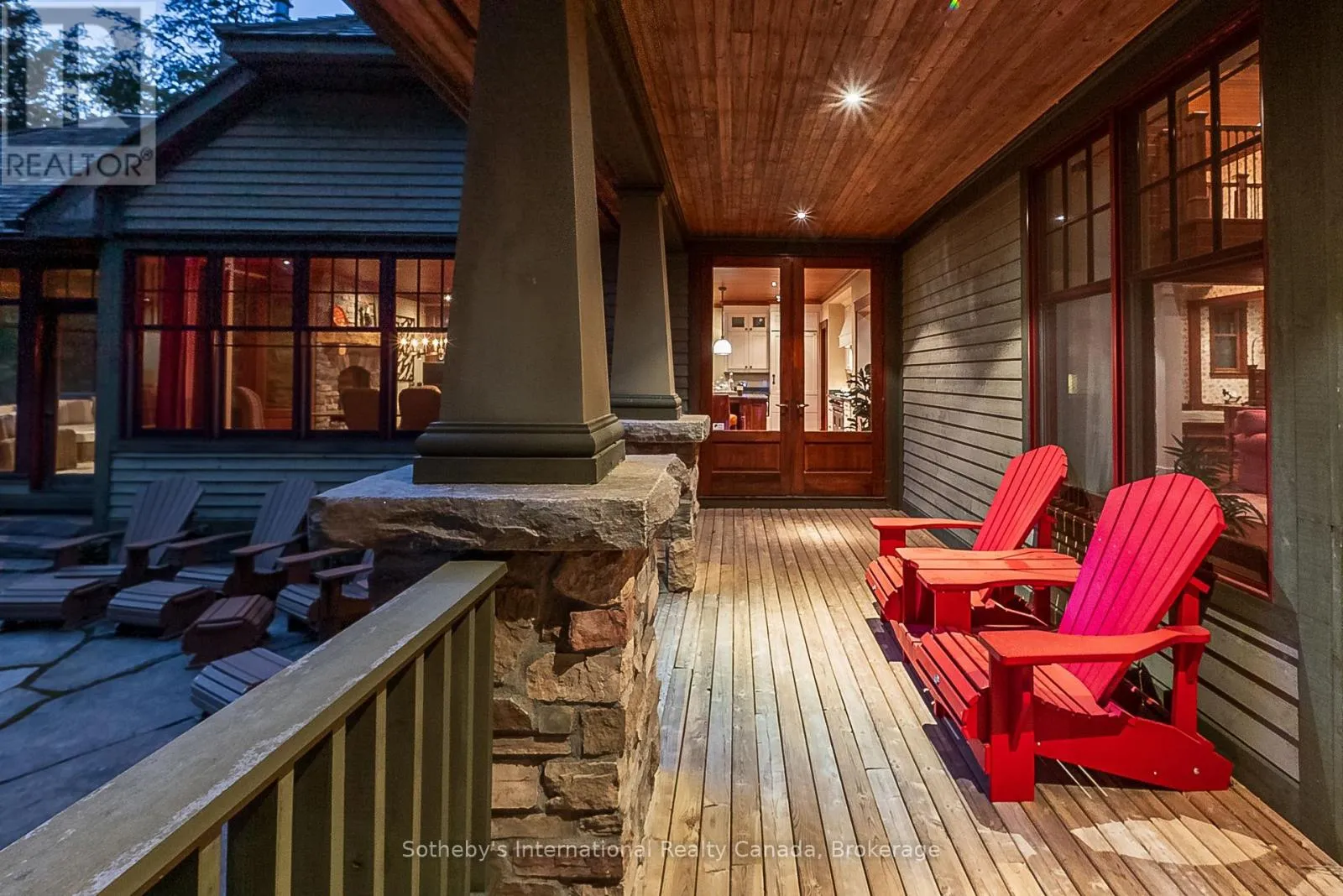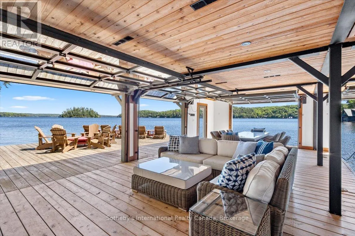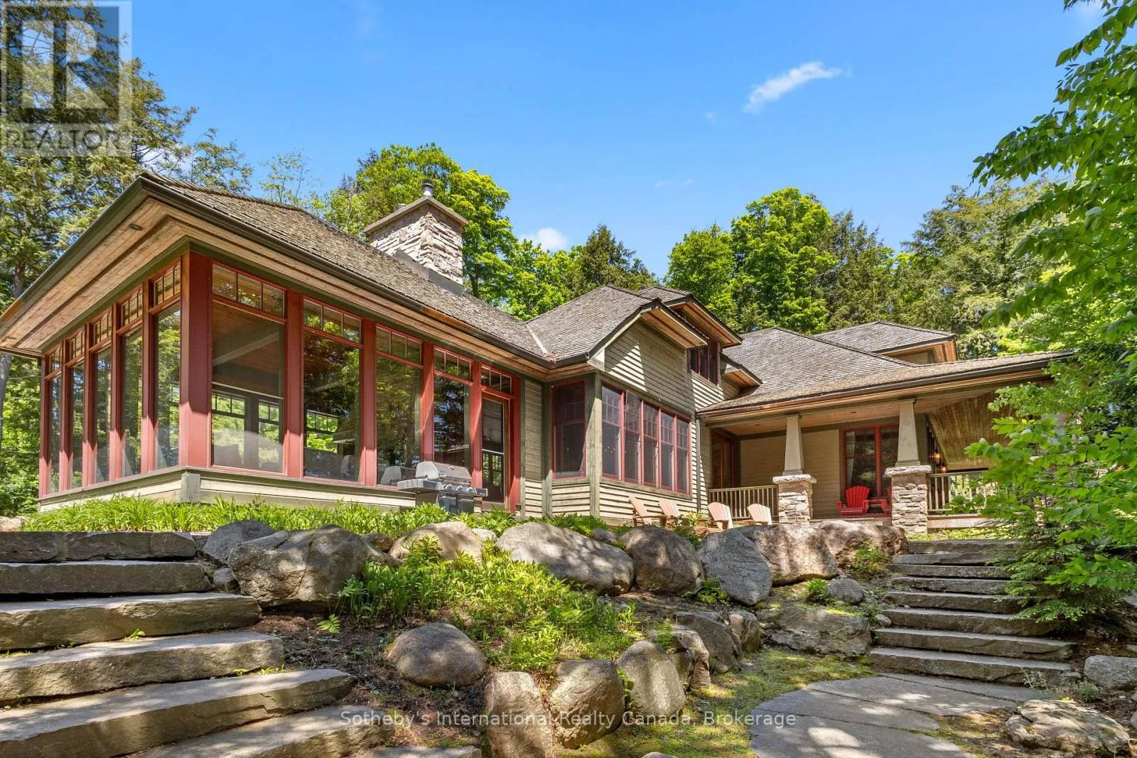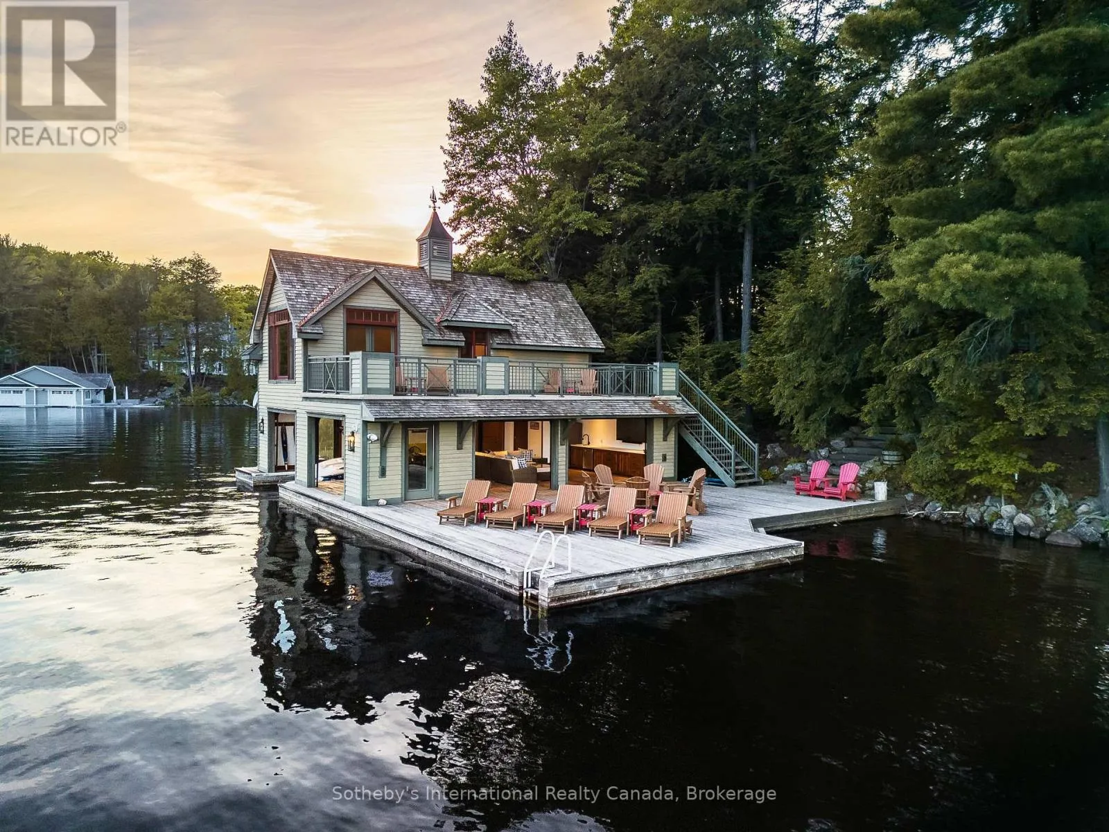 Cross Streets: Maplehurst to Ditchburn. ** Directions: ON-141 E, Right ON-632S, Left Maplehurst Rd, Right Little Morgan Bay, Straight on Winchester Dr, Left on Ditchburn. On the coveted shores of Lake Rosseau in Stormy Point, this exceptional waterfront property presents a rare opportunity within one of Muskoka's most exclusive enclaves. Spanning over 2 acres with 433 ft of southwest-facing shoreline, the setting is defined by granite, mature pines, and sweeping sunset views. A sense of arrival is immediate. Upon entry, a dramatic great room unfolds, where vaulted ceilings and expansive windows frame the lake. A striking stone fireplace anchors the space, naturally drawing family and guests together. Flowing from this central space, the adjoining kitchen offers both scale and comfort, with generous prep space, a dining area, and a sitting area centred around its own fireplace. A butler's pantry supports effortless entertaining, while doors from both the kitchen and the great room extend the living area to the porch. Just beyond, the Muskoka room continues the living space, featuring a fireplace and built-in BBQ-an inviting setting for effortless, year-round entertaining. Privately positioned on the main level, the primary suite occupies its own wing with a walk-in closet, ensuite, and direct access to the porch. Above, four additional bedrooms include a guest suite with its own ensuite and a second primary bedroom, offering comfort and flexibility for family and guests. Days unfold effortlessly at the water, swimming, boating across Lake Rosseau, and watching the sun set over the shoreline. A two-storey boathouse extends the experience, offering a private retreat for guests with 1-bedroom, 1-bathroom living accommodations above and an additional bathroom on the main level, perfect for enjoying long afternoons on the upper deck or relaxed days at the dock. There is a quiet ease to life here-morning coffee on the porch, afternoons on the dock, and evenings gathered as the light fades across the lake. Defined by its setting, scale, and enduring appeal, this is a property to be held and enjoyed for generations. (id:27476)