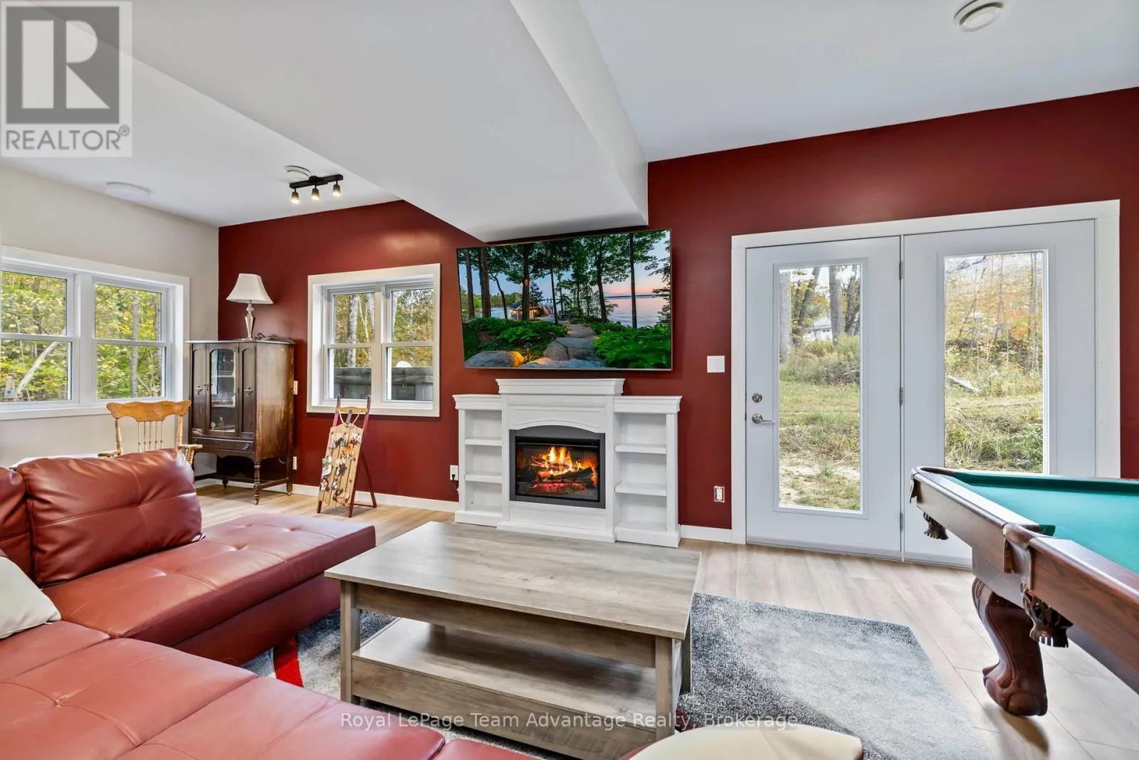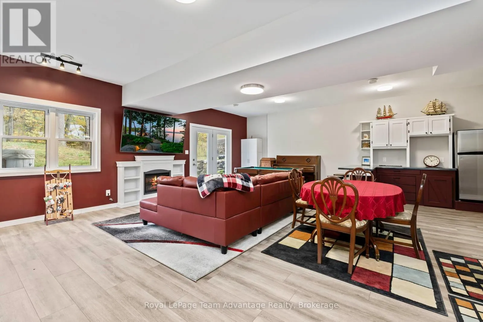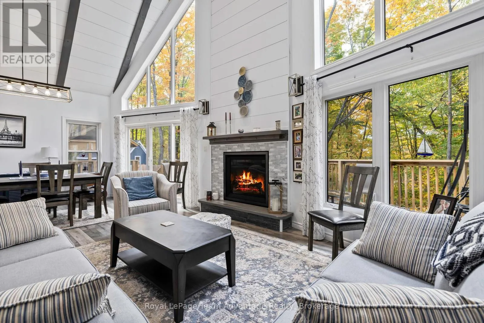 Cross Streets: Carter's Landing Road/ Hagerman Court. ** Directions: Highway 400 to Oastler Park Drive to James Bay Junction to Otter Lake Road to Carter's Landing Road to Hagerman Court. Step into serenity with this wonderful 4-year-old custom-built home nestled in one of Otter Lake's most coveted waterfront communities. Designed for year-round enjoyment this property offers the perfect blend of luxury, comfort and nature. This home has soaring cathedral ceilings and a dramatic floor-to-ceiling fireplace that anchors the open-concept main floor. The kitchen is adorned with gleaming granite countertops and stainless steel appliances. Step out through the dining room's walkout to a private deck that connects to a beautifully crafted gazebo perfect for morning coffee or sunset cocktails! The main level also features a spacious primary bedroom with a 4-piece ensuite w/in floor heating and a walk-in closet. Two additional bedrooms offer ample space for family and guests while three bathrooms ensure comfort and convenience for all. The lower level is a haven for relaxation and entertainment, complete with a stylish wet bar and walkout access to the side yard. This exclusive community offers deeded access to a private sandy beach and your own designated boat slip which is included in the modest $375 annual association fee. Carters Landing has approx. 600' of shoreline on Otter Lake enjoyed by this private community. The fee also covers insurance for all common areas ensuring peace of mind and a well-maintained environment. Otter Lake is spring-fed and renowned for its crystal-clear waters and miles of scenic boating. There is a nearby resort for a gourmet lakeside meal, every day here feels like a vacation. Located only 12 minutes to Parry Sound's shops, restaurants, hospital and only 2 hours from Toronto. Perfect for weekend escapes or full-time living! This home is more than a place to live, its a lifestyle. Whether you're seeking a peaceful retreat, a family-friendly haven or a luxurious base for lakeside adventures this property delivers it all. (id:27476)