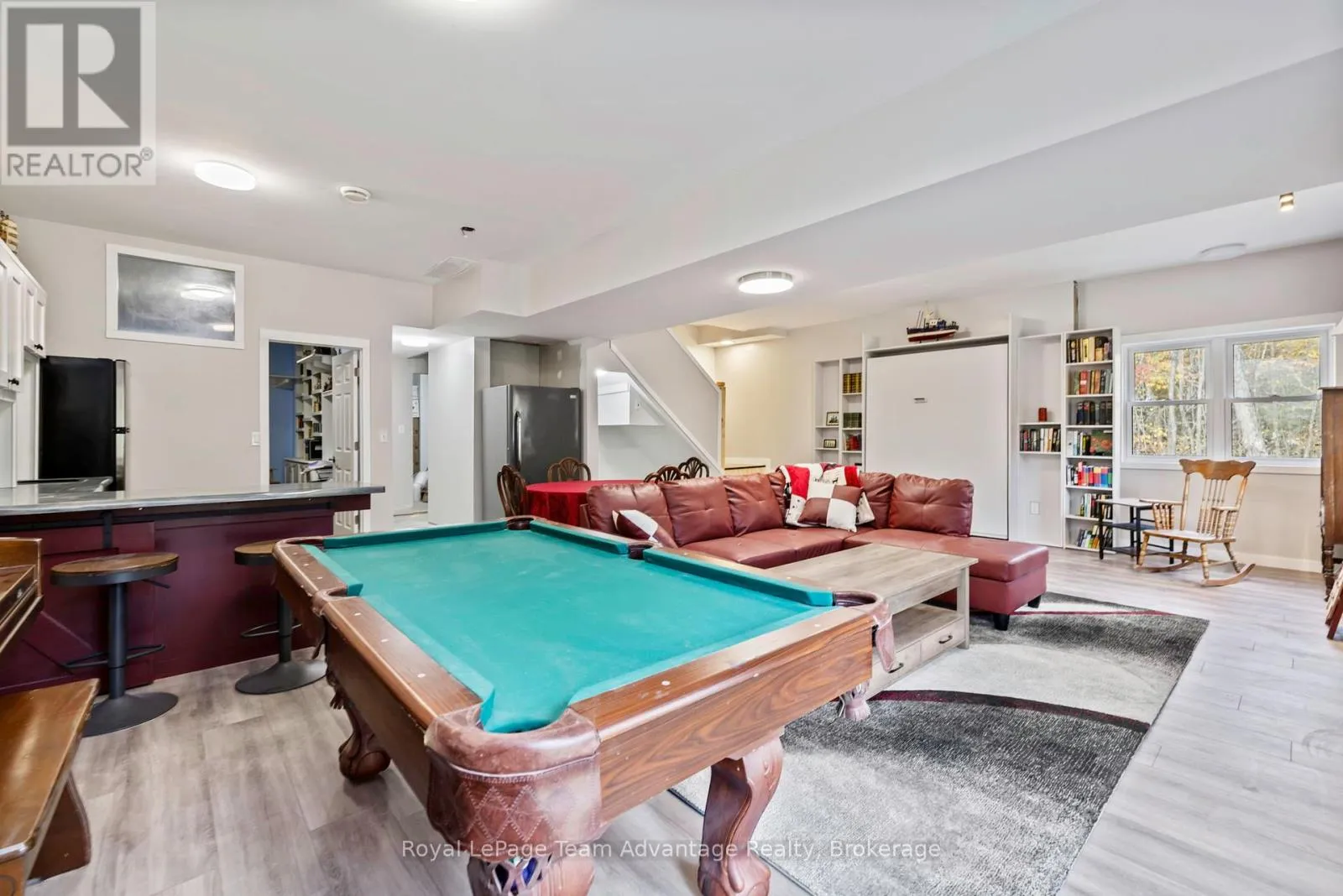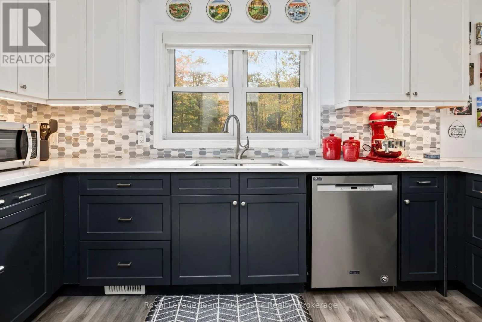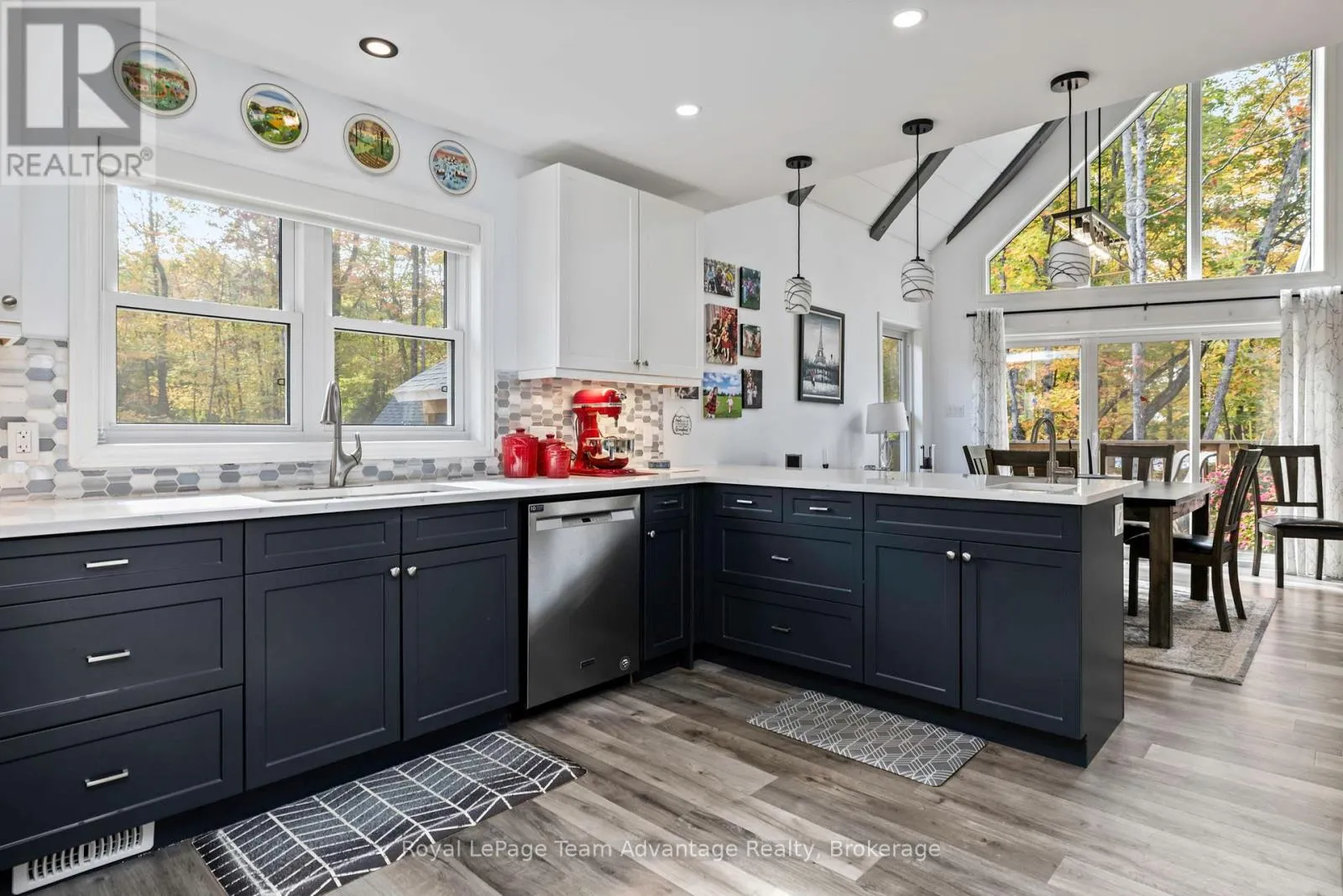 Cross Streets: Carter's Landing Road/ Hagerman Court. ** Directions: Highway 400 to Oastler Park Drive to James Bay Junction to Otter Lake Road to Carter's Landing Road to Hagerman Court. Step into serenity with this wonderful 4-year-old custom-built home nestled in one of Otter Lake's most coveted waterfront communities. Designed for year-round enjoyment this property offers the perfect blend of luxury, comfort and nature. This home has soaring cathedral ceilings and a dramatic floor-to-ceiling fireplace that anchors the open-concept main floor. The kitchen is adorned with gleaming granite countertops and stainless steel appliances. Step out through the dining room's walkout to a private deck that connects to a beautifully crafted gazebo perfect for morning coffee or sunset cocktails! The main level also features a spacious primary bedroom with a 4-piece ensuite w/in floor heating and a walk-in closet. Two additional bedrooms offer ample space for family and guests while three bathrooms ensure comfort and convenience for all. The lower level is a haven for relaxation and entertainment, complete with a stylish wet bar and walkout access to the side yard. This exclusive community offers deeded access to a private sandy beach and your own designated boat slip which is included in the modest $375 annual association fee. Carters Landing has approx. 600' of shoreline on Otter Lake enjoyed by this private community. The fee also covers insurance for all common areas ensuring peace of mind and a well-maintained environment. Otter Lake is spring-fed and renowned for its crystal-clear waters and miles of scenic boating. There is a nearby resort for a gourmet lakeside meal, every day here feels like a vacation. Located only 12 minutes to Parry Sound's shops, restaurants, hospital and only 2 hours from Toronto. Perfect for weekend escapes or full-time living! This home is more than a place to live, its a lifestyle. Whether you're seeking a peaceful retreat, a family-friendly haven or a luxurious base for lakeside adventures this property delivers it all. (id:27476)