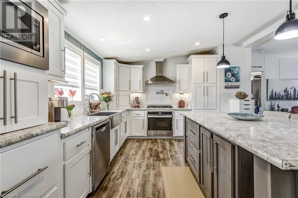 South on Cheapside to Murphy's Lane then north on Silver Aspen Dr Retirement, Investor, summer lake lifestyle!! Looking for a quiet, Year round, safe gated community with its own Marina? Then beautiful Sandusk Creek Properties Ltd is the answer. New Stable ownership in place. This recently built 3 Bedroom, 2 bath modified Biscane model home is loaded with extras and waiting for you to call it home. New paved driveway complete. Visually stunning home ready for entertaining both inside the open concept great room and massive custom kitchen and outside on oversized deck or under the covered front porch. Insulated garage perfect for car enthusiast or handy man. The Sandusk Creek Properties Ltd gated community is on the shores of Sandusk Creek leading to Lake Erie, complete with inground pool, dog park and Rec Center. Marina docks are available for an extra fee. The area boasts great year round fishing both professional charters and tours available in the area. A short drive from Port Dover restaurants and entertainment. 60 day closing is possible, arrange your private viewings soon as this one has to sell soon!!! (id:27476)