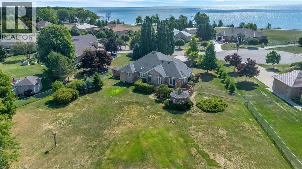 LAKESHORE RD. TO SWEETS CORNERS RD TO FEATHERSTONE AVE. This beautiful, custom-built estate bungalow sits on a breathtaking 1.48-acre lot, offering stunning views that make it ideal for those seeking a peaceful lakefront lifestyle. With six bedrooms and four bathrooms, this spacious home is perfect for families or extended family gatherings. The property features a unique pie-shaped lot with views of farm fields to the rear and Lake Erie in the front. You also have convenient access to the lake from the neighbourhood walkway just steps from your front door. On the main level, you'll find an eat-in kitchen, a separate formal dining area, and an open-concept living room complete with a gas fireplace. This level also includes a laundry room with direct access to the two-car garage. The primary suite boasts a luxurious 5-piece en-suite bathroom, a walk-in closet, and large windows that flood the space with natural light. The lower level offers additional living space, including three bedrooms, one full bathroom, and a large den equipped with a negotiable pool table. Thereâs also a separate entertainment room. This lower level could easily accommodate a second kitchen, perfect for creating an in-law suite. Discover the convenience of a separate garage and workshop at the rear of the property, complete with a drive-in garage door and electrical service. This outstanding property also boasts a reliable backup natural gas fueled generator, ensuring you never miss a beat during power outages. Experience peace of mind and versatility all in one place! Experience the joy of full-time cottage living in this fantastic lakeside home! (id:27476)