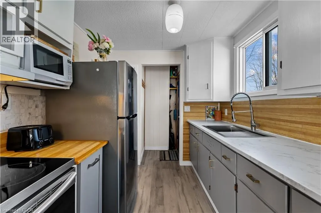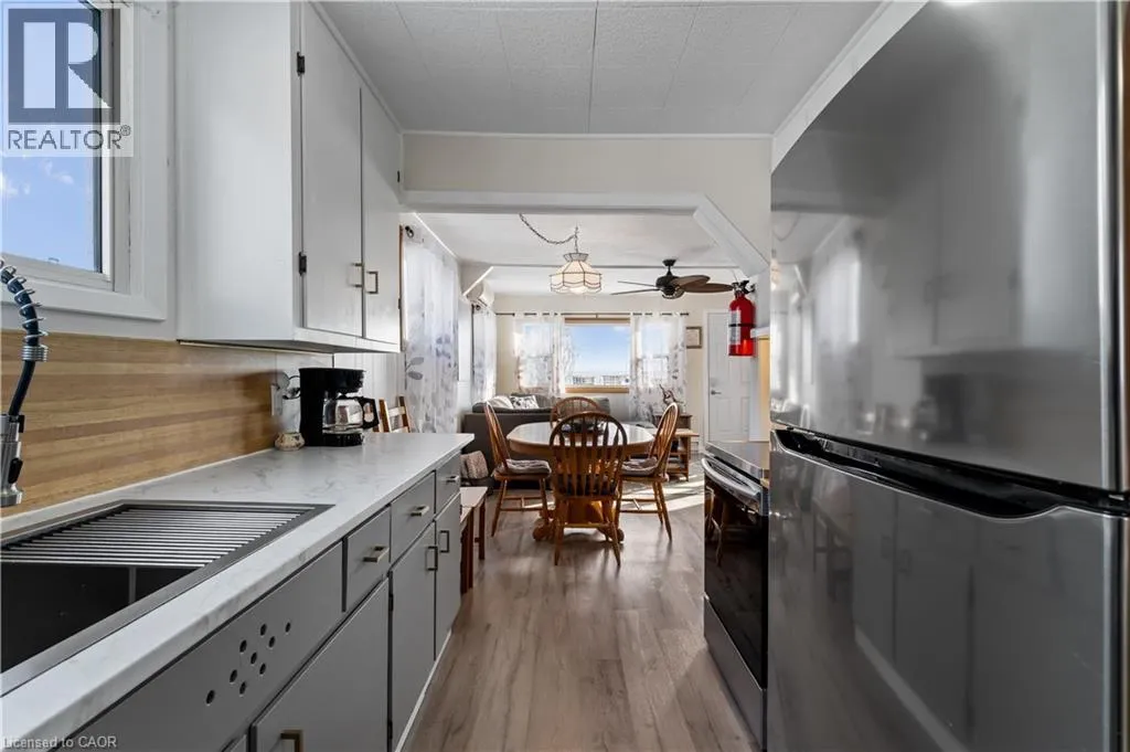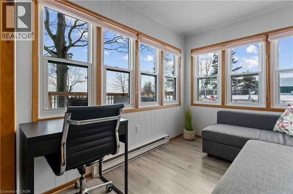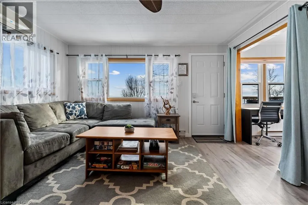 Highway #3, travel south on Kohler Rd. cross over Rainham Rd. Turn LEFT ON Lakeshore Rd. Listing on the Left & Lakeside. Welcome Home to Lake Erie's affordably priced, 3-season cottage, featuring a side door leading to a freshened galley kitchen, open concept living room/dining room, 3 bedrooms, a 3 pc-bath (2024), in-suite laundry (washer/dryer 2024), updated vinyl flooring (2024), expanded front porch (2024). A Lake facing sunroom/living room to watch the beautiful morning sunrise or picturesque sunset...OR choose to admire it from your own, private lake side deck with private beach access and break wall to enjoy quiet moments by the waters edge or your favorite sporting adventures! The large fenced in rear yard is perfect for children/pets to enjoy around the fire pit, and also 3 outdoor sheds for storing lake toys, gardening supplies or perhaps a workshop? PLUS, new front door (2024), metal roof (2018), efficient ductless mini-split heat/cool HVAC system, 2000 g cistern, 2000 septic holding tank. Quick @ 1 hr commute from Hamilton's #403, QEW/Linc and close to amenities from Dunnville, Cayuga to Port Dover. Everything you need, all in one place! Your paradise awaits! (id:27476)