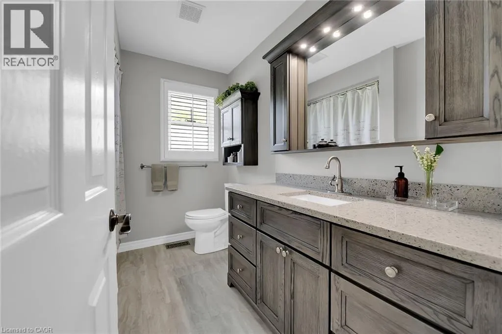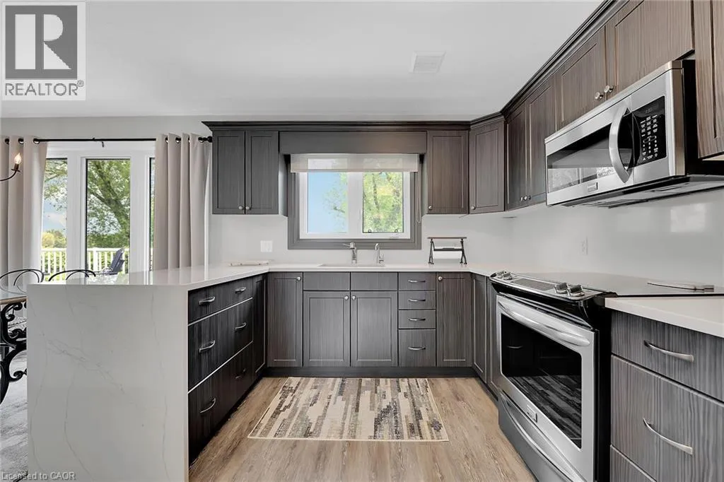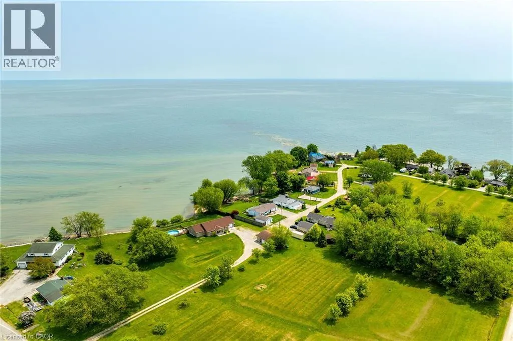 Off Lakeshore Road between Haldimand Road 12 and Erie St South Lake Erie Living at itâs finest! This year-round lake-house/cottage offers nearly 2000 sqft of living space with 3 bedrooms and a finished lower level. It is located on a premium ½ acre waterfront lot on Hooverâs Point Lane, featuring panoramic views and a private beach with about 100 ft of sandy shoreline extending into the clear waters of Lake Erie. The house sits on high ground with a gradual slope to the beach, no break-wall needed. The property includes a paved driveway for 4 vehicles and an RV/boat, interlock brick walkways, privacy fenced yard, mature trees, manicured lawn, vibrant gardens, and extraordinary landscape. There is also an attached garage with inside entry and a detached boathouse/workshop. Inside, the custom kitchen has attractive cabinetry, elegant quartz countertops, and hi-end stainless steel appliances. The open concept dining and living room offer large windows with lake views and garden doors leading to a composite deck overlooking the lake offering stunning sunrises as you enjoy your morning coffee. The main floor includes a foyer with laundry and a dishwasher, a designer 4pc bathroom, primary and guest bedrooms, both with custom closets. The finished basement has a 3rd bedroom/home office, family room with gas fireplace, storage room, and utility room with shelving and plenty of storage space. Additional features include a metal roof, updated windows and exterior doors, luxury vinyl plank flooring, 200-amp hydro, central-air, hi- efficiency furnace, electronic air cleaner, full Aerobic septic system, two 5000-gallon cisterns, and Starlink internet. Must view to appreciate the detail, quality finishes, & overall âfeelâ of this lovingly maintained home. Located minutes to Selkirk, Fisherville, and Port Dover, with a public boat launch about 1 km away. Convenient commutes to Dunnville or Cayuga, and 1-2hr drives from Hamilton, Niagara, or Toronto. Ideal for a home, cottage, or for those looking to retire in style! (id:27476)