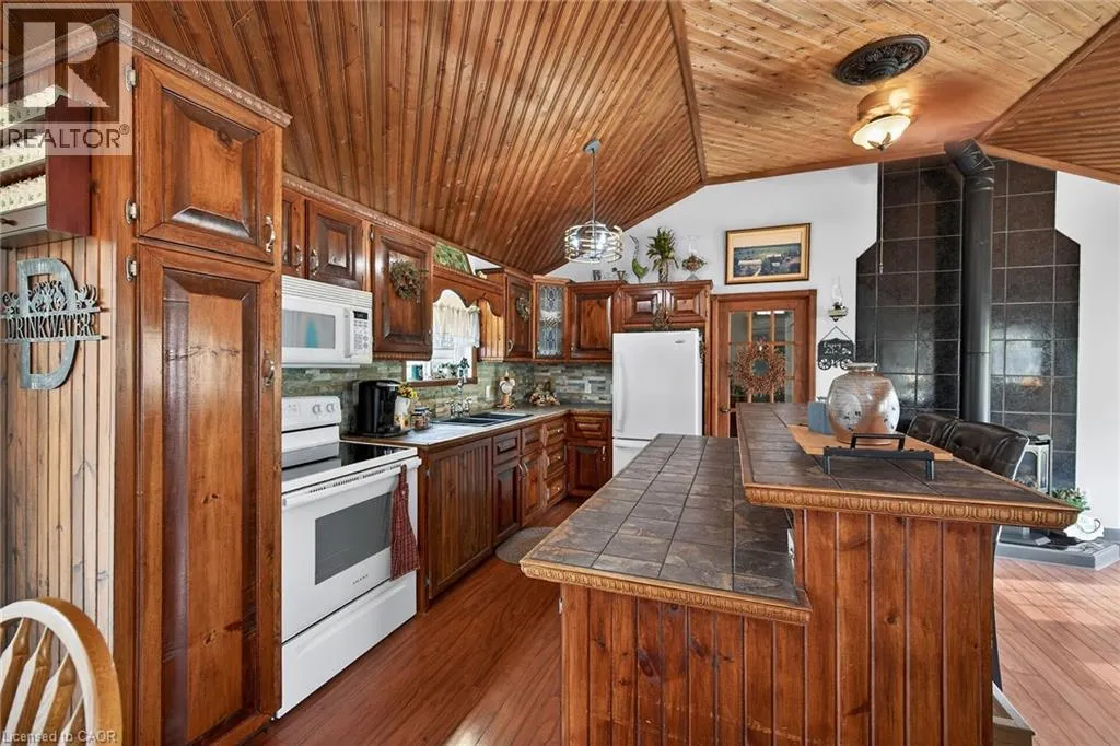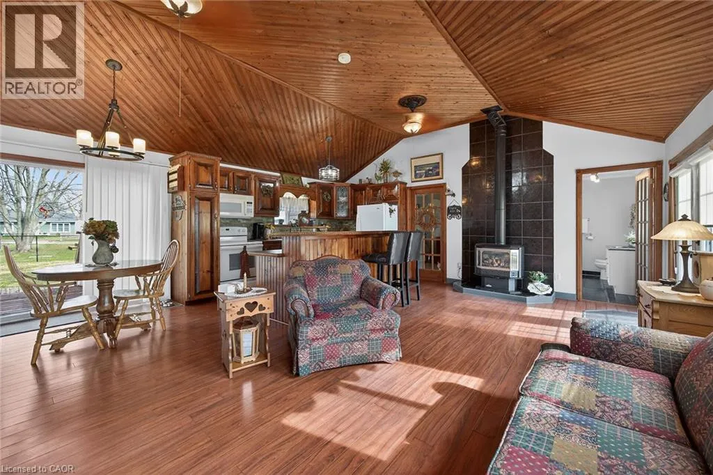 ERIE STREET S TO BLUE WATER PARKWAY Welcome to 277 Bluewater Parkway! A stunning, beautifully updated Bungalow with partial Lakeviewâs situated on sought after 100â x 100â lot. Great curb appeal with vinyl sided exterior, circular driveway with ample parking, expansive deck with gazebo area which makes it the perfect entertaining spot, fire pit, & oversized shed providing ample storage. The flowing, open concept interior layout features valuated ceilings throughout, eat in kitchen with updated cabinetry, raised breakfast bar & stylish backsplash, dining area with patio door walk out to back deck, spacious living room with freestanding gas fireplace, large primary bedroom, & 4 pc bathroom with granite countertops & stacker washer / dryer combo. Extensively updated in 2010. Minutes to beaches, Selkirk Provincial Park & local amenities, Hooverâs Marina, & Port Dover. Rarely do turn key â move in ready properties come available in the price range. Ideal for the first time Buyer, those looking to downsize, or perfect cottage retreat. Experience the Lake Lifestyle! (id:27476)