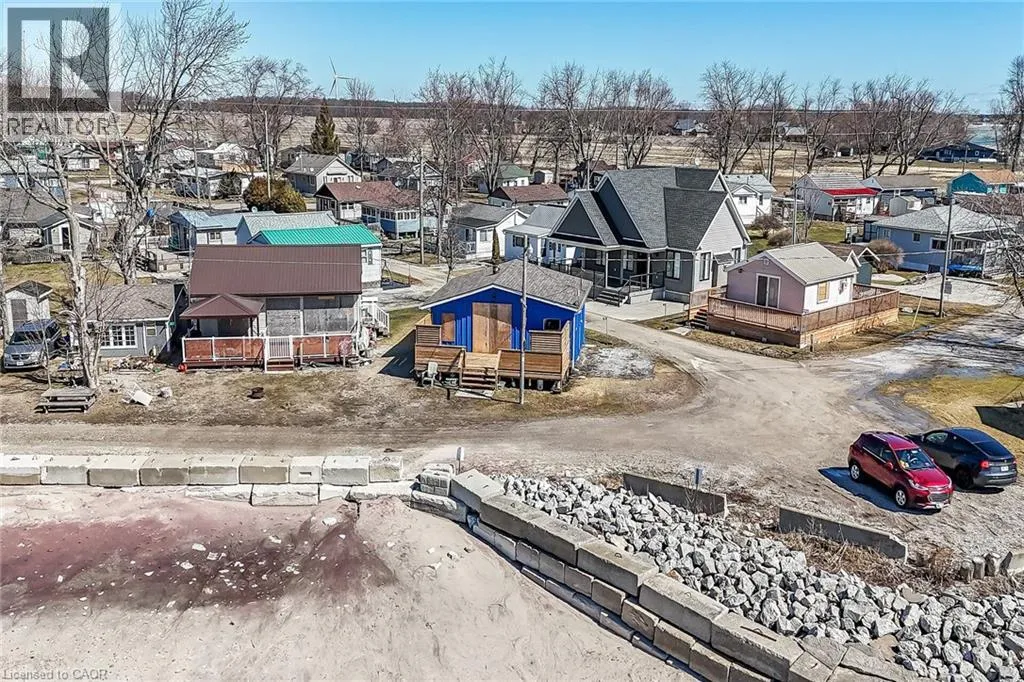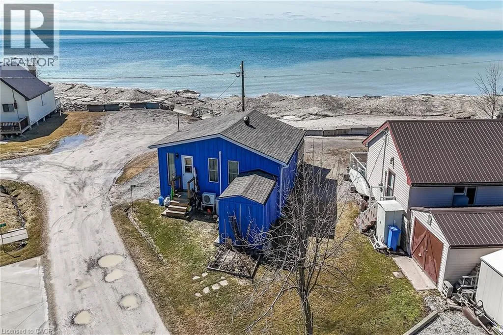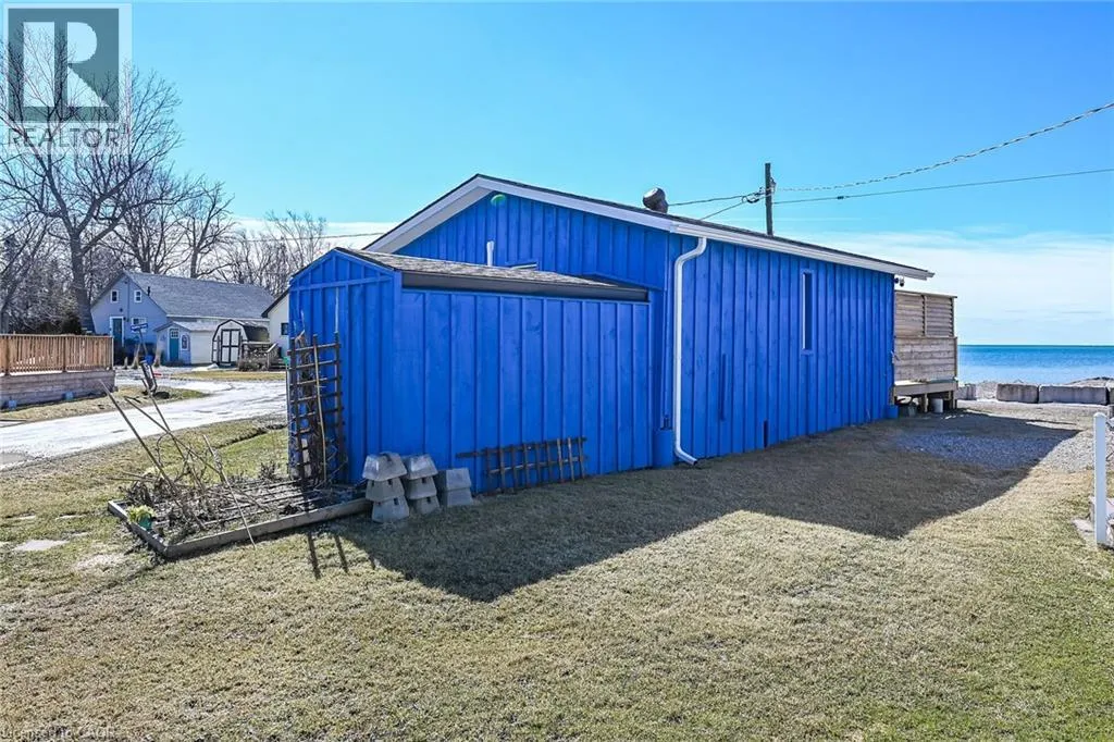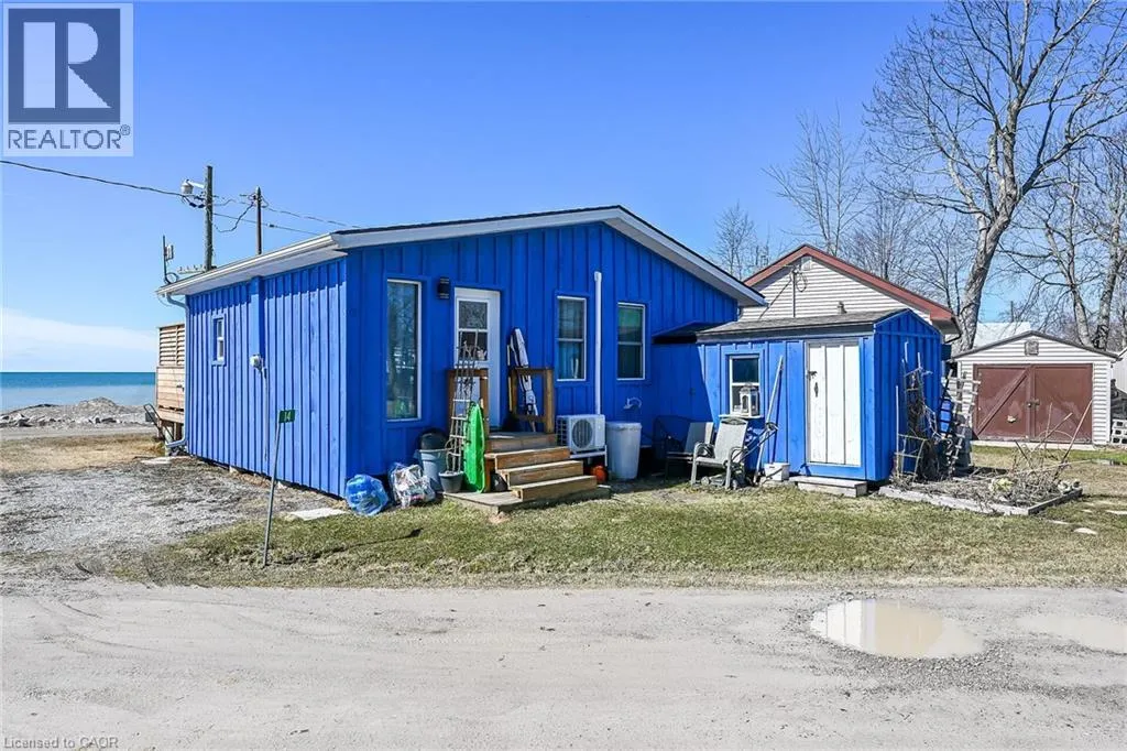 Possibly the best priced waterfront property available in Niagaraâs Golden Horseshoe. Features an extensively renovated, from the âstuds-outâ in 2023, beautiful presented cottage located in Featherstone Park - a privately owned park home to over 100 cottages bordering the banks of Lake Erieâs Golden South Coast. Relaxing 50-55 min commute to Hamilton, Brantford & Hwy 403 - 20 mins west of Dunnvilleâs amenities - similar distance east of Port Doverâs popular attractions - near the sea-side village of Selkirk. This Erie Treasure is positioned perfectly on large leased land lot at end of quiet Pike Lane enjoying breathtaking, panoramic water views from the the cottageâs oversized windows & new 260sf treated wood deck-2025 - literally just a few steps to gorgeous private sand beach situated directly in front of property. Introduces 600sf of open concept living area showcasing brilliant white kitchen - leads to bright & airy living room/dining room combination segues to open style primary bedroom - continues to multi-purpose room (possible bedroom), storage room & side entry foyer - completed with 3pc bath. Stylish vaulted ceilings & garden door deck walk-out compliment the modern decor with nautical flair. Attached versatile shed houses laundry facilities. Professional 2023 upgrades & improvements include - new Atlantic Blue board & baton wood exterior siding, roof shingles, windows, flooring, 100 amp electrical, plumbing, insulation, drywall, kitchen/bath cabinetry, light/plumbing fixtures. Extras - all appliances, concrete pier foundation, ductless mini-split heat/cool HVAC, 2000 gal water cistern & 2000 gal holding tank. Featherstone Park allows for 9 month occupancy (must vacate January/February/March) with annual lease of $4,400 includes property tax & use of play-park, volleyball court & 2 beaches. Affordable waterfront âMajestyâ (id:27476)