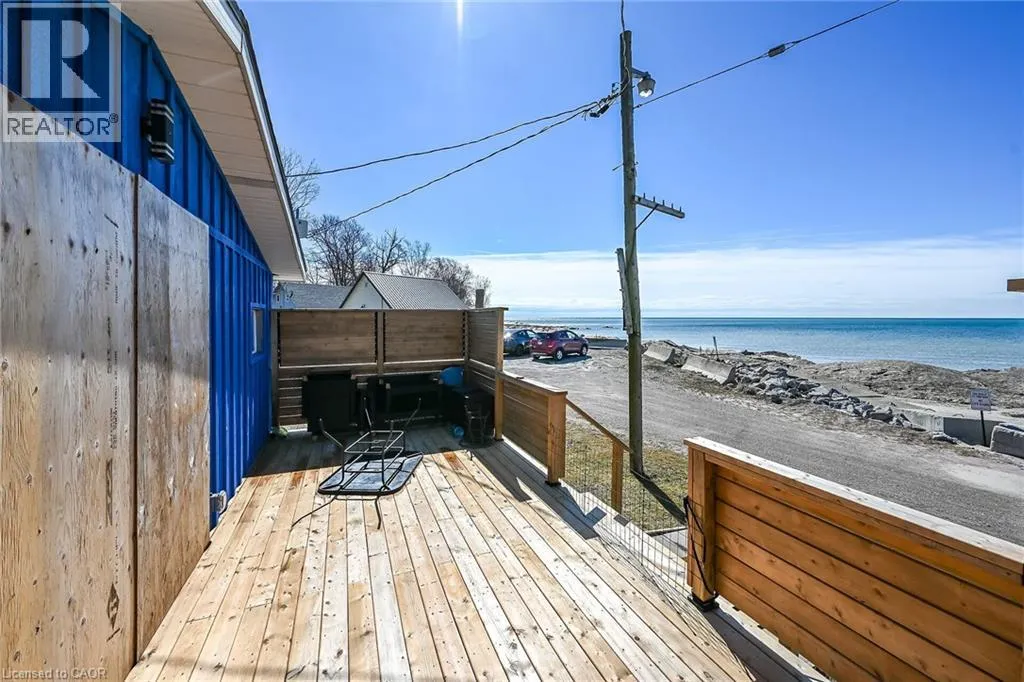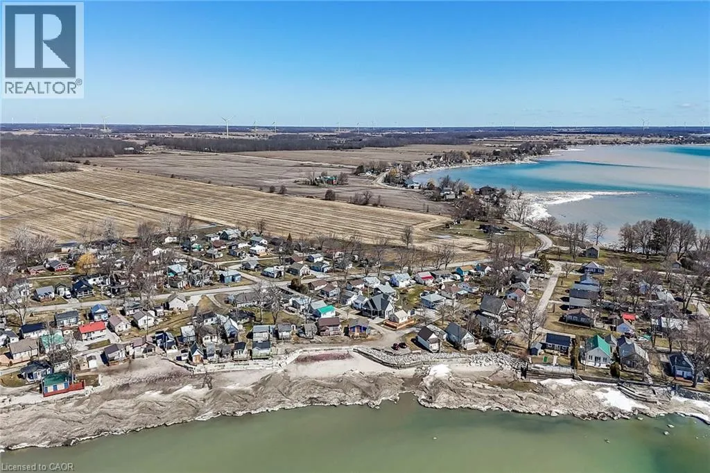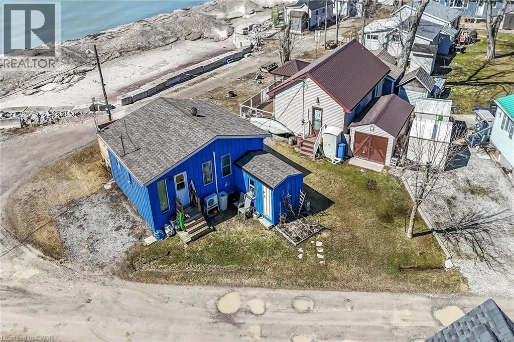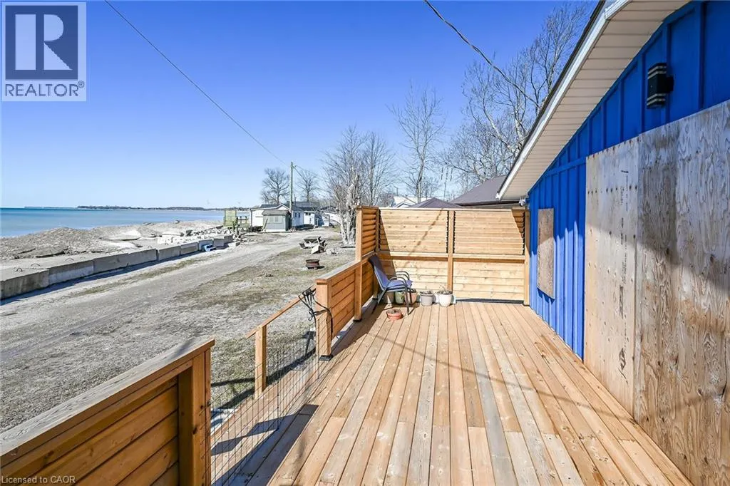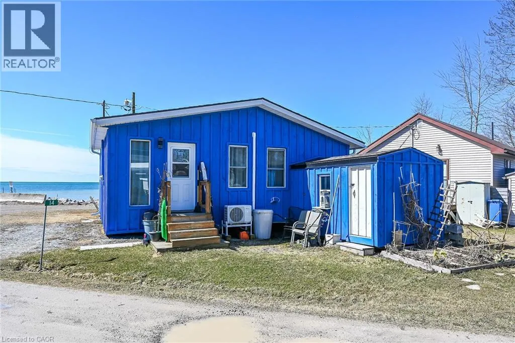 Possibly the best priced waterfront property available in Niagaraâs Golden Horseshoe. Features an extensively renovated, from the âstuds-outâ in 2023, beautiful presented cottage located in Featherstone Park - a privately owned park home to over 100 cottages bordering the banks of Lake Erieâs Golden South Coast. Relaxing 50-55 min commute to Hamilton, Brantford & Hwy 403 - 20 mins west of Dunnvilleâs amenities - similar distance east of Port Doverâs popular attractions - near the sea-side village of Selkirk. This Erie Treasure is positioned perfectly on large leased land lot at end of quiet Pike Lane enjoying breathtaking, panoramic water views from the the cottageâs oversized windows & new 260sf treated wood deck-2025 - literally just a few steps to gorgeous private sand beach situated directly in front of property. Introduces 600sf of open concept living area showcasing brilliant white kitchen - leads to bright & airy living room/dining room combination segues to open style primary bedroom - continues to multi-purpose room (possible bedroom), storage room & side entry foyer - completed with 3pc bath. Stylish vaulted ceilings & garden door deck walk-out compliment the modern decor with nautical flair. Attached versatile shed houses laundry facilities. Professional 2023 upgrades & improvements include - new Atlantic Blue board & baton wood exterior siding, roof shingles, windows, flooring, 100 amp electrical, plumbing, insulation, drywall, kitchen/bath cabinetry, light/plumbing fixtures. Extras - all appliances, concrete pier foundation, ductless mini-split heat/cool HVAC, 2000 gal water cistern & 2000 gal holding tank. Featherstone Park allows for 9 month occupancy (must vacate January/February/March) with annual lease of $4,400 includes property tax & use of play-park, volleyball court & 2 beaches. Affordable waterfront âMajestyâ (id:27476)