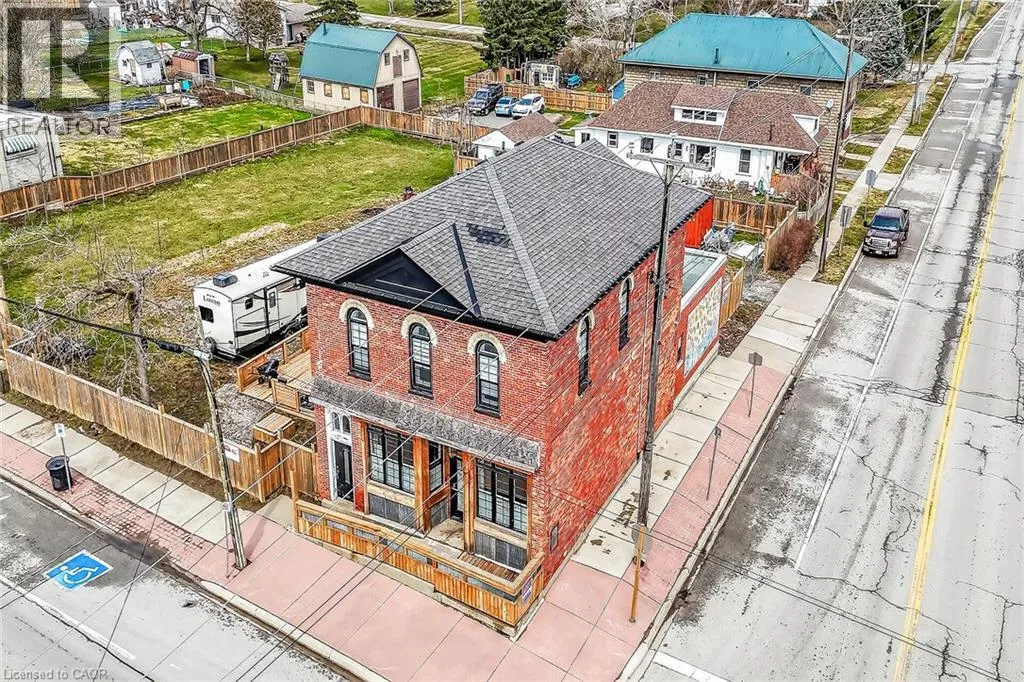 NORTH WEST CORNER OF MAIN ST W & ERIE ST S Exceptional & Turnkey Commercial / Residential Selkirk Opportunity! Ideally located in cottage country south in the picturesque Lakeside town of Selkirk. This exquisitely updated property features an oversized corner lot with stately curb appeal with brick exterior & fenced yard in a high visibility location offering commercial use main floor & upper level 2 bedroom residential apartment. The perfect set up for work & live in building or Ideal investment opportunity for solid cash flow with ample parking & huge upside. This extensively updated 1870 built building (no heritage restrictions) features a main floor currently set for restaurant, café, brewery, or business with original character from the former âBank of Hamiltonâ use including your own personal walk in vault. The upper level is highlighted by a stunning 2 bedroom apartment with custom kitchen cabinetry, granite countertops, & S/S appliances, dining area, large living room, primary bedroom with ensuite privilege access to spa like bathroom, additional bedroom, laundry, separate entrance, & sunroom. Updates include roof, septic system, exterior, flooring, mechanicals, & more! Conveniently located 40 mins south of Hamilton, minutes to Port Dover, & along multiple bike routes. Ideal for the entrepreneur, investor, restaurant, or business owner. An incredible deal for you to position yourself in a loyal, growing, & vibrant community! Take a chance on you and Invest in yourself â you wonât be disappointed! (id:27476)