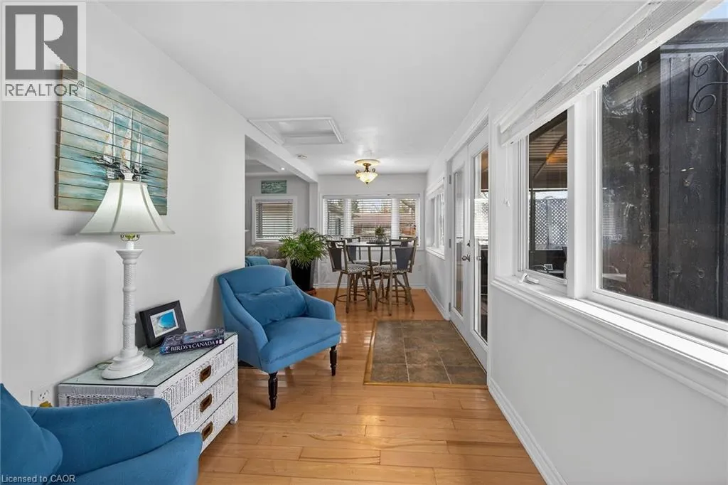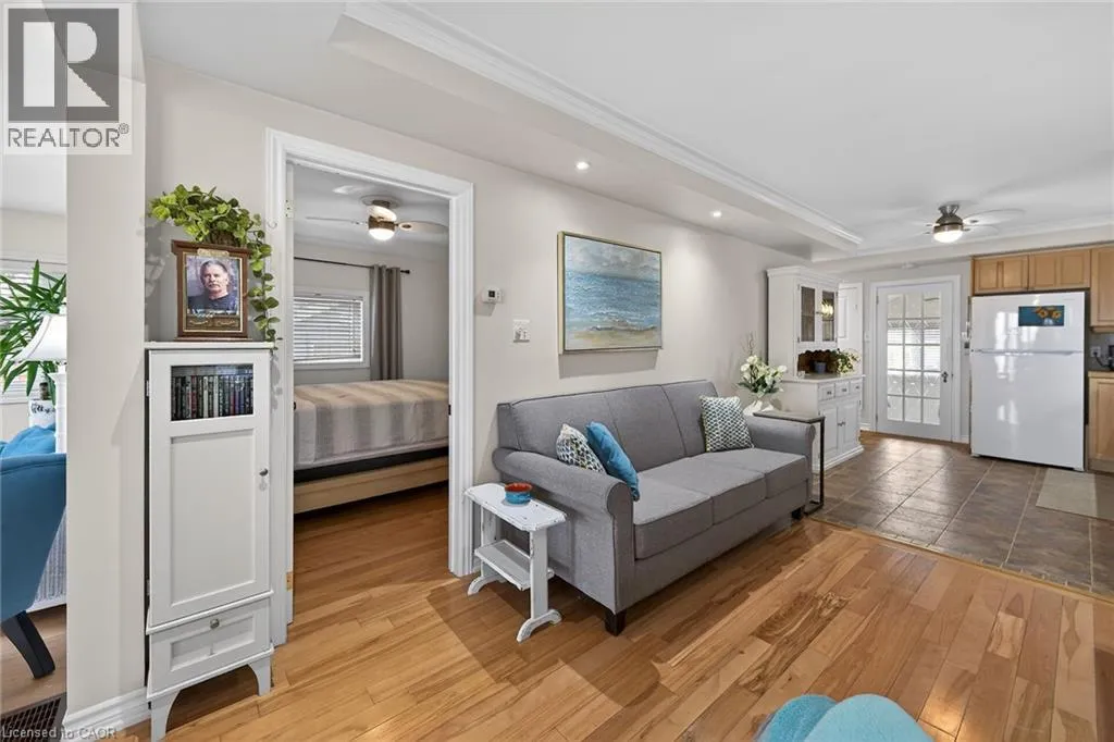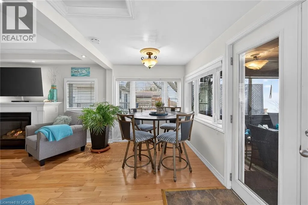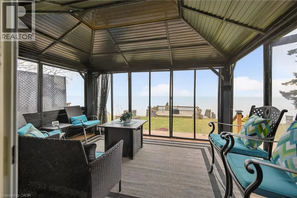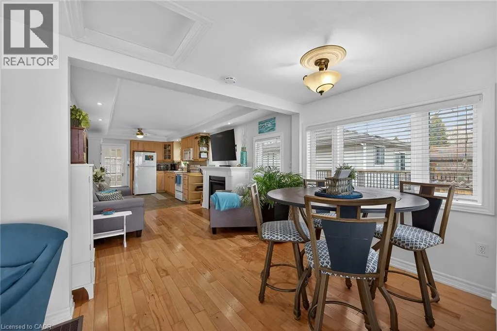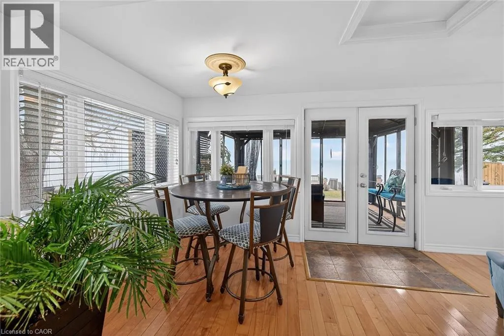 Gorgeous Lake Erie waterfront property offering prime west of prestigious Woodlawn Point location & similar distance east of the sea-side community of Peacock Point. Imagine sipping a morning coffee or nursing a late night beverage while savouring Erieâs majesty from this incredible Erie Treasure incs beautifully renovated year round cottage situated on mature lot. Introduces 735sf of immaculate living space, 735sf finished basement, 264sf lake facing entertainment deck incs enclosed metal gazebo & adjacent 168sf grade level deck - enjoys gentle sloping rear yard extending to waterfront observation deck offering wooden steps descending to paver stone patio built on armour stone break-wall w/removable staircase accessing golden sand beach continuing for hundreds of feet into glistening lake. After a day of aquatic adventures itâs time to retreat indoors & embrace nautical ambience of this tastefully presented home highlighted w/open concept kitchen sporting modern cabinetry & dinette - segues to living room ftrs patio door walk-out to deck/gazebo. Impressive 9ft tray ceilings, gleaming hardwood flooring, oversized windows & warm ambience of recently installed gas fireplace compliment décor. 2 sizeable bedrooms & modern 4pc bath complete main level design. Spacious 462sf family room showcases hi/dry basement - perfect venue for large family gatherings or simply a place to relax - completed w/3rd bedroom, utility room & storage room. Notable updates since 2020 inc 100 amp hydro, hot water heater & jet water pump/pressure tank - additional features inc quality appliances, n/g furnace, AC, fibre internet, water cistern, economical septic system (no costly pump outs), exterior vinyl siding, windows, asphalt roof shingles, low profile kayak shed & more. Relaxing 45-50 min commute to Hamilton, Brantford & 403 - 15 min drive to Port Doverâs popular amenities - mins west of Selkirk. Versatility Redefined - Stylish Comfort for Year Round Living or Ultimate Weekend Getaway! (id:27476)