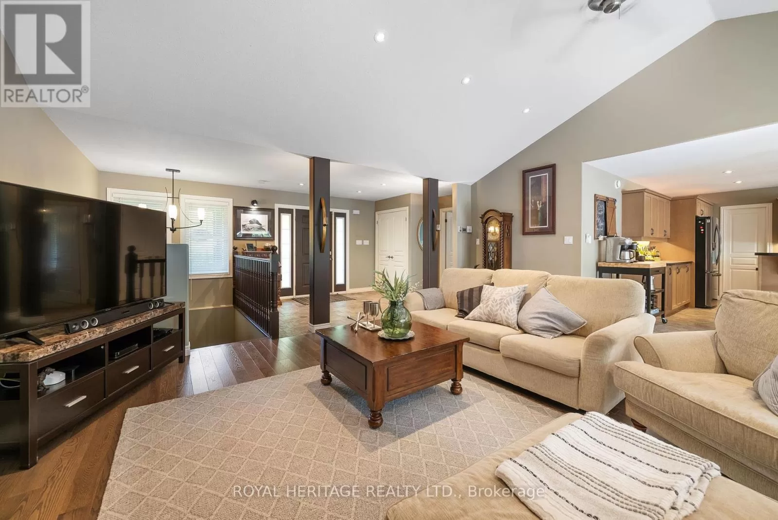 Cross Streets: Shanagarry Dr & Clonakilty Line. ** Directions: Frank Hill Rd to Valley Rd/Clonakilty Line to Shanagarry Dr. Welcome to Lakeside Elegance in the Kawarthas! This stunning all-brick bungalow sits on a 2.66 acre lot with ultimate privacy, a beautifully landscaped yard surrounded with mature trees and exclusive deeded access to Chemong Lake. Step inside to an open-concept main level boasting a Chefs kitchen w/pantry, a spacious island, new premium stainless steel appliances, a great room with soaring vaulted ceilings, enormous windows throughout, gleaming hardwood floors, a cozy gas fireplace with a seamless walkout to a composite deck accented with a gazebo overlooking serene natural vistas. A convenient main-floor laundry sits next to a spacious powder room with access to an oversized 2.5 car garage. The primary suite offers it's own 3-sided fireplace, a spa-inspired 6-piece ensuite complete with a soaker tub, a Roman glass shower, bidet & separate his & hers vanities with walk-in closets. A versatile office/den completes the primary suite with a walk-out to the deck. The 2nd bdrm enjoys access to it's own 4-pc bath. The fully finished lower level offers towering ceilings, a generous family rm, 3rd gas fireplace, walkout access to a stone patio, 4-pc semi-ensuite bath, & 3 additional bdrms designed with guests or family in mind. Enjoy the luxury of deeded waterfront access, complete with a boat launch & private dock perfect for exploring the renowned Trent-Severn Waterway or casting a line in some of the regions best fishing spots. Mins to recreational facilities including a sports complex, 3 golf courses, a curling rink, baseball diamond & School bus stop at your doorstep. Located in the sought-after hamlet of Ennismore, just minutes from Bridgenorth, 15 minutes to PRHC (hospital), easy access to Hwy 115 and 407. With over 4000+sqft living space, this immaculate home reflects true pride of ownership and presents a rare opportunity to enjoy refined lakeside living at its finest. Simply move in and begin your next chapter in luxury. OPEN HOUSE June 7 & 8, 2-4pm (id:27476)