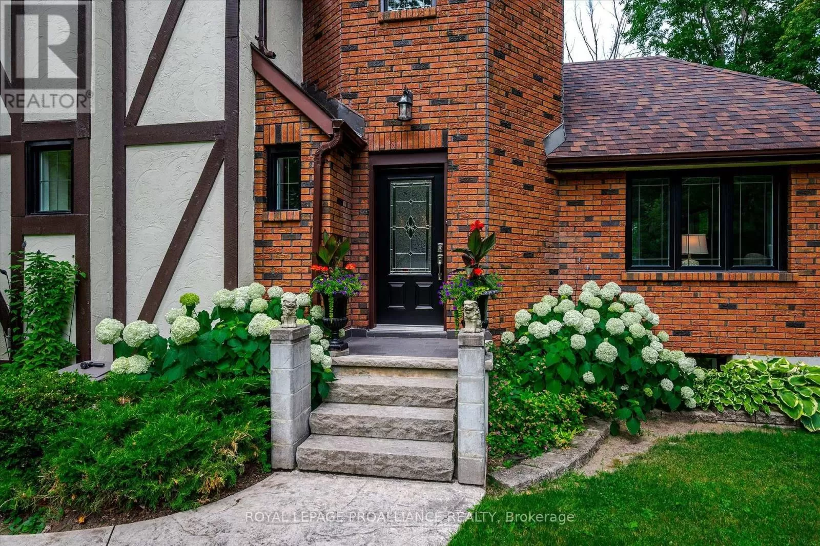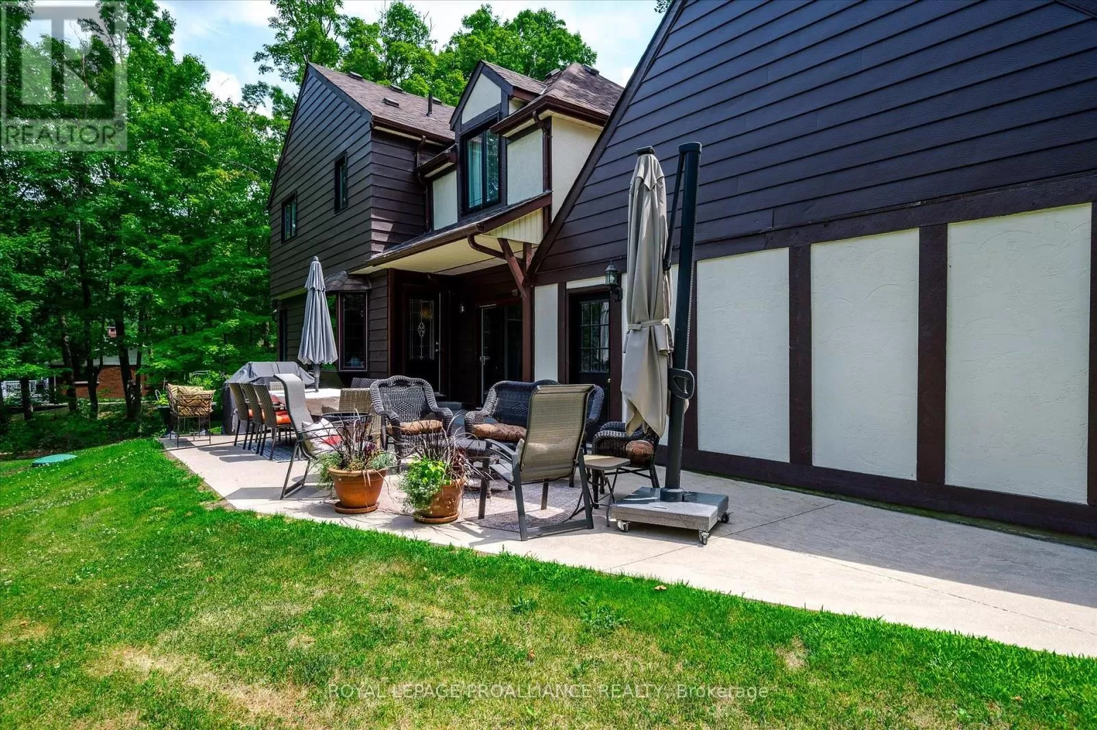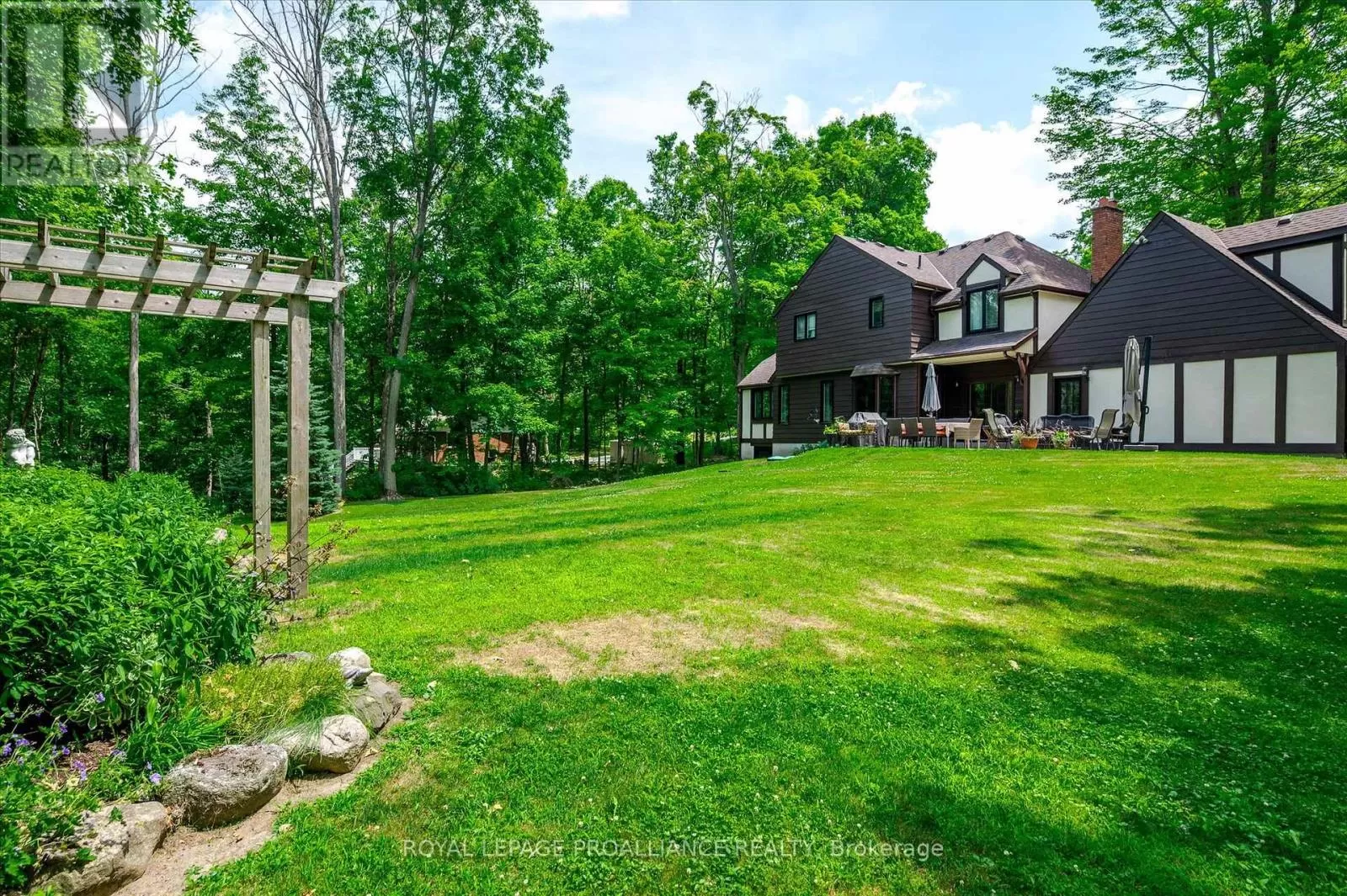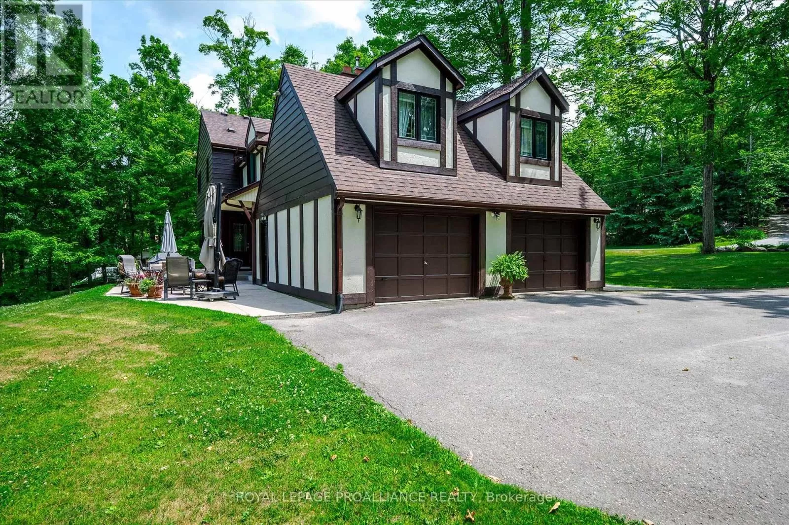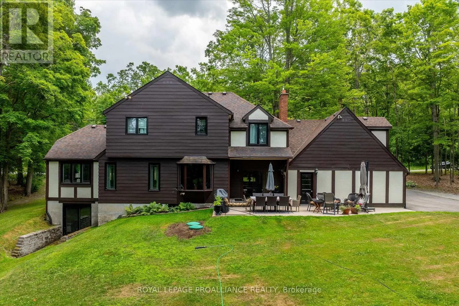 Cross Streets: Dinsdale St + Steinkrauss Dr. ** Directions: Dinsdale St. + Steinkrauss Dr. If you've ever imagined life surrounded by trees, where home feels like a peaceful escape, this is it. Welcome to 642 Dinsdale. This stately Tudor-style home is tucked into one of Peterborough County's finest neighbourhoods, Bridgenorth Estates, where homes are rarely offered, and lifestyle is everything. Set on just over 2 acres, the property is surrounded by mature trees, beautifully landscaped grounds, and wide open sky, offering space to explore, unwind, and enjoy every season outdoors. The backyard is a retreat of its own, featuring a charming arbour surrounded by gardens and stepping stones, plus a large patio perfect for outdoor dining or quiet mornings. There's room for kids to run free, and space for your dog to explore and play among the trees. Inside, the main level offers thoughtful design and natural light throughout; including a grand foyer, two separate living areas (each with their own gas fireplace), a formal dining room, kitchen, powder room, and a mudroom/laundry combo. One of the standout features is a separate room with its own entrance; ideal for a private home office, studio, or work-from-home setup. Upstairs, you'll find four bedrooms including a spacious primary with walk-in closet and ensuite, a second full bathroom, and an additional office or flex space. The lower level includes abundant storage, a den/bedroom, and a walk-out rec room with easy access to the backyard. Just minutes to Chemong Lake, perfect for boating, paddling, fishing, or simply soaking in the view, only minutes to retail essentials and located within the catchment zone of great schools; its easy to see why homes in this neighbourhood don't come up often. Welcome home to Bridgenorth Estates. (id:27476)