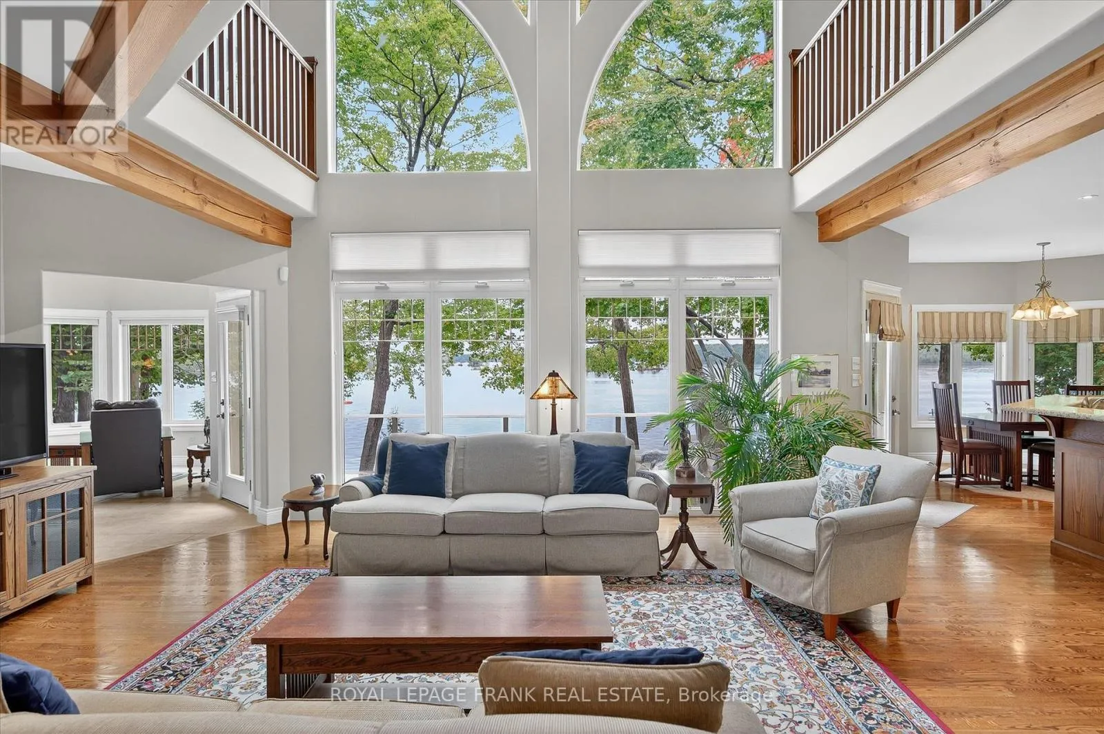 Cross Streets: Deer Bay Rd. ** Directions: Buckhorn Rd to Deer Bay Rd. Welcome to 3081 Beachwood Dr, an exquisite custom-built Arts & Crafts Revival estate on the shores of Lower Buckhorn Lake. With over 160 feet of pristine, swimmable waterfront and a gently sloping, landscaped lot, this home offers a rare blend of privacy, craftsmanship, and natural beauty. Built in 2004/2005 by Paul Graham Carpentry, it was designed to capture unobstructed views of the dotted islands from nearly every window, seamlessly blending warm wood finishes, stonework, and natural light. The main floor features oak cabinetry and staircase by Steve Griffin, granite kitchen countertops, and a stunning locally sourced limestone fireplace by Ralph Parker. Flooring includes hardwood and heated tile, with radiant in-floor heating extending throughout the lower level. The primary suite boasts a spa-inspired ensuite with air tub and heated tile, a walk-in closet, recessed ceiling with hidden surround lighting, and a private balcony overlooking the lake. Two upper guest bedrooms share a Jack & Jill bathroom, while the lower level offers a spacious family room, an additional bedroom, and a marble-finished bath. Mechanical highlights include a new Generac 14 kW generator (2025), a well with UV & filtration system for household water. Triple-pane curved windows, zoned heating/cooling, air exchanger, humidifier, central vac, and built-in alarm system ensure comfort and peace of mind year-round. Outside, enjoy limestone landscaping quarried from the lot, a fully paved driveway and fire route, an oversized garage with two 9ft doors, and a boathouse with wet slip. The dock, widened five years ago, offers excellent swimming and boating access, making lake life effortless. 3081 Beachwood Dr is more than a home its a thoughtfully designed lakeside sanctuary, ideal for entertaining or quiet retreats in every season. (id:27476)