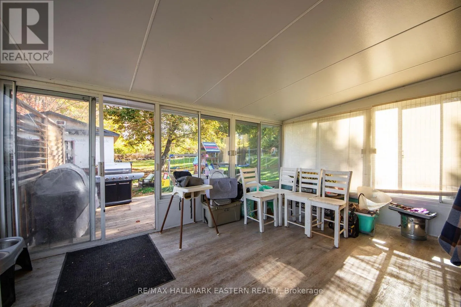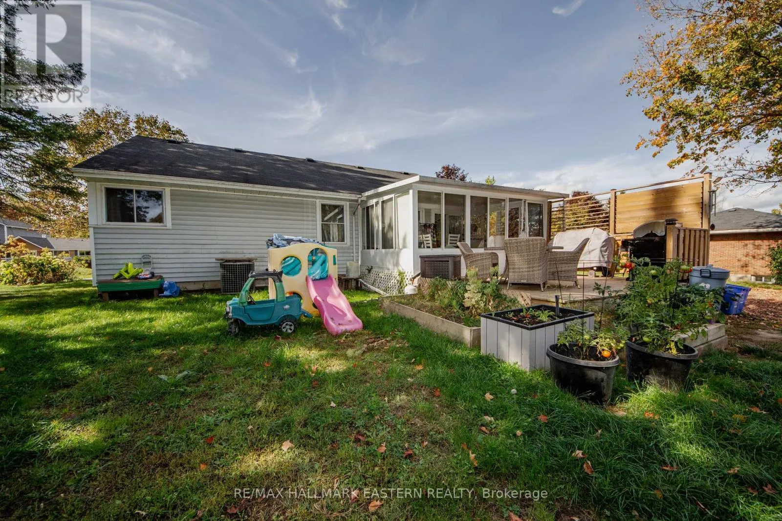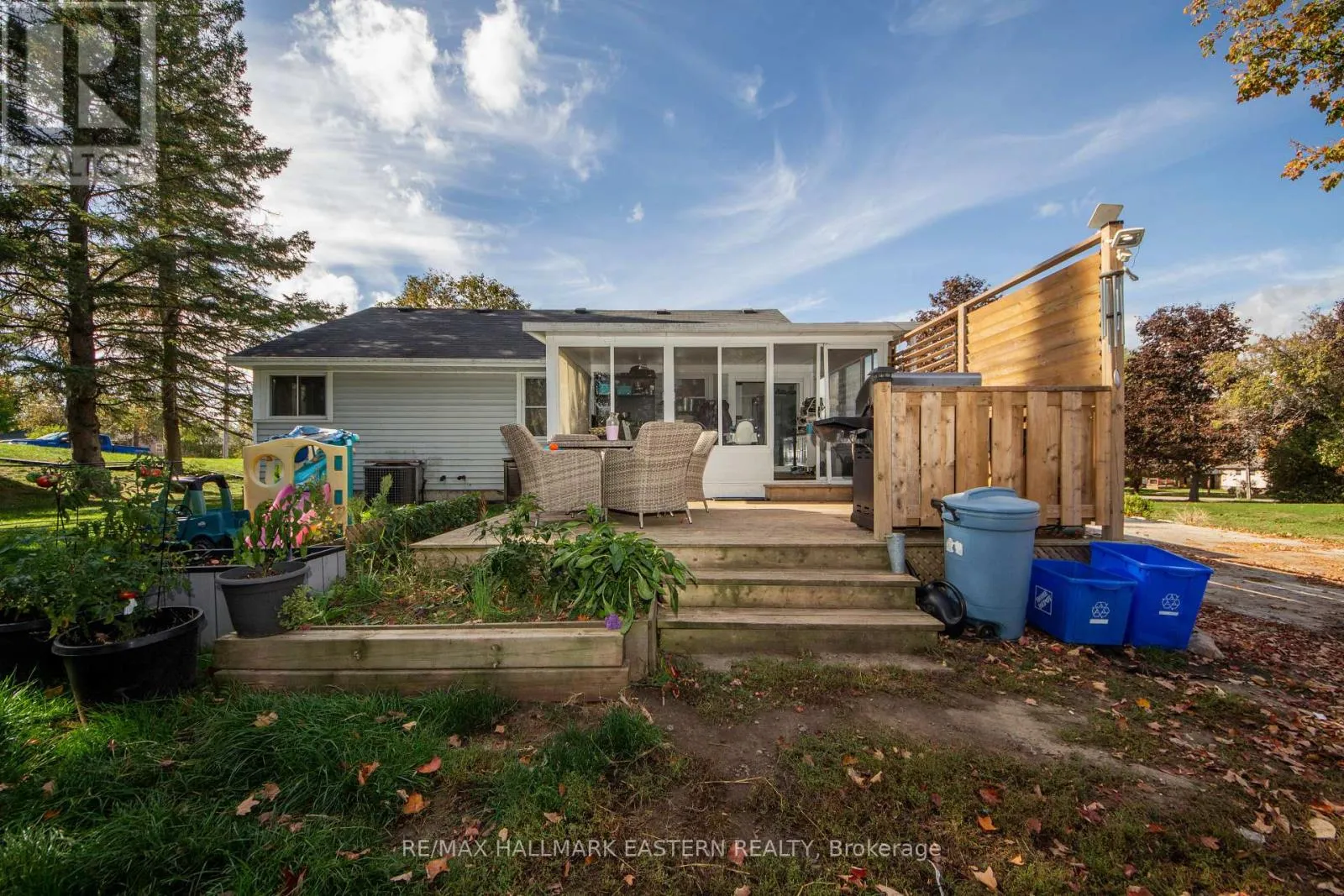 Cross Streets: Ward Street & Mann Road. ** Directions: Ward Street to Mann Road. Great location in the hamlet of Bridgenorth. This well-maintained 3-bedroom bungalow offers a bright 3-season sunroom, a kitchen with ceramic tile, and easy-care laminate flooring throughout the rest of the home. The full basement is ready for your finishing touches, providing plenty of potential for additional living space. A Generlink connection on the hydro meter is ready for your generator, ensuring peace of mind during power outages. The newer 24' x 32' insulated and wired shop/garage features a 9' x 11' overhead door, with new siding to be installed in the coming weeks. All of this is within walking distance to Chemong Lake, local shops, and everyday amenities. (id:27476)
