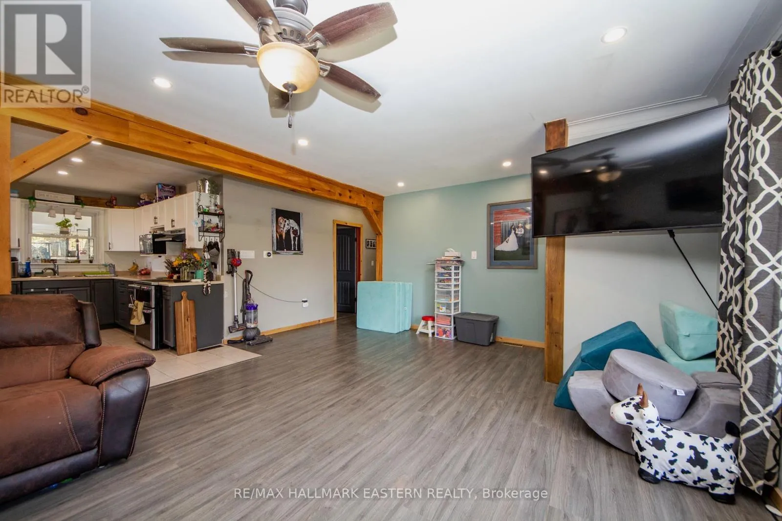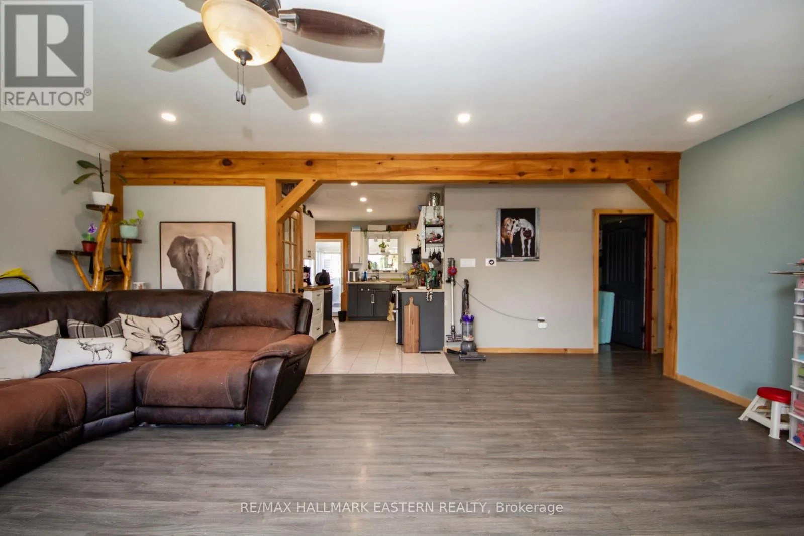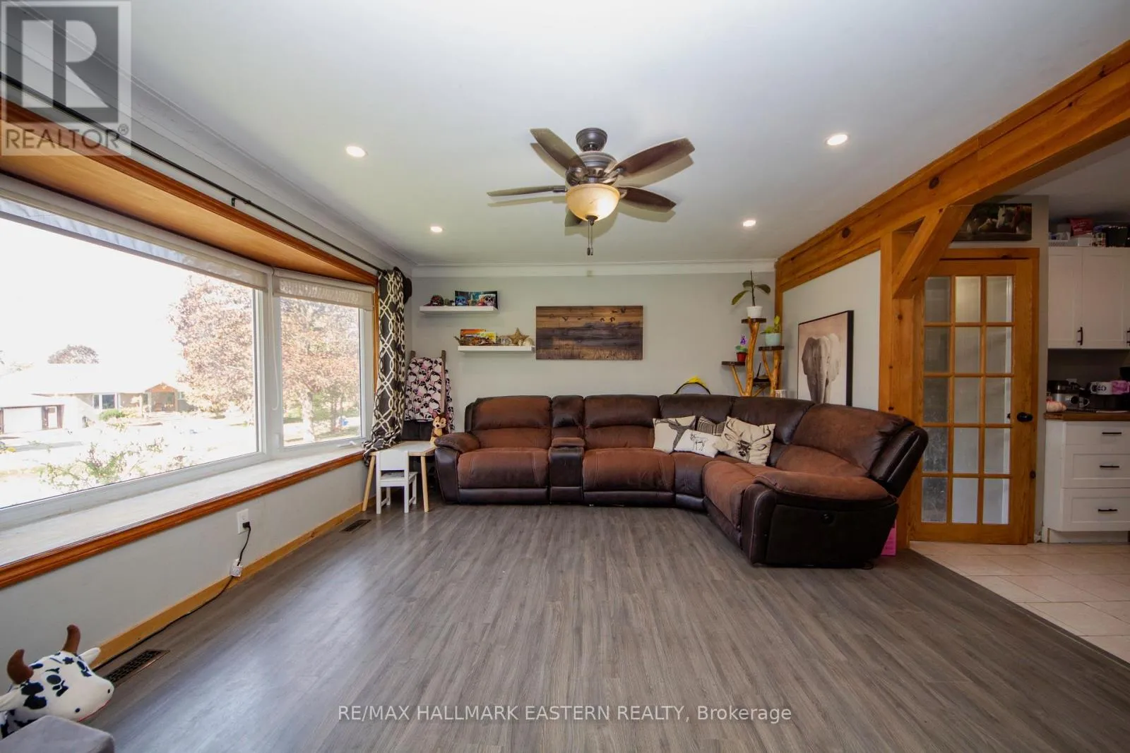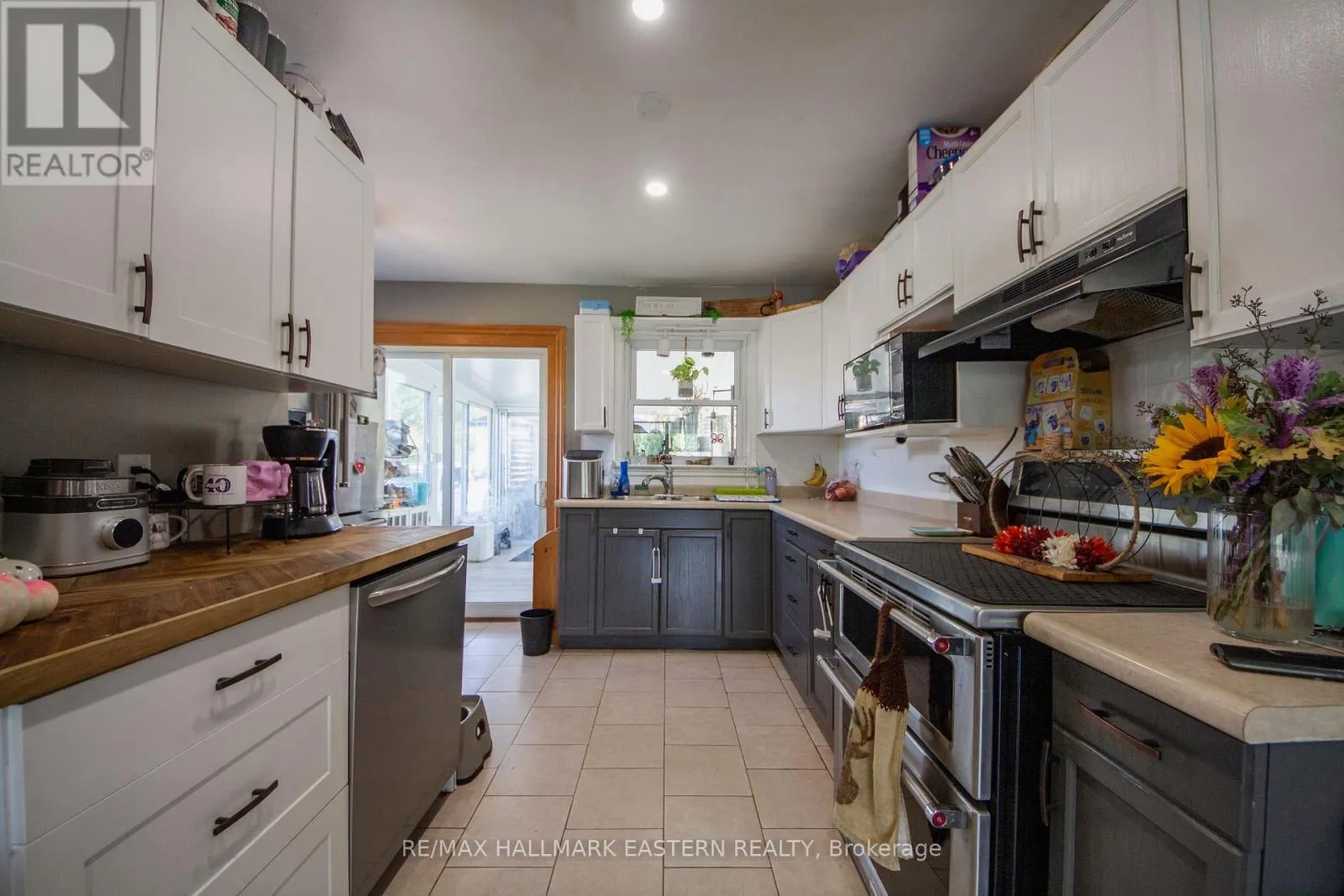 Cross Streets: Ward Street & Mann Road. ** Directions: Ward Street to Mann Road. Great location in the hamlet of Bridgenorth. This well-maintained 3-bedroom bungalow offers a bright 3-season sunroom, a kitchen with ceramic tile, and easy-care laminate flooring throughout the rest of the home. The full basement is ready for your finishing touches, providing plenty of potential for additional living space. A Generlink connection on the hydro meter is ready for your generator, ensuring peace of mind during power outages. The newer 24' x 32' insulated and wired shop/garage features a 9' x 11' overhead door, with new siding to be installed in the coming weeks. All of this is within walking distance to Chemong Lake, local shops, and everyday amenities. (id:27476)