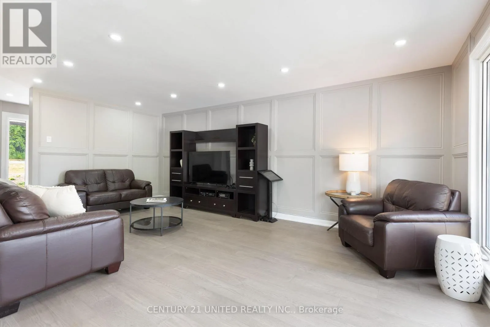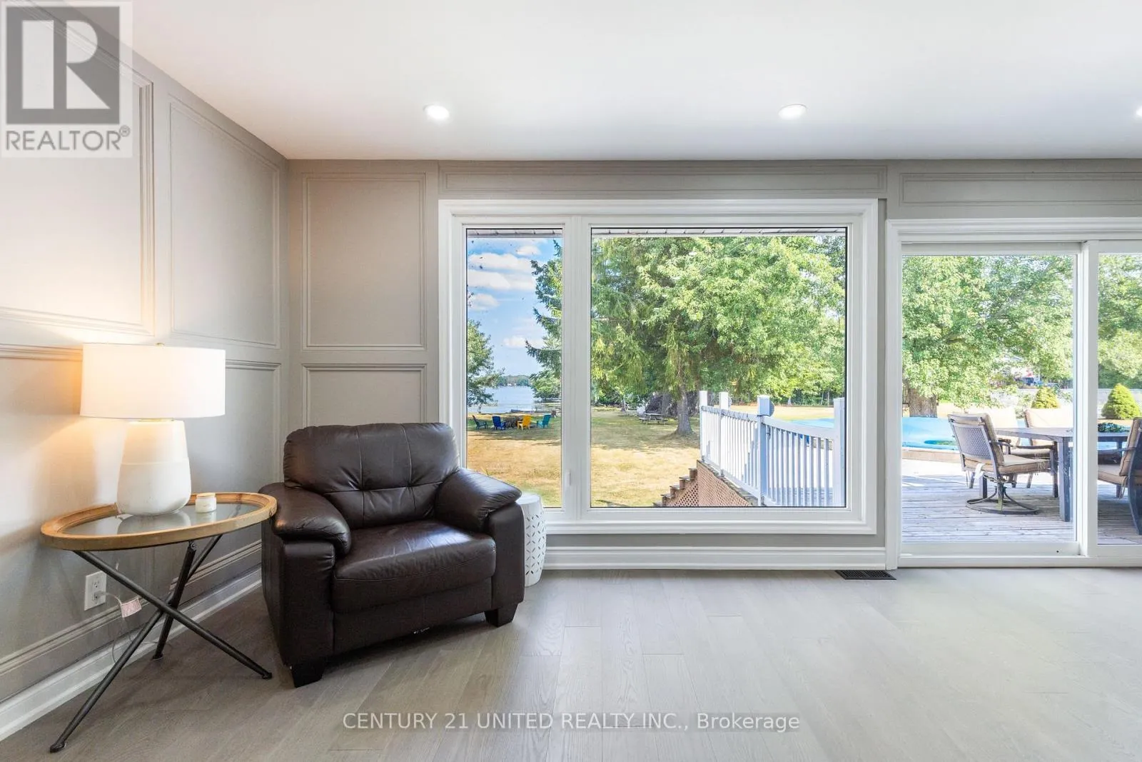Harrington Line to Connaught Nestled on Chemong Lake, this expansive lot features a large updated 5-bedroom, 3.5-bathroom home that welcomes you with a grand foyer leading to a beautifully designed kitchen. Enjoy beautiful sunrises from your home in the open-concept living and dining areas with picturesque windows that frame breathtaking views of the lake, creating a perfect backdrop for everyday living. The dining room has patio doors opening up to an expansive back deck, perfect for hosting outdoor dinners or easy access to the large above ground built in pool. Enjoy quality finishes throughout like the beautiful seamless luxury vinyl flooring. The interior layout provides a private wing with a spacious primary bedroom with ensuite bathroom, offering privacy and comfort. The convenient main floor laundry/mudroom has direct garage access adding to the functionality of the home. Upstairs, you'll find another generous primary bedroom with ensuite bathroom featuring a tiled shower & double vanity sinks. Two additional bedrooms are found on this level and a full 4-piece bathroom with a tiled shower/bath and luxury finishes. The bright walkout basement has another spacious bedroom, large entertaining space and patio doors opening up to a beautifully landscaped backyard with updated interlock, ideal for relaxation and entertaining with stunning views of the water. Plenty of parking in the large driveway and double car garage. This home is perfect for a larger family or could be a lucrative investment opportunity. (id:27476)