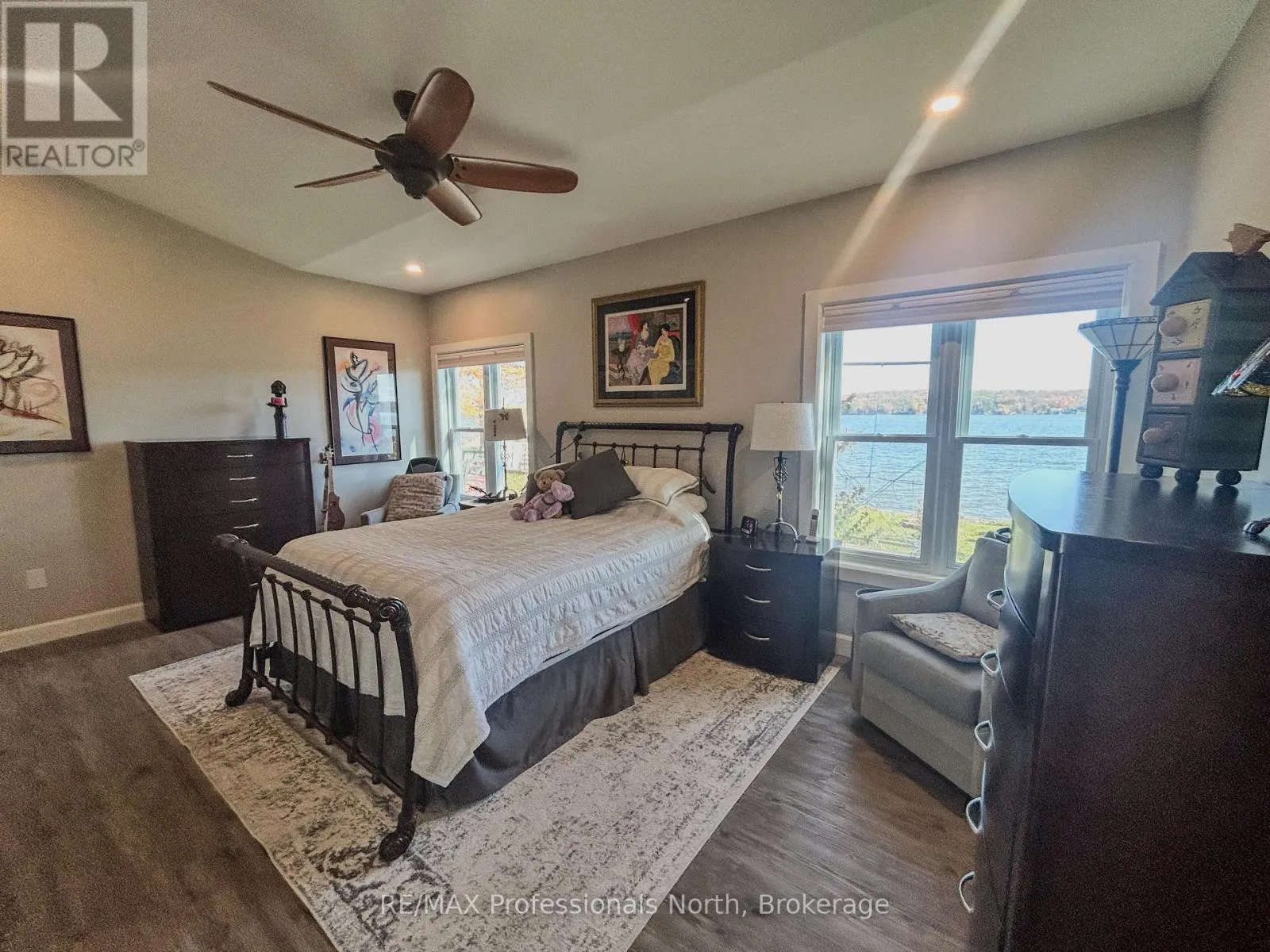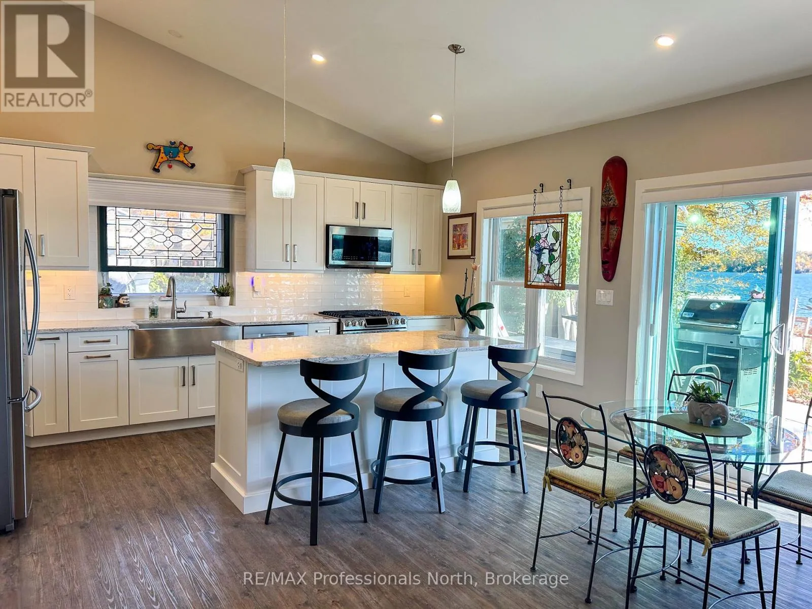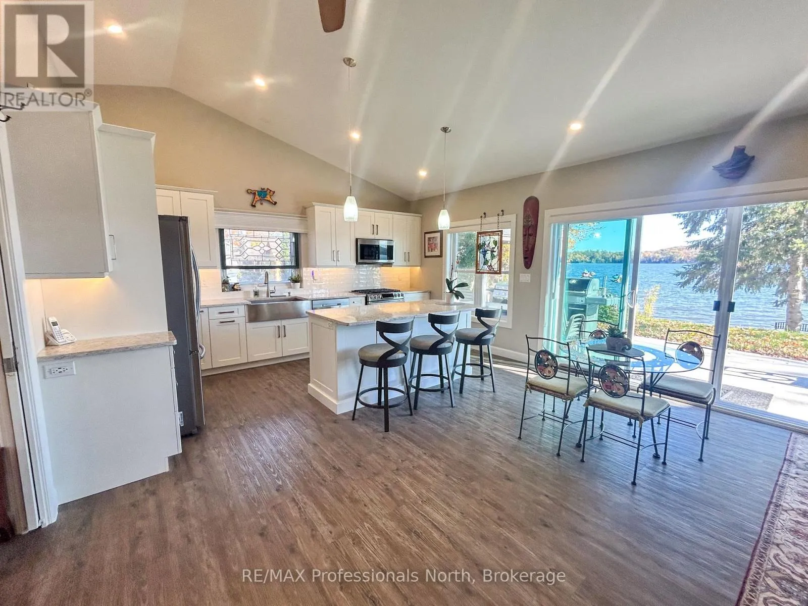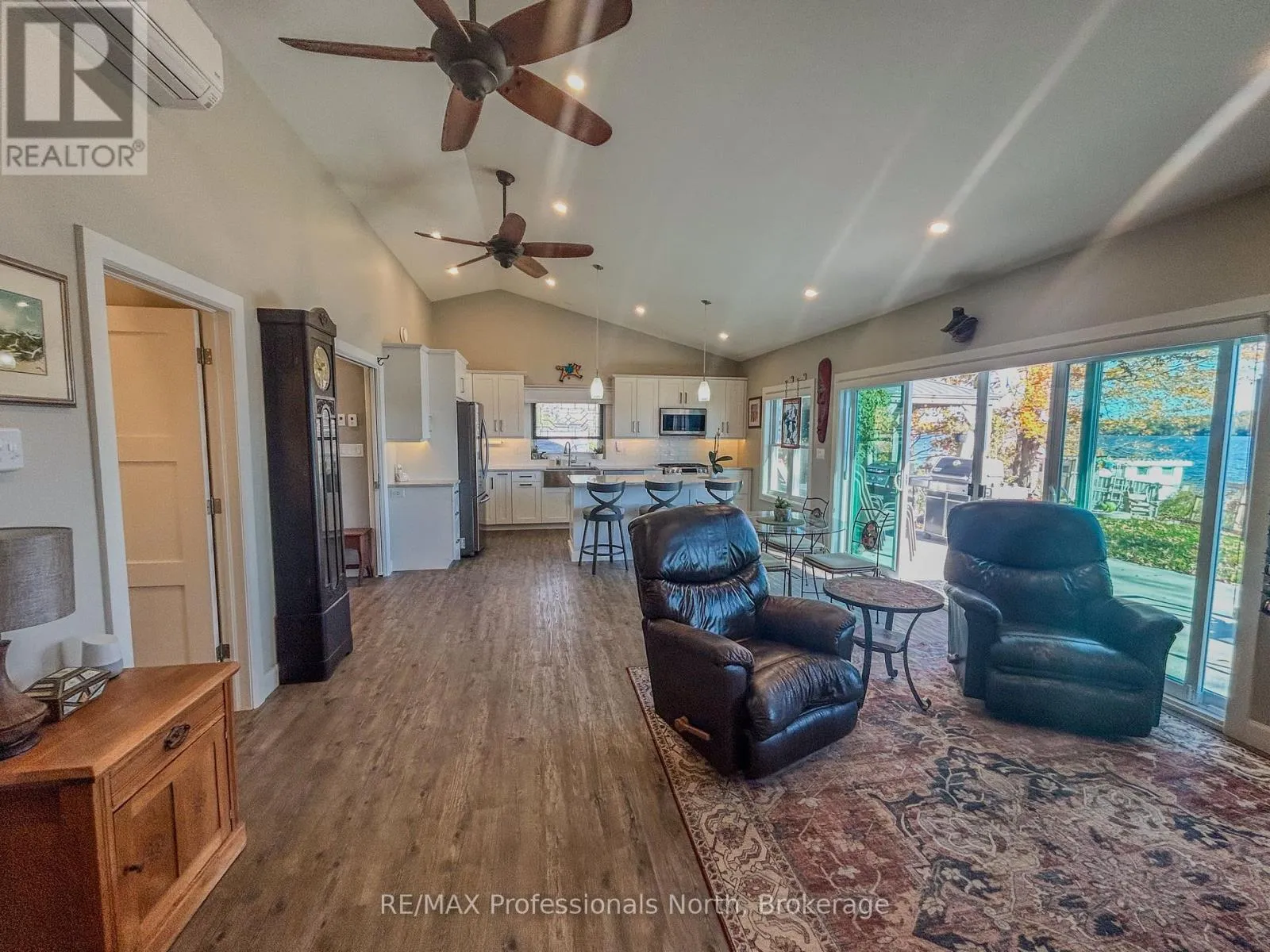 Cross Streets: Peregrine Rd. ** Directions: County Rd 14 to Peregrine Rd to Dalhaven Rd. Prepare to be captivated by this exceptionally designed and meticulously crafted 5-year-old waterfront home in desirable Ennismore! Sparing no detail for quality and comfort, this 3-bedroom, 2-bathroom residence offers an unparalleled lakeside lifestyle just minutes from Bridgnorth and Peterborough.The main floor boasts a seamless flow, featuring a modern, sleek kitchen with a large island, ideal for entertaining, and open dining/living areas. Thoughtful use of space maximizes the spectacular lake views and natural light throughout the home. The light and airy primary bedroom overlooks the lake and includes a spacious walk-in closet and a gorgeous 4-piece ensuite with a relaxing soaker tub. Enjoy the year-round comfort of in-floor radiant natural gas heat with zone control and a heat pump for supplemental heat and summer air conditioning. For superior tranquility, every room has been soundproofed! An easily connected generator ensures comfort and convenience during any power outage. For Your Exterior & Waterfront Features: The exterior is designed for effortless living, featuring a paved driveway and beautifully landscaped, low-maintenance yards. A welcoming rear patio with sliding door entry and a charming gazebo offer perfect spots for outdoor entertaining. The property provides maximum access to Chemong Lake with an armour stone entry and a private dock, plus a shed for storing waterfront toys. Situated on a private road in a quiet area, this property offers a wonderful retreat while maintaining close proximity to amenities.This truly is a move-in-ready, detail-oriented sanctuary where luxury meets the lake! (id:27476)