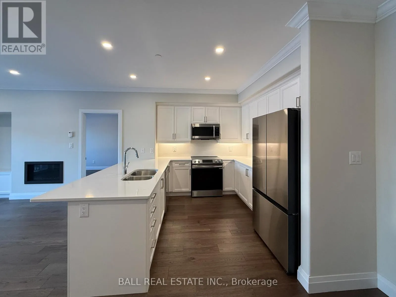 Queen Street / Hampton Lane Immaculate 2-Bed Luxury Condo in the Village of Lakefield! Welcome to never-lived-in Unit 204, a bright, beautifully finished suite featuring 2 bedrooms, full bathroom and a lovely open-concept layout with gas fireplace and 9' ceilings with crown moulding throughout. The stunning kitchen offers white quartz countertops and backsplash with new stainless steel appliances, open to living room with large walkout covered patio to watch the sunrise every morning. This unit comes with parking spot #19 (plus 2nd leased spot #27 for 20 yrs), visitor parking and storage unit #10 in basement, plus garage parking space available to purchase. Explore 3km of scenic paved walking paths throughout the community, pop next door to Golden Years Club activities or take a short stroll into Lakefield's vibrant downtown with great restaurants, shopping, waterfront trail, farmers market, marina and more. Experience the perfect blend of new-build luxury comforts, reputable local quality craftsmanship, and incredible convenience, with no maintenance! (id:27476)