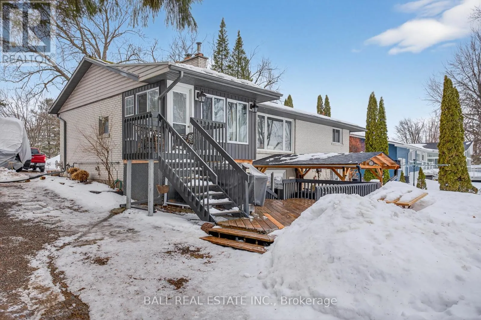 Cross Streets: Green Acres Crst/Hillside Dr. ** Directions: Green Acres to Tralee. Brick bungalow on Buckhorn Lake. This charming home has it all. 2 plus 1 bedrooms, large living room with gas fireplace and a huge window for gorgeous views of the lake. Updated flooring, kitchen and bathrooms. The lower level has a walk out, large family room with an air tight wood fireplace for those chilly winter nights. Walk out the sliding glass doors to a covered armour stone deck. A dry boathouse turned waterfront patio is great for summer entertaining. An attached garage, a large deck with hot tub makes this a perfect year round home. All on a very quiet street on Emerald Isle. Sit at the waters edge and watch the fabulous sunrise. Put your feet up and enjoy all this property has to offer (id:27476)