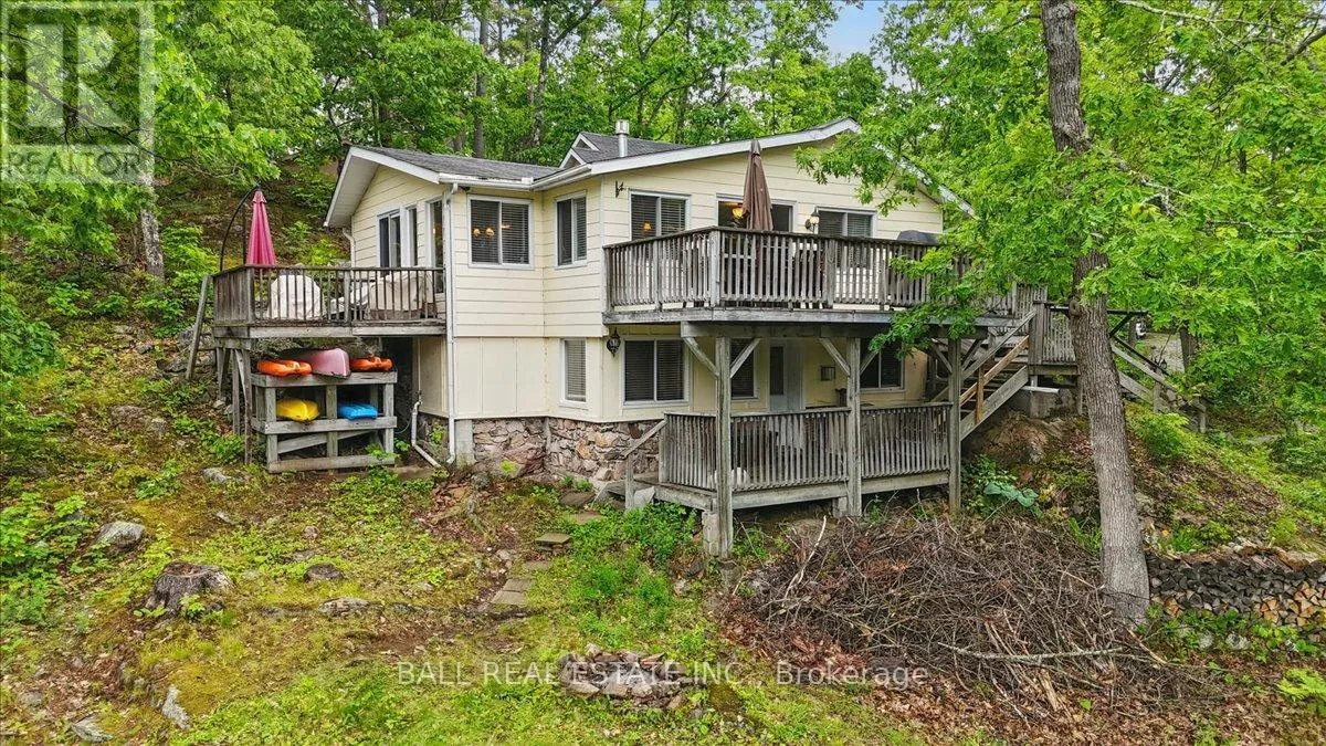 Tedford Drive Seize the opportunity to own a stunning piece of Stony Lake! This beautiful half-acre property boasts mature trees, striking red granite, and an impressive 145 ft of shoreline. The charming four-season lake house offers 2 bedrooms, 2 bathrooms, a walkout basement, and a cozy insulated bunkie. Inside, the main floor features an open kitchen, living room, and dining area with patio doors that open onto a spacious deck, perfect for soaking in the breathtaking views of Stony Lake. Step outside and unwind on your expansive 14x40 aluminum dock, ideal for enjoying all the outdoor activities the lake has to offer. Don't miss your chance to own your very own slice of paradise on Stony Lake! (id:27476)