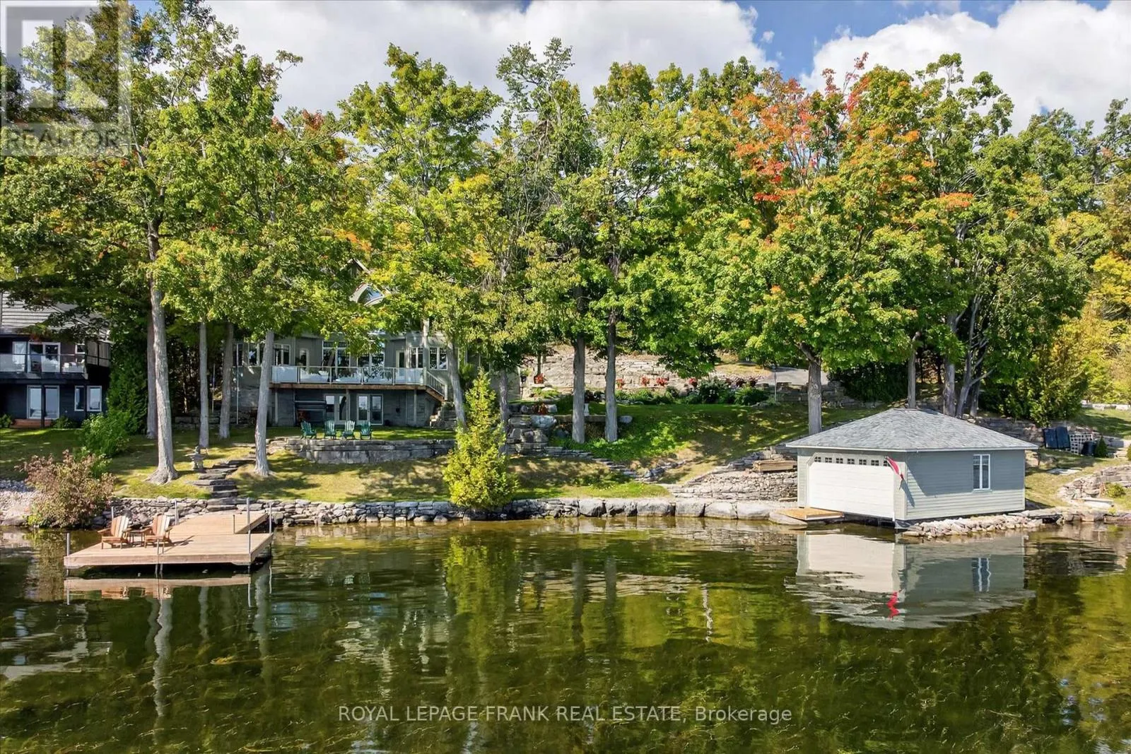 Cross Streets: Deer Bay Rd. ** Directions: Buckhorn Rd to Deer Bay Rd. Welcome to 3081 Beachwood Dr, an exquisite custom-built Arts & Crafts Revival estate on the shores of Lower Buckhorn Lake. With over 160 feet of pristine, swimmable waterfront and a gently sloping, landscaped lot, this home offers a rare blend of privacy, craftsmanship, and natural beauty. Built in 2004/2005 by Paul Graham Carpentry, it was designed to capture unobstructed views of the dotted islands from nearly every window, seamlessly blending warm wood finishes, stonework, and natural light. The main floor features oak cabinetry and staircase by Steve Griffin, granite kitchen countertops, and a stunning locally sourced limestone fireplace by Ralph Parker. Flooring includes hardwood and heated tile, with radiant in-floor heating extending throughout the lower level. The primary suite boasts a spa-inspired ensuite with air tub and heated tile, a walk-in closet, recessed ceiling with hidden surround lighting, and a private balcony overlooking the lake. Two upper guest bedrooms share a Jack & Jill bathroom, while the lower level offers a spacious family room, an additional bedroom, and a marble-finished bath. Mechanical highlights include a new Generac 14 kW generator (2025), a well with UV & filtration system for household water. Triple-pane curved windows, zoned heating/cooling, air exchanger, humidifier, central vac, and built-in alarm system ensure comfort and peace of mind year-round. Outside, enjoy limestone landscaping quarried from the lot, a fully paved driveway and fire route, an oversized garage with two 9ft doors, and a boathouse with wet slip. The dock, widened five years ago, offers excellent swimming and boating access, making lake life effortless. 3081 Beachwood Dr is more than a home its a thoughtfully designed lakeside sanctuary, ideal for entertaining or quiet retreats in every season. (id:27476)