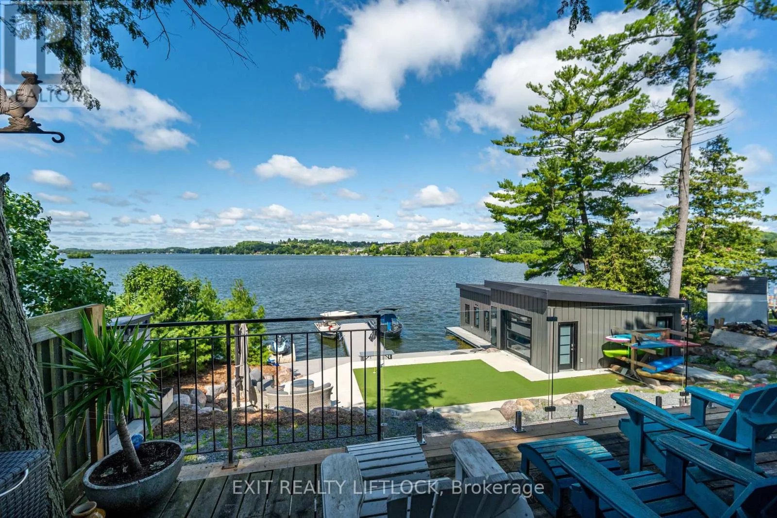 Cross Streets: Lindsay Rd & Fife Bay Road. ** Directions: Lindsay Rd, north onto Fifes Bay Rd., turn right onto Fifes Bay Marina Ln.,property is on your left.Lindsay Rd, north onto Fifes Bay Rd., turn right onto FifesBay Marina Ln., property is on your left. Experience the charm of waterfront living on Chemong Lake, just 10 minutes from Peterborough. This inviting lakeside cottage offers the perfect blend of relaxation, recreation, and future potential. Set along the peaceful shores of Chemong Lake, the property showcases breathtaking sunset views and a tranquil setting ideal for unwinding by the water. Designed with boating enthusiasts in mind, the property features two docks providing ample space for watercraft and lake toys, along with generous parking for family and guests. The newer boathouse includes a convenient wet slip and a versatile lounge area with an overhead door that opens to a beautifully landscaped yard, an ideal space for entertaining, summer barbecues, or simply enjoying lakeside living. Surrounded by newly built, luxury year-round homes, this property offers outstanding opportunity. Enjoy it as a charming seasonal retreat or explore the potential to build your dream waterfront home in this sought-after location. With its prime setting, stunning views, and endless recreational possibilities on Chemong Lake, this is a rare opportunity to secure your own piece of waterfront paradise. (id:27476)