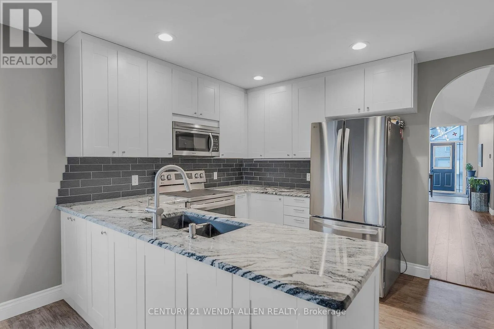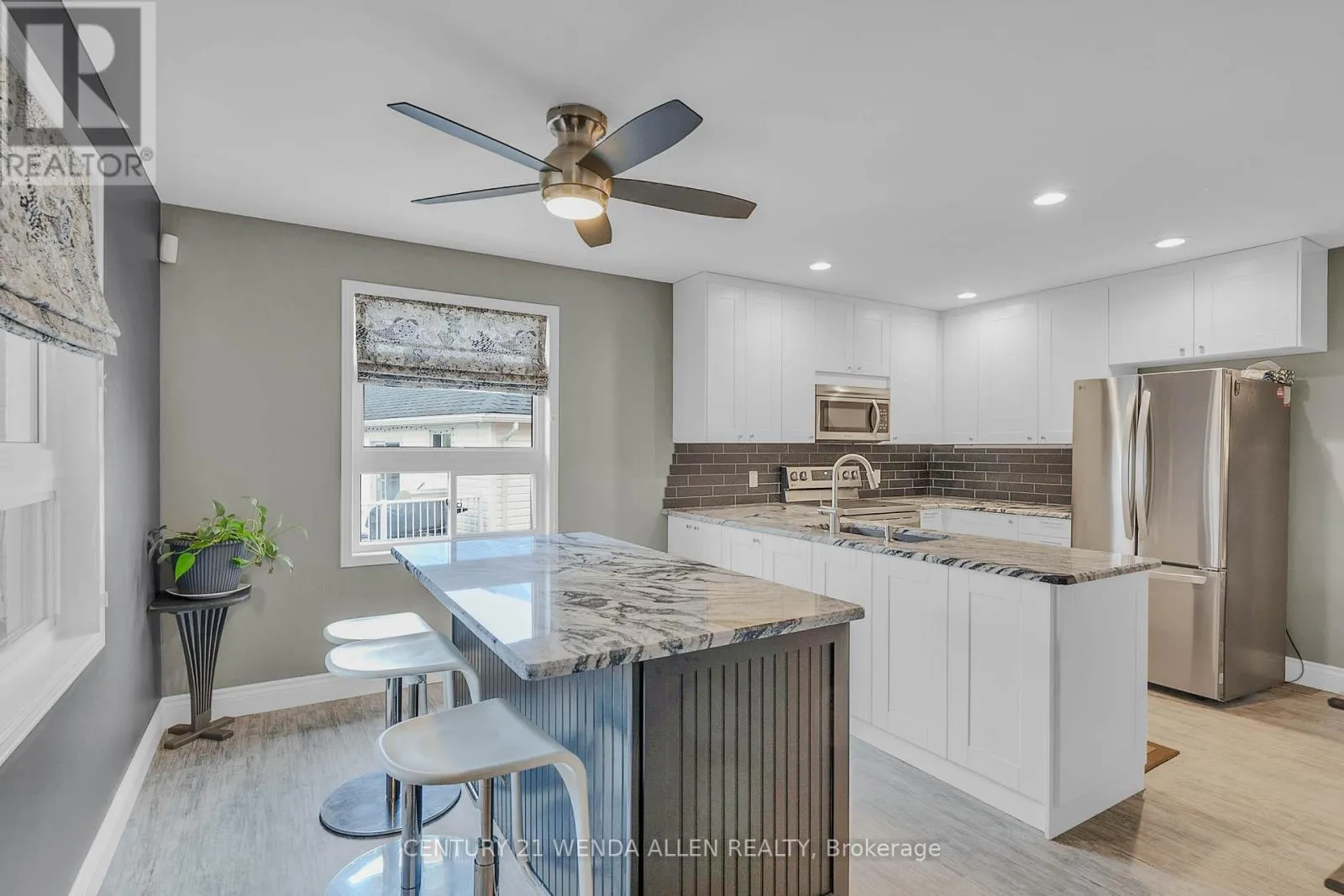 Cross Streets: Water St. & Woodland Drive. ** Directions: See Map. Perfect for multi family living, this level entry all brick bungalow was built in 2004. Located in the desirable enclave of Woodland Acres, the premium lot with an inground sprinkler system backs onto a babbling brook. The main level includes a primary bedroom with a 3 piece ensuite, a 2nd bedroom, main bathroom with custom vanity, main floor laundry, combined living/dining rooms with coved ceilings plus a built in china cabinet. The updated eat in kitchen features a pantry, island with pot and pan drawers and granite counter tops and leads to a cozy family room with gas fireplace and walkout to 3 season sunroom. The family room, sunroom and basement overlook the mini ravine and babbling brook! The lower level provides 3 bedrooms (1 bedroom above grade) with ample closet space, large kitchen, full bathroom with walk in shower and custom vanity, above grade family room with a gas fireplace and W/O to deck, utility room with ample storage. A gas BBQ hookup is located on the TREX partially covered deck which extends to a pergola with a retractable custom made UVF filter sunscreen. The included garden shed provides tool storage for the maintenance of the established perennial garden. The attached double garage (18' X 17') has an entrance to the house interior as well as a man door to the side of the property. This lovely home is located in a mixed neighborhood showing pride of ownership, close to Trent University, Riverview Park and Zoo and just minutes to Lakefield and downtown Peterborough. This well maintained home has a re-shingled roof in (2018), new hot water tank - owned (2020), new furnace (2024). Water and sewage are included in tax bill. The family room, sunroom and basement overlook the mini ravine with babbling brook. The pictures look great but seeing the property in person will amaze you!!!! (id:27476)