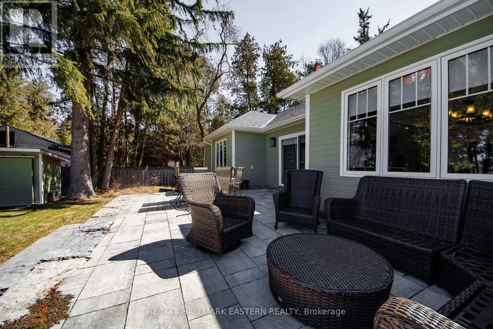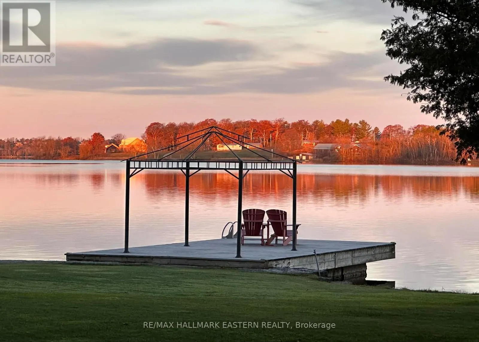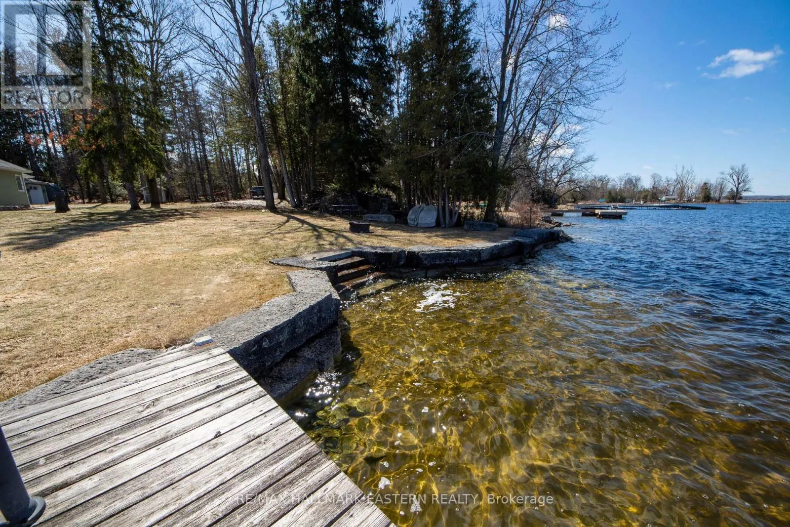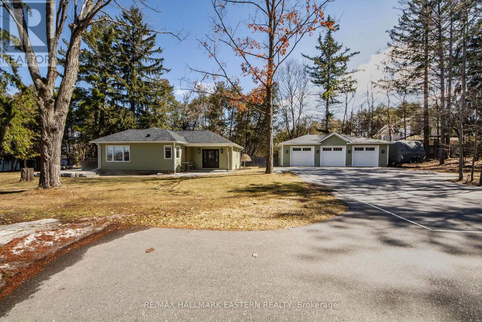 Cross Streets: Tara Rd. ** Directions: Tara Rd north, then left on Tara Rd to the stop sign, turn right onto Gallivan Rd. 2nd property on your left. 1.3 acres of waterfront living perfection! This custom-built 1,500 sq ft bungalow offers 2 bedrooms and 2 bathrooms and is set on an exceptional lot with 160 feet of pristine shoreline on Pigeon Lake. The bright and spacious, open-concept layout is designed to capture stunning lake views throughout. The kitchen features a centre island with breakfast bar, seamlessly flowing into a formal dining area and inviting living room with 8' patio doors leading to a lakeside patio. The primary suite boasts a large walk-in closet and a luxurious 4-pc ensuite complete with a separate 6' glass shower and a soaker tub perfect for relaxing. Outdoors you'll find professionally designed hardscaping that wraps around the home and is complemented by beautiful perennial gardens plus irrigation system. The paved driveway meanders through the trees opening to a three-car garage with wood stove and a regulation sized pickleball court integrated into the expansive paved area. Enjoy entertaining on the permanent armour stone cribbed dock with gazebo. Included is an additional 60' pole dock - ideal for accommodating all your watercraft and lakeside activities. Additional features include a 22KW backup generator for peace of mind year-round, a 20' x 30' Quonset hut tucked privately among the trees and a quaint outhouse with compost toilet and extra side section for storage. A rare offering that blends comfort, privacy and waterfront living. Book your private viewing today. You won't be disappointed. (id:27476)