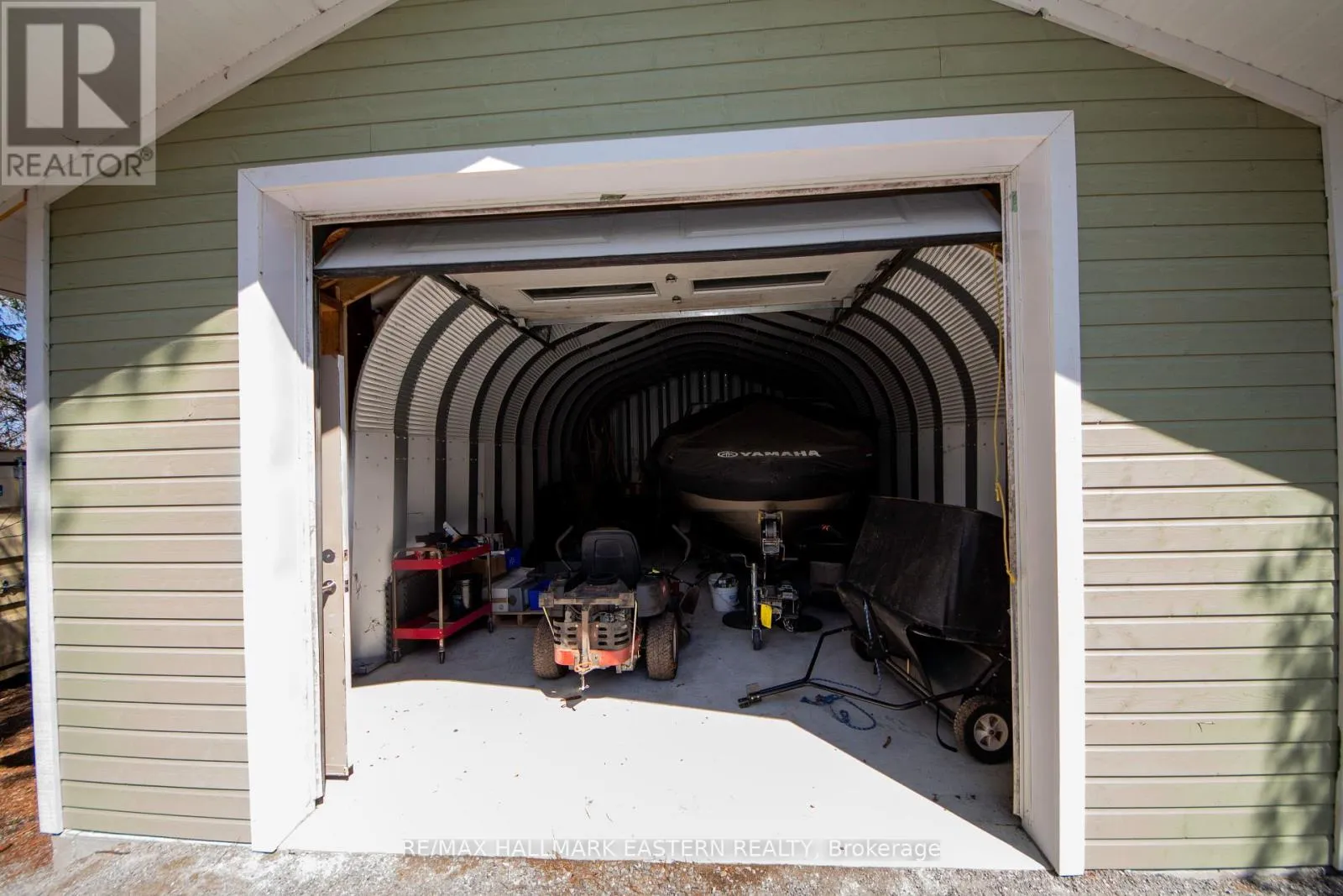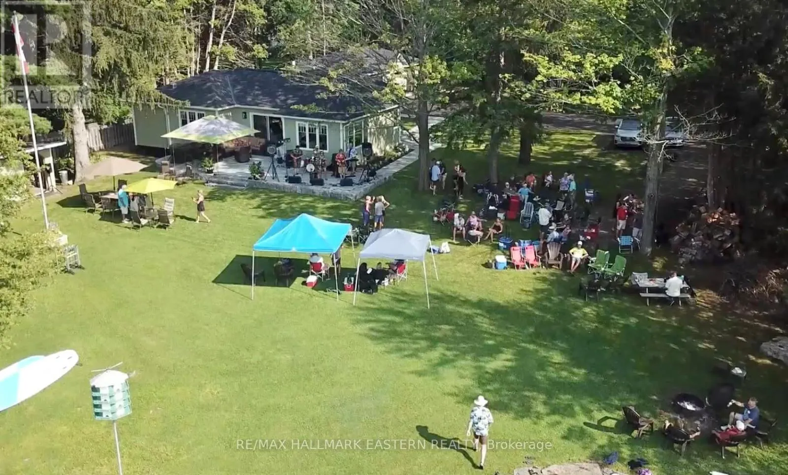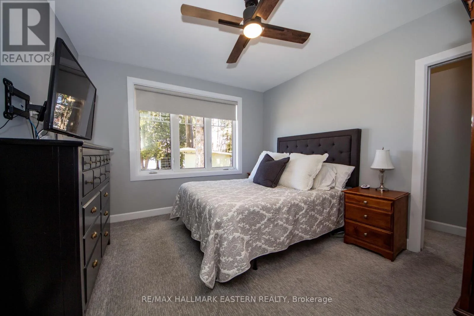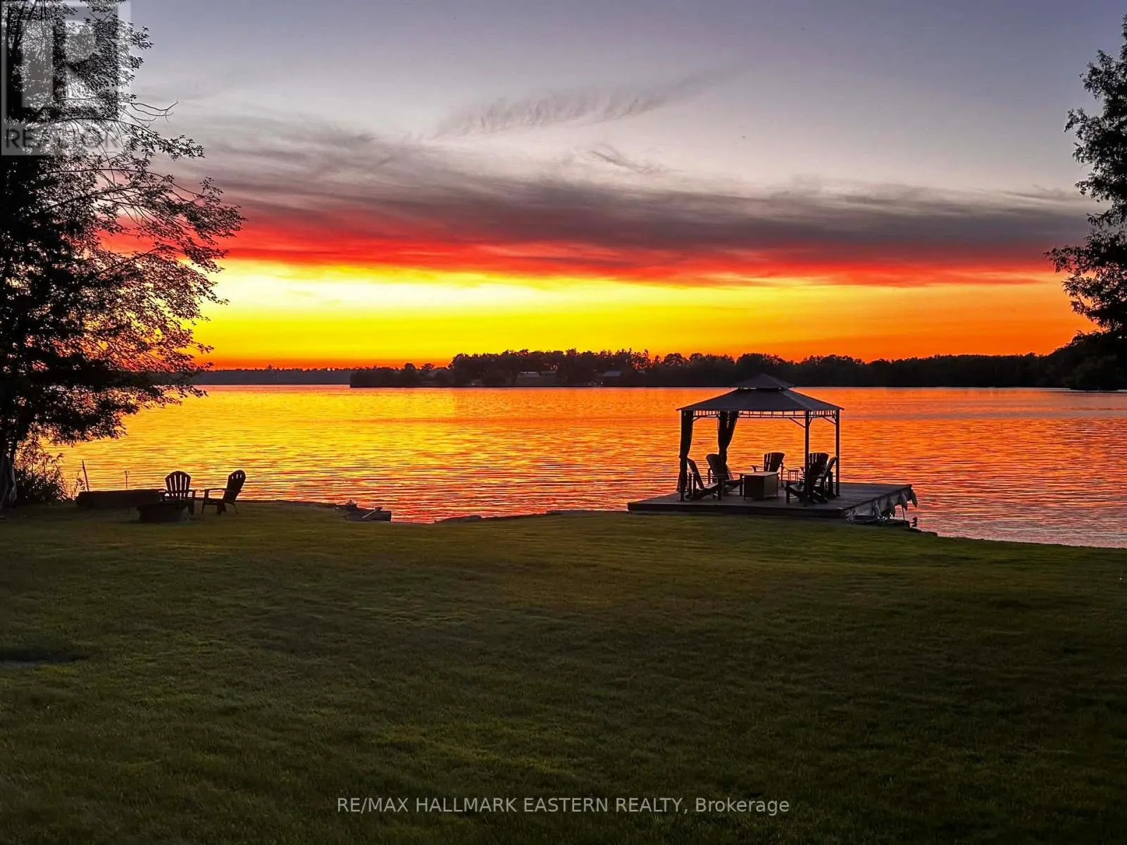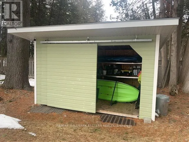 Cross Streets: Tara Rd. ** Directions: Tara Rd north, then left on Tara Rd to the stop sign, turn right onto Gallivan Rd. 2nd property on your left. 1.3 acres of waterfront living perfection! This custom-built 1,500 sq ft bungalow offers 2 bedrooms and 2 bathrooms and is set on an exceptional lot with 160 feet of pristine shoreline on Pigeon Lake. The bright and spacious, open-concept layout is designed to capture stunning lake views throughout. The kitchen features a centre island with breakfast bar, seamlessly flowing into a formal dining area and inviting living room with 8' patio doors leading to a lakeside patio. The primary suite boasts a large walk-in closet and a luxurious 4-pc ensuite complete with a separate 6' glass shower and a soaker tub perfect for relaxing. Outdoors you'll find professionally designed hardscaping that wraps around the home and is complemented by beautiful perennial gardens plus irrigation system. The paved driveway meanders through the trees opening to a three-car garage with wood stove and a regulation sized pickleball court integrated into the expansive paved area. Enjoy entertaining on the permanent armour stone cribbed dock with gazebo. Included is an additional 60' pole dock - ideal for accommodating all your watercraft and lakeside activities. Additional features include a 22KW backup generator for peace of mind year-round, a 20' x 30' Quonset hut tucked privately among the trees and a quaint outhouse with compost toilet and extra side section for storage. A rare offering that blends comfort, privacy and waterfront living. Book your private viewing today. You won't be disappointed. (id:27476)
