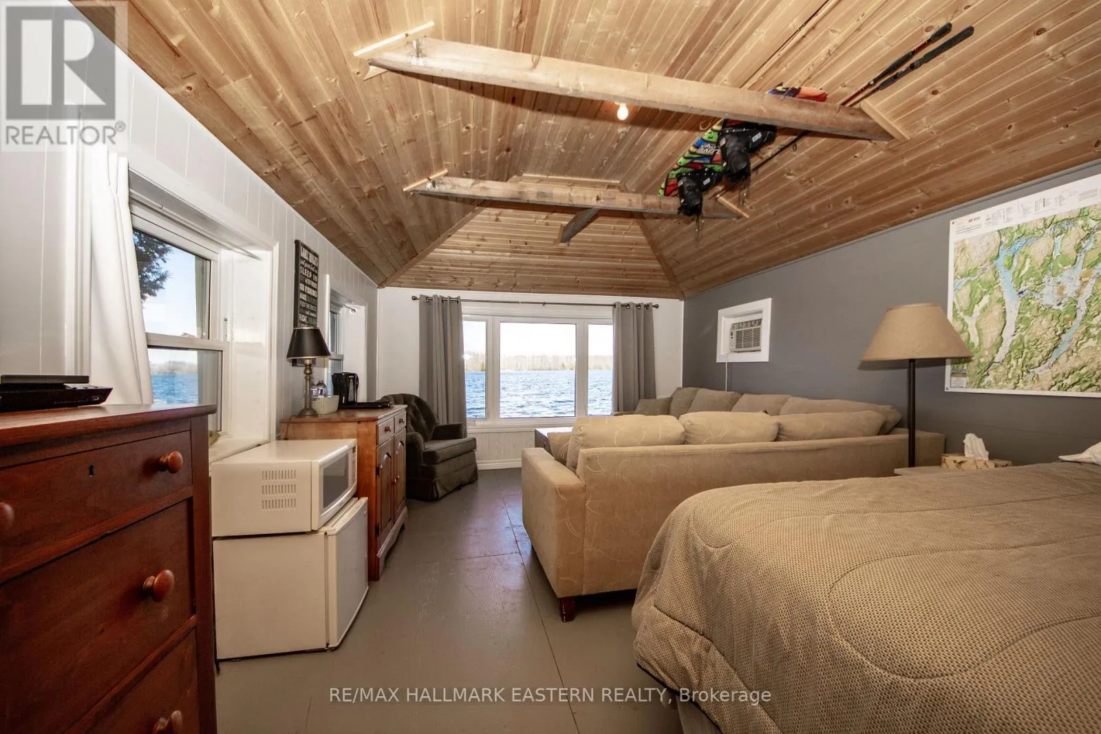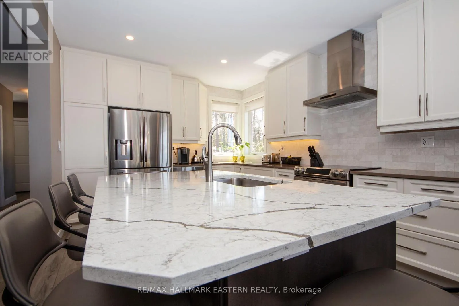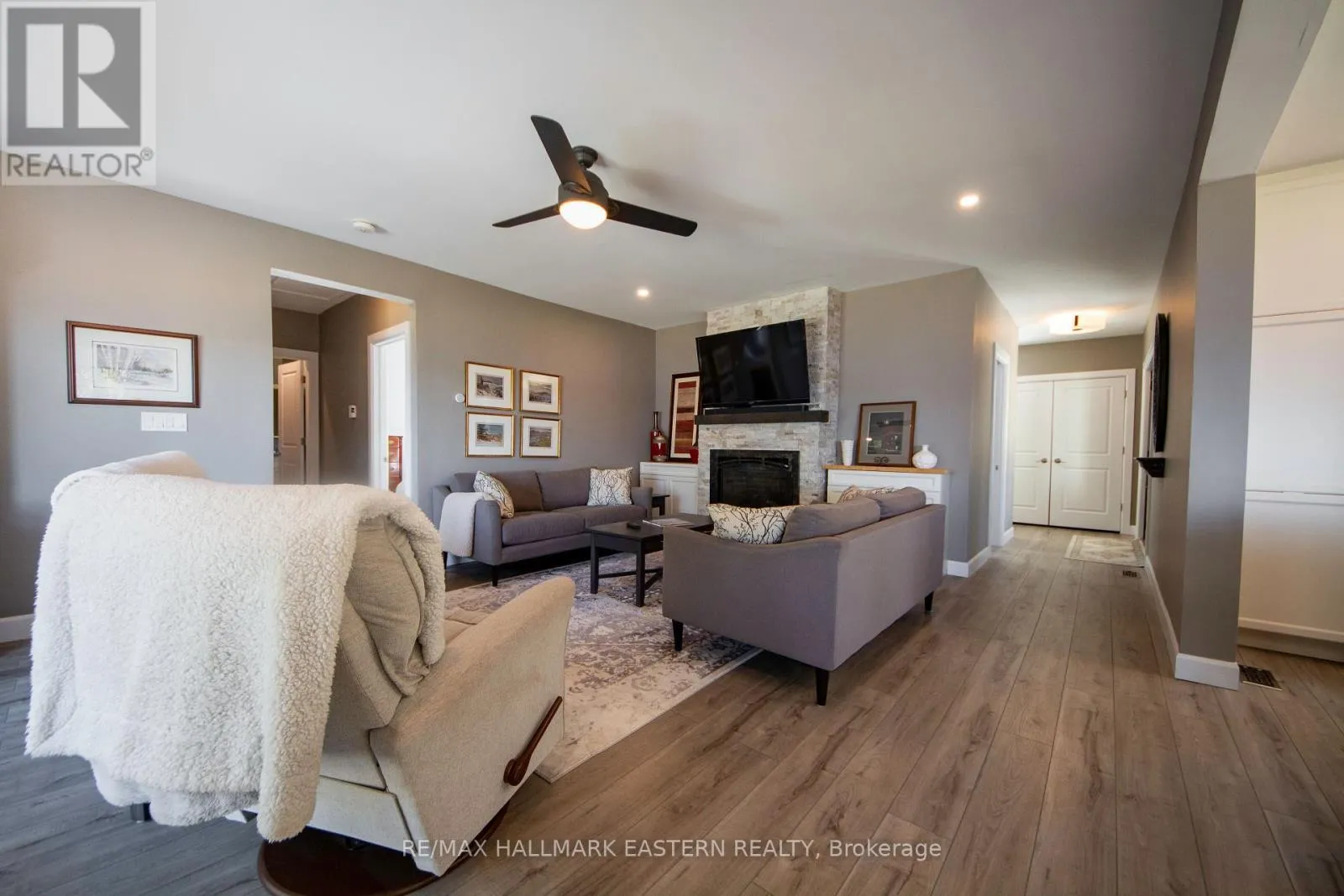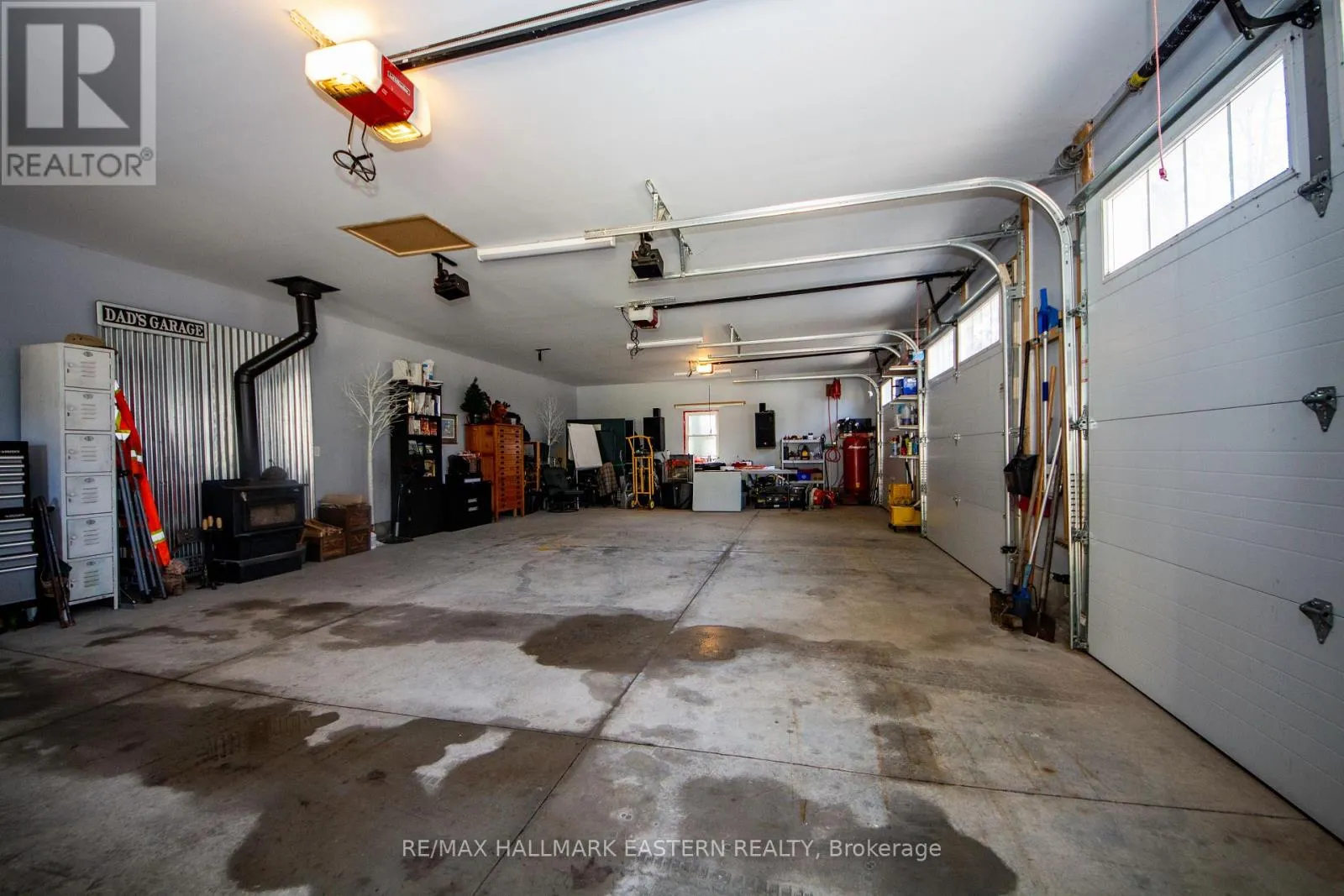 Cross Streets: Tara Rd. ** Directions: Tara Rd north, then left on Tara Rd to the stop sign, turn right onto Gallivan Rd. 2nd property on your left. 1.3 acres of waterfront living perfection! This custom-built 1,500 sq ft bungalow offers 2 bedrooms and 2 bathrooms and is set on an exceptional lot with 160 feet of pristine shoreline on Pigeon Lake. The bright and spacious, open-concept layout is designed to capture stunning lake views throughout. The kitchen features a centre island with breakfast bar, seamlessly flowing into a formal dining area and inviting living room with 8' patio doors leading to a lakeside patio. The primary suite boasts a large walk-in closet and a luxurious 4-pc ensuite complete with a separate 6' glass shower and a soaker tub perfect for relaxing. Outdoors you'll find professionally designed hardscaping that wraps around the home and is complemented by beautiful perennial gardens plus irrigation system. The paved driveway meanders through the trees opening to a three-car garage with wood stove and a regulation sized pickleball court integrated into the expansive paved area. Enjoy entertaining on the permanent armour stone cribbed dock with gazebo. Included is an additional 60' pole dock - ideal for accommodating all your watercraft and lakeside activities. Additional features include a 22KW backup generator for peace of mind year-round, a 20' x 30' Quonset hut tucked privately among the trees and a quaint outhouse with compost toilet and extra side section for storage. A rare offering that blends comfort, privacy and waterfront living. Book your private viewing today. You won't be disappointed. (id:27476)
