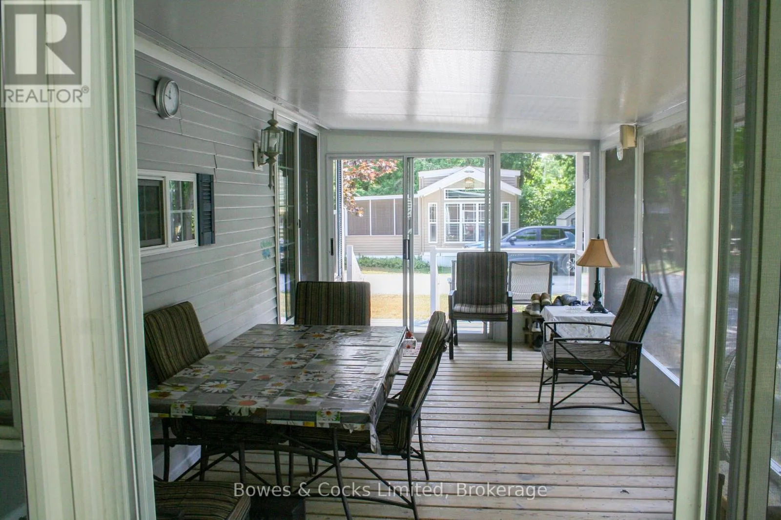 Cross Streets: Curve Lake Rd/Westview Rd/Sunset Dr. ** Directions: Enter Pioneer Point Resort -Turn right at Rockhaven, second trailer on North side. Welcome to your seasonal escape in Pioneer Point Park! This trailer offers a bright and functional layout with built-in storage, mirrored closets, a 3-piece bathroom, and a full eat-in kitchen with a propane stove. The spacious living room features lots of windows, custom blinds, and a sliding partition to create a guest space. Unique ceiling lighting adds charm throughout. Enjoy a large sunroom, covered decks front and back, and a beautifully landscaped private lot with a limestone parking pad. A brand-new shed, BBQ, yard tools, and full furnishings make this a turnkey getaway. Located in a quiet area near the park entrance, you'll also enjoy access to state-of-the-art amenities including a Western facing beach, boat launch, 2 pools, laundry, playground, sports fields and courts, a nine hole golf course, dog park and more. Whether you're relaxing indoors or entertaining outside, this seasonal retreat has it all. Just move in and enjoy the summer season in style and comfort! Park Fees for 2026 Are Paid! (id:27476)
