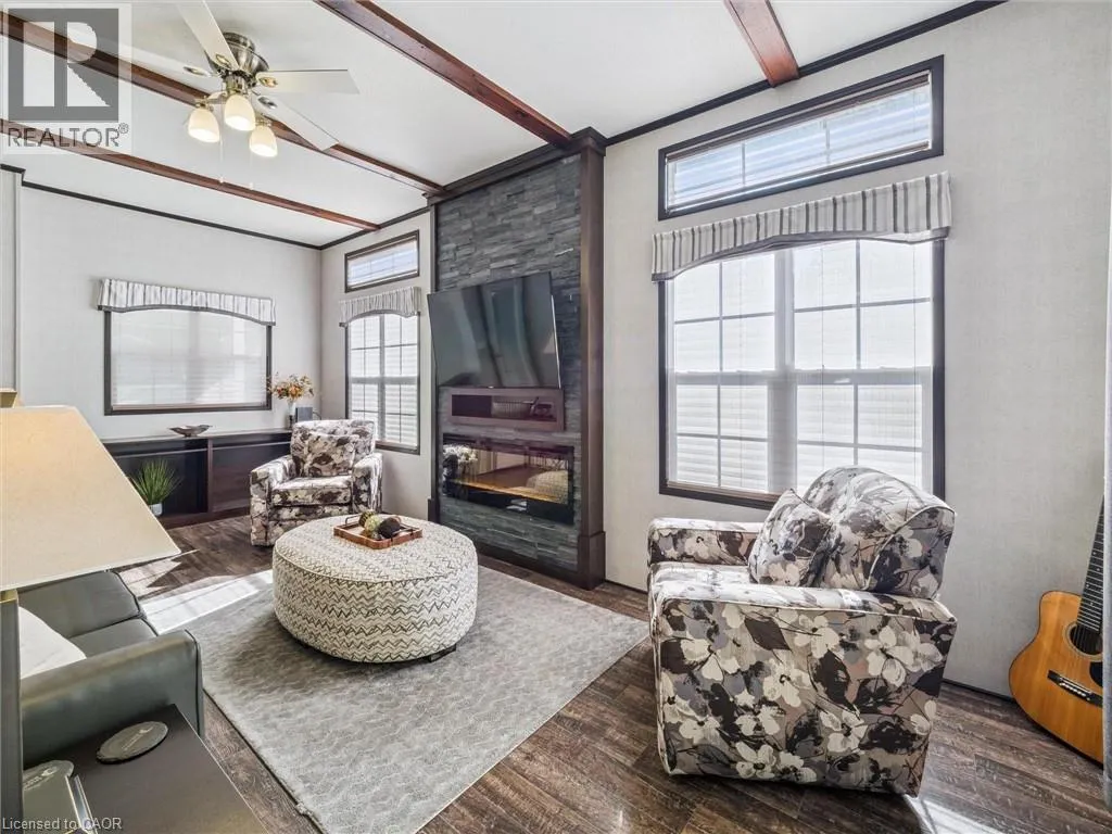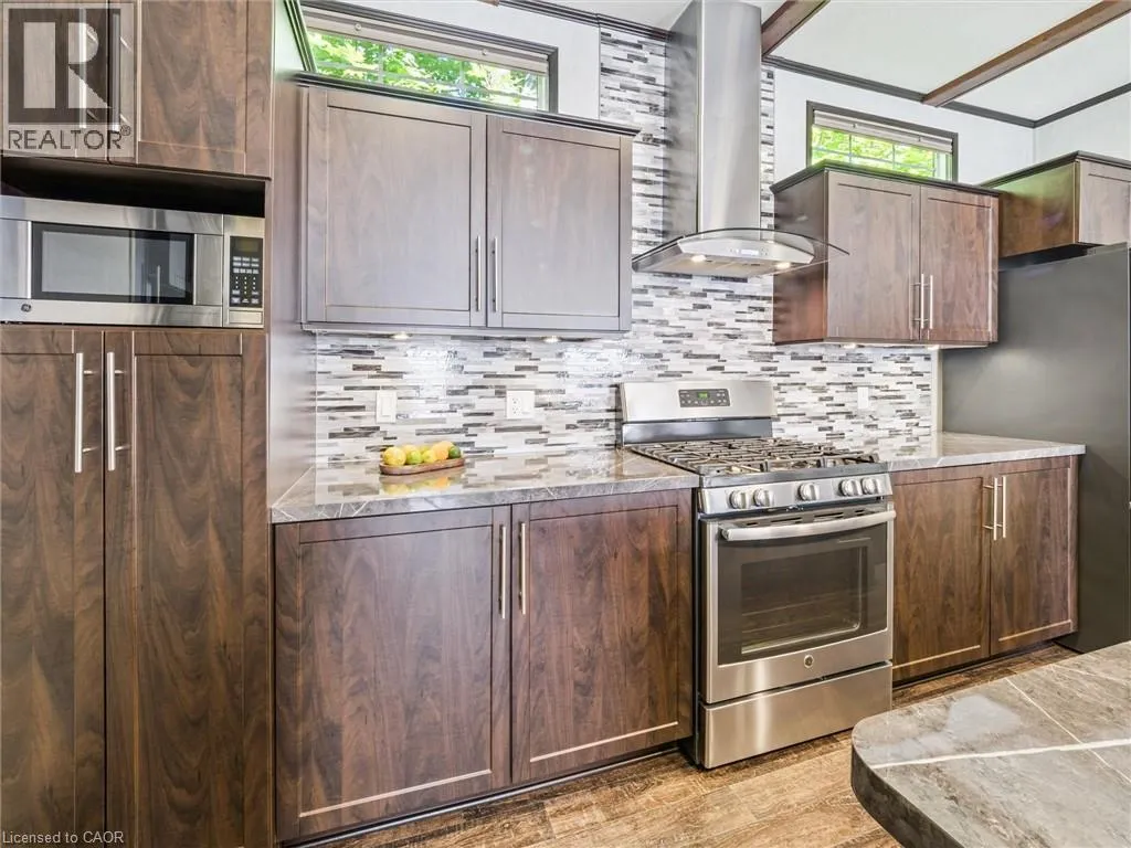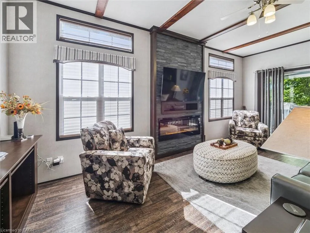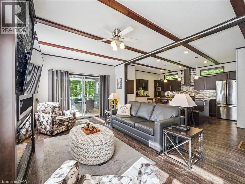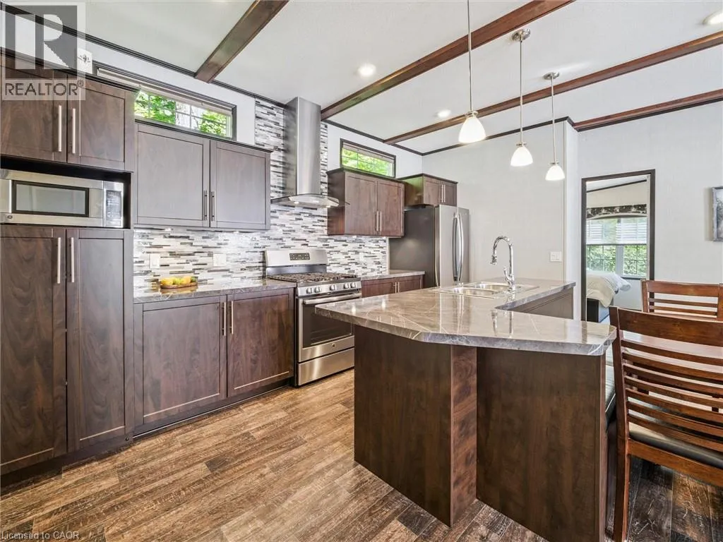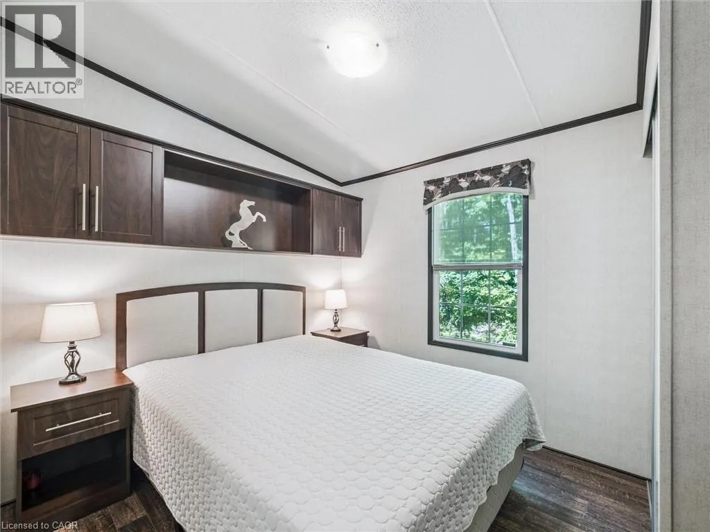 Graham Rd./Shamrock Marina Rd. Welcome to an extraordinary chance to own a fully turn-key cottage in one of Muskokaâs most sought-after gated communities. This one-of-a-kind fully upgraded Cypress model is the only cottage of its kind in the resort and the largest, making it a rare and highly desirable offering. Privately tucked away, this stunning cottage backs onto a natural forest with iconic Muskoka rock formations and offers no side neighbors, creating a peaceful and secluded private oasis making it the perfect setting to relax and unwind. Featuring 2 spacious bedrooms and 2 full bathrooms, including a private ensuite, this beautifully designed retreat offers a bright open-concept layout with an expansive kitchen, complete with an oversized island with breakfast bar and sink, ideal for cooking and entertaining. Enjoy cozy evenings by the electric fireplace with stone veneer surround, while sunlight streams through the wrap around windows with sunrise views. This property comes fully furnished and entirely equipped just bring your suitcase! Included are small kitchen appliances, utensils, cutlery, pots, pans, and much more! Step outside to your dual upgraded covered porches featuring railings and entry systems, patio furniture, a tabletop firepit, two BBQs, and even a Traeger smoker for the ultimate outdoor dining experience. Youâll also find ample storage with two sheds, perfect for all your gear and extras. Optional upgrades include a Rinker Captiva 228 Bowrider boat and an E-Z GO golf cart, taking your resort lifestyle to the next level. Enjoy full access to the resortâs incredible amenities, including a private beach, multiple pools, basketball and tennis courts, horseshoe pits, marina access, and more. This exceptional cottage is a true masterpiece and fully stocked, beautifully maintained, and ready for you to start creating unforgettable memories in the heart of picturesque Muskoka. A rare find that truly has it allâdonât miss out! (id:27476)
