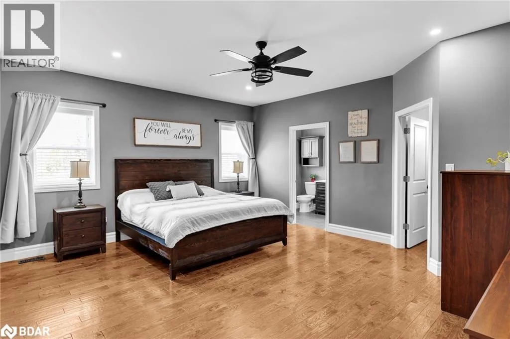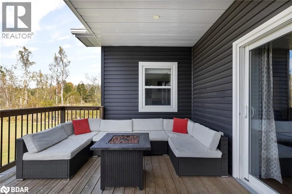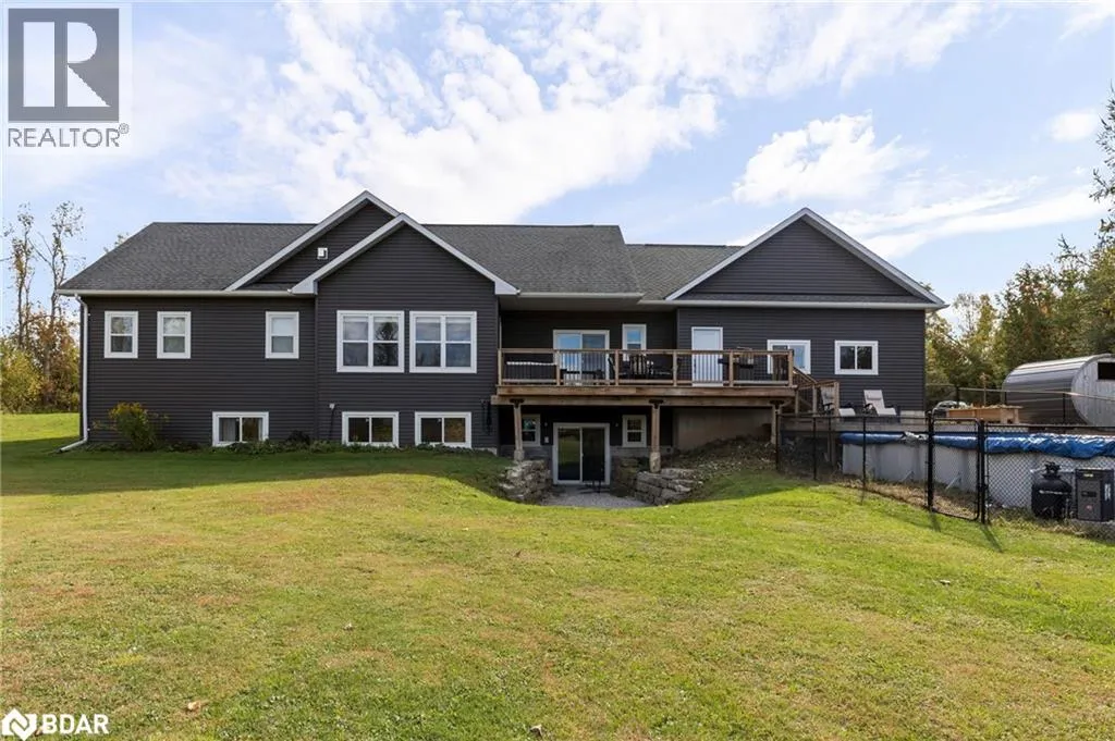 Hwy 12 West, Right on Warminster Side Road, Right on Wainman Line - property will be on your left Welcome to your private retreat in the sought-after Marchmont area.This custom-built 6-bedroom, 3-bathroom bungalow offers over 3,700 sq.ft. of finished living space on just over 2 acres of privacy, featuring a walkout basement and exceptional craftsmanship throughout.Built in 2018 with energy-efficient ICF construction, this home blends quality, comfort, and peace of mind â including a full-house automatic backup generator for year-round reliability.The open-concept kitchen is perfect for family gatherings, flowing seamlessly into the dining area with a walkout to the deck, ideal for entertaining.The vaulted-ceiling family room overlooks the beautifully landscaped backyard and gardens, offering a peaceful setting year-round. The main floor laundry is conveniently located across from the primary suite, which features an oversized walk-in closet and spa-like ensuite bathroom.Two additional bedrooms and a full bathroom complete the main level.A second entry to the house and a convenient mud room with access to the 26' x 28' double attached garage offers inside entry for everyday convenience.Downstairs, the 9-ft ceilings and full-size windows fill the space with natural light. Enjoy a dedicated workout area, large recreation space, and three additional bedrooms perfect for family, guests, or a home office, along with another full bathroom with heated floors.Step outside to experience country living at its best â a picturesque pond, and a 24' x 36' heated and insulated shop complete with its own furnace, ideal for year-round use, storage, or hobbies. After a long day, enjoy a dip in the heated above-ground pool and unwind in the relaxing barrel sauna.The property also includes a chicken coop for fresh daily eggs, vegetable and fruit gardens, and fruit trees lining the back of the property.Located less than 10 minutes from Orillia and within one of the best school districts in the area, this remarkable property offers the perfect blend of privacy, space, and convenience. (id:27476)