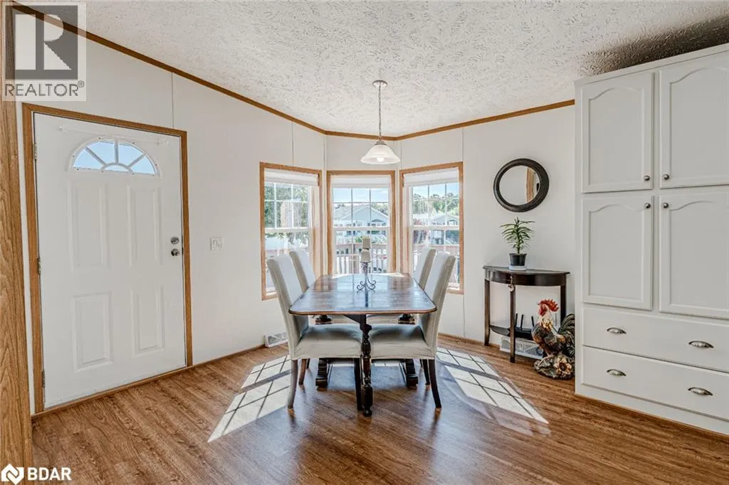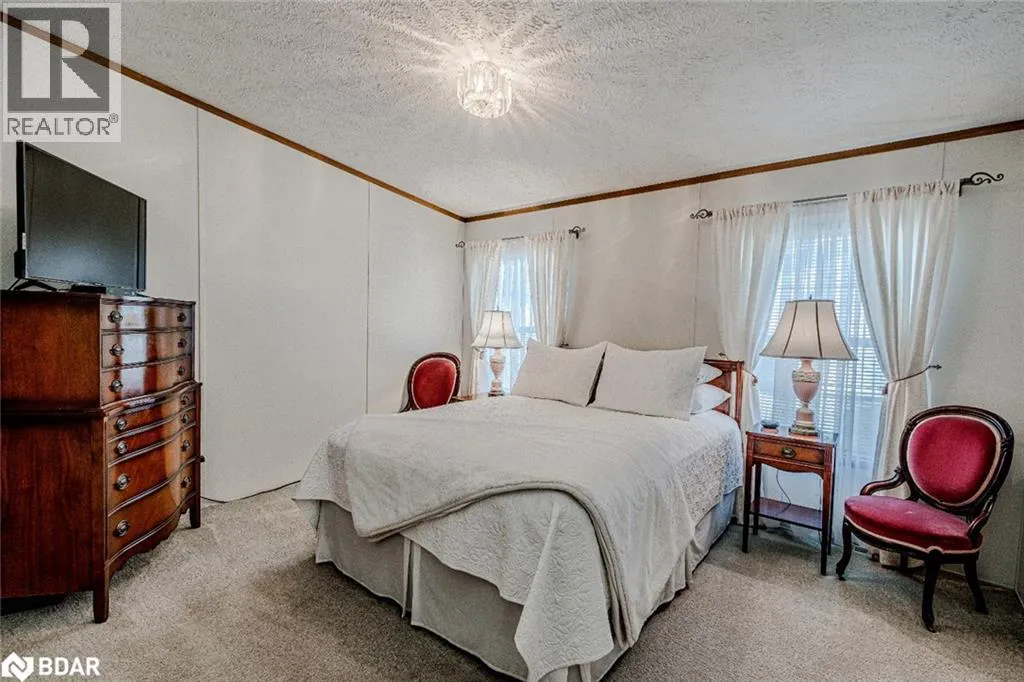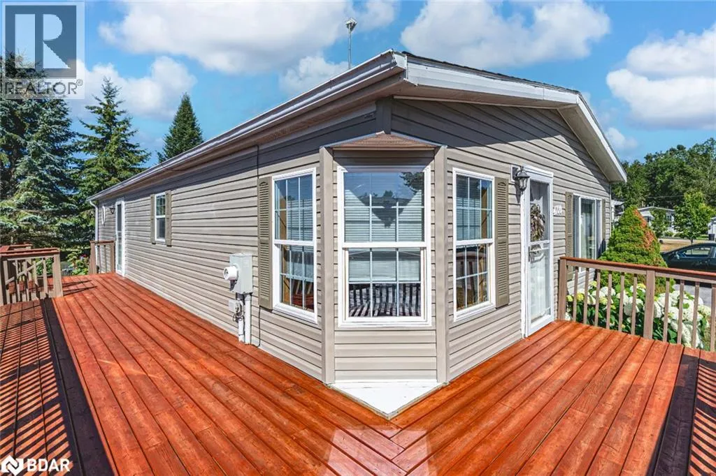 County Rd 18/Brodie Dr/Carlyon Line/J. V. Pkwy/Wesley St DETACHED GARAGE, INVITING INTERIOR & EASY ONE-LEVEL LIVING IN SILVER CREEK ESTATES! Silver Creek Estates, a land lease community, offers a serene environment with green spaces and walking trails tucked into a quiet, friendly neighbourhood that feels like home from the moment you arrive. Just outside Orillia and minutes from Lake Couchiching, this home is ideally located with quick access to Hwy 11, Costco, shopping, dining, healthcare services, Lakehead University, and Casino Rama. Manicured gardens and a newly stained multi-tiered wraparound deck create standout curb appeal, while the oversized detached garage includes a workshop area, garage door opener, and parking for one vehicle, plus two more spots in the driveway. The bright open-concept layout features updated flooring and fresh paint, a cozy gas fireplace, and an updated kitchen with a newer French door fridge, stove, dishwasher, and over-the-range microwave. Both bedrooms offer walk-in closets, with two full baths including a 4-piece ensuite complete with a whirlpool-style tub and a new shower enclosure. A separate side entrance leads into the mudroom and laundry area, finished with a stackable washer and dryer and a barn-style privacy door. Additional features include an upgraded furnace and AC, a 200-amp electrical panel, an owned water heater, and a separate garden shed. Say goodbye to compromise and hello to comfort in a place youâll be proud to call home. (id:27476)
