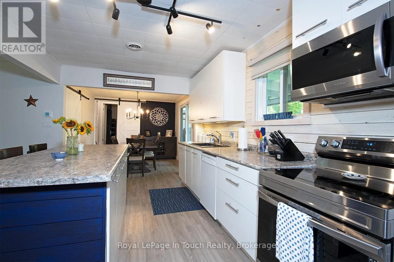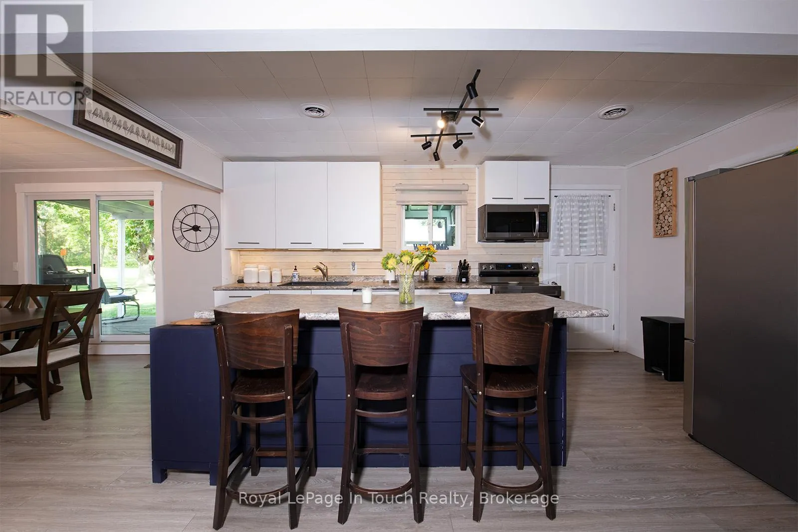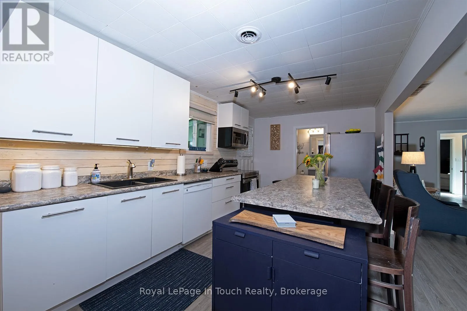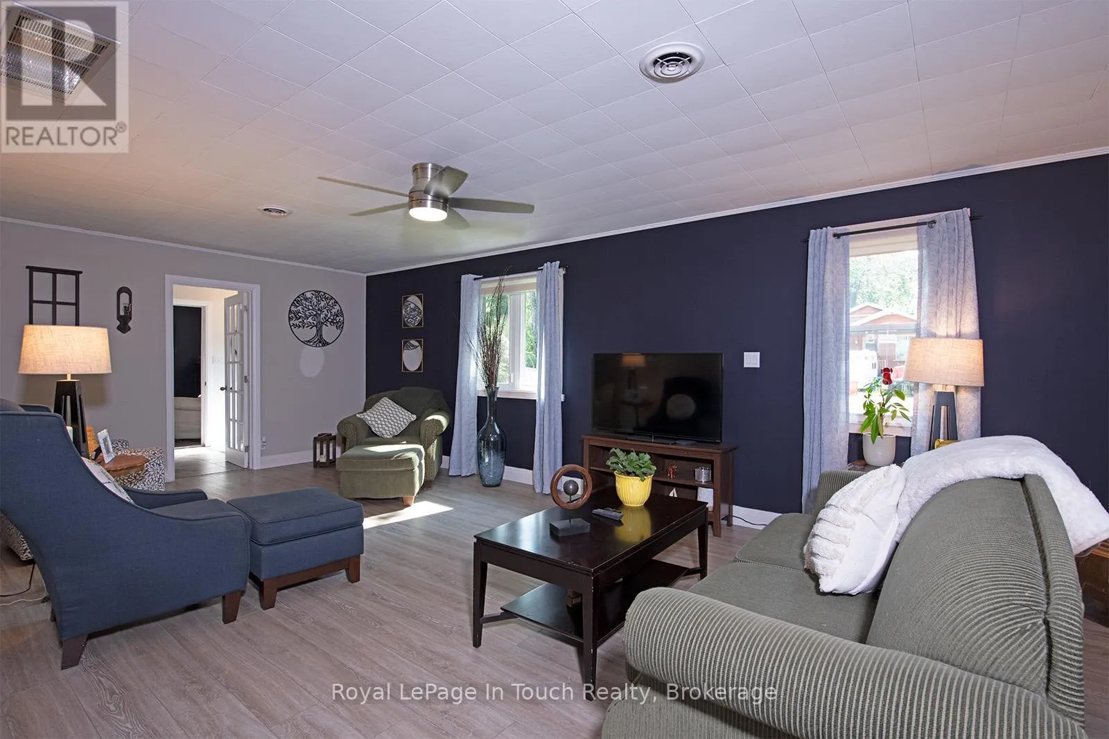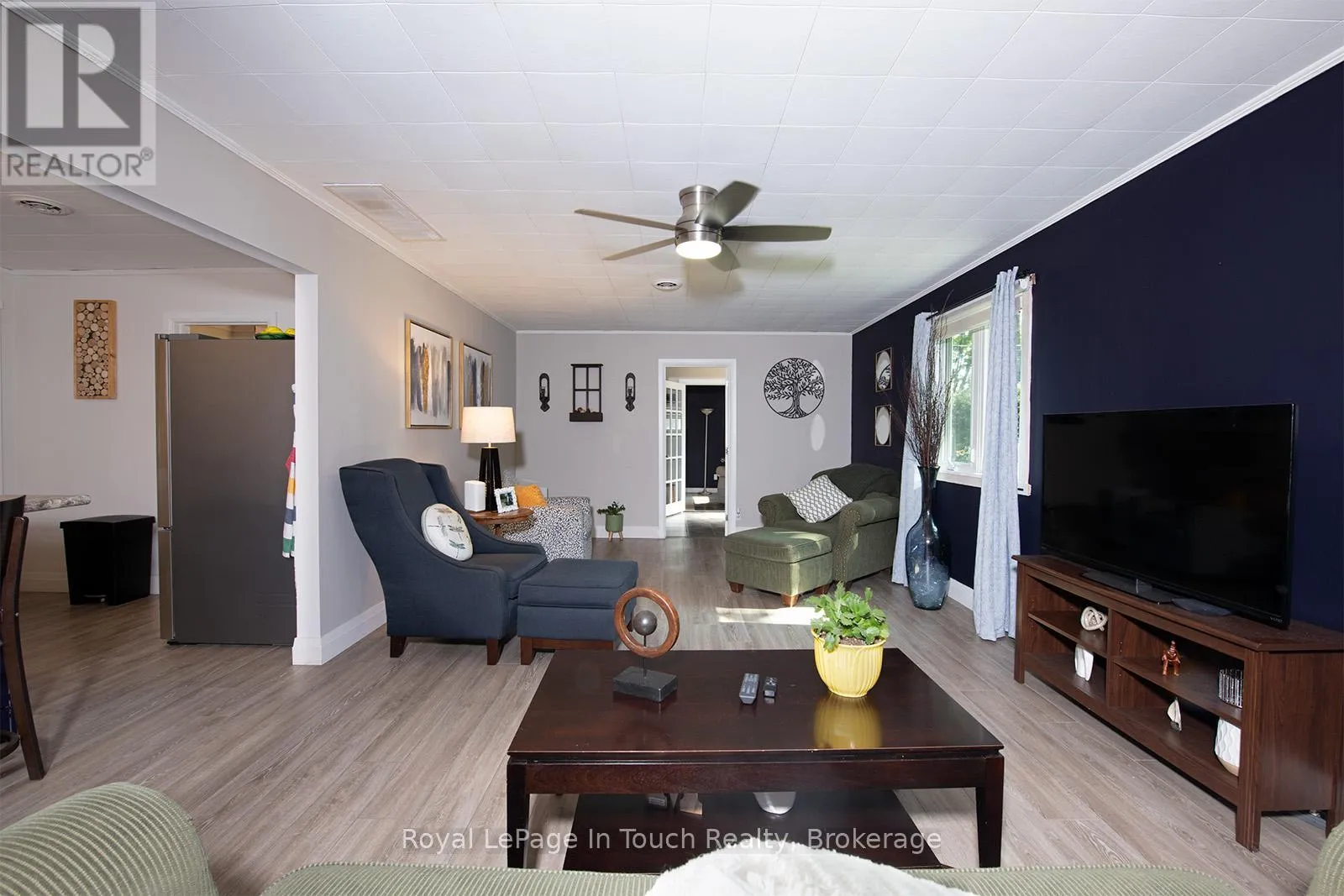 Cross Streets: Cyril Martin Pl and Harriet St. ** Directions: From Coldwater Rd turn right on Harriet St then Left on Cyril Martin Place. Welcome to this spacious property and home located in a community full of its own heritage and charm. You will love the feeling of the open-concept Kitchen, Dining, and Living Room Areas, All perfect for entertaining or keeping an eye on the kids while meals are prepared. There is a central 3-piece bathroom to these areas as well as a full 4-piece bathroom located within the bedroom area. The Bedrooms are all large and will easily create their own getaway places. The single-floor layout of this home creates an ideal home for retirement or provides an opportunity for families looking to create a separate In-Law Suite. Step outside to your covered porch area, as well as a screened-in porch area. Both overlook the large backyard with tons of room for recreation and play, summer BBQs, and cozy nights around the firepit. This property is unique with two separate detached garages as well as two paved driveways. There is plenty of parking and storage for vehicles, toys, and tools. Located within walking distance to all the best Coldwater has to offer, including the Steampunk Festival, Coldwater Fall Fair, Curling Club, Arena, and part of the Trans Canada Trail spanning over 30 km offering year-round surface for walking, cycling, and cross-country skiing, you will never be short on things to do. Plus, enjoy downhill skiing and golfing just minutes away, and you're only a half-hour north of Barrie! Don't miss this opportunity to own a home that offers space, comfort, and access to a vibrant small-town lifestyle. (id:27476)